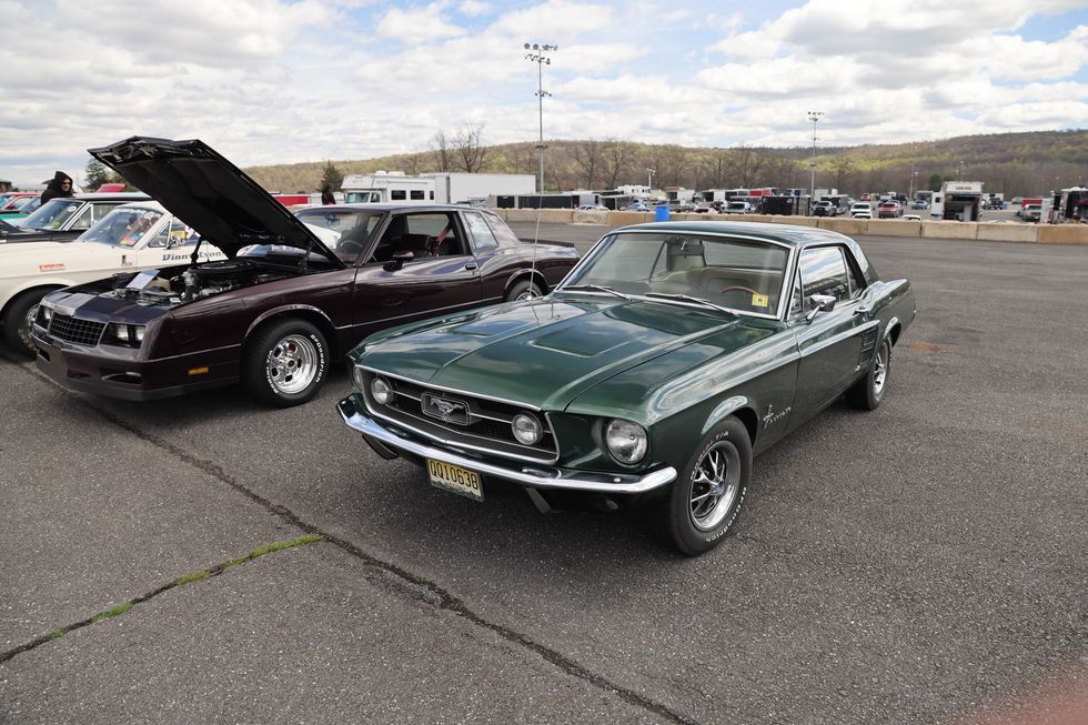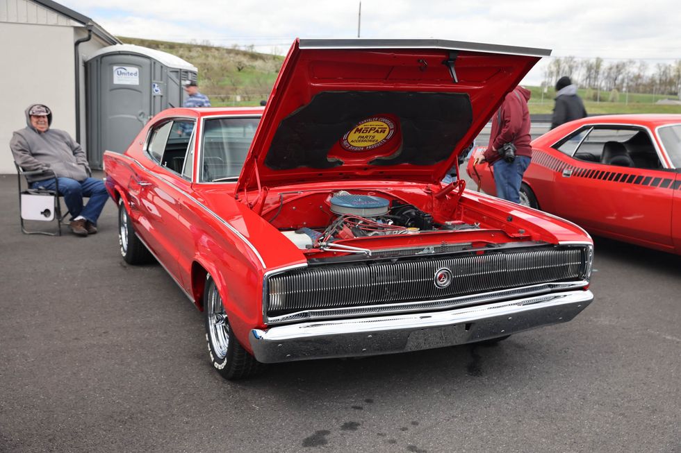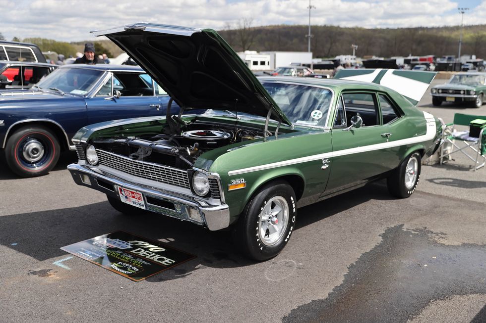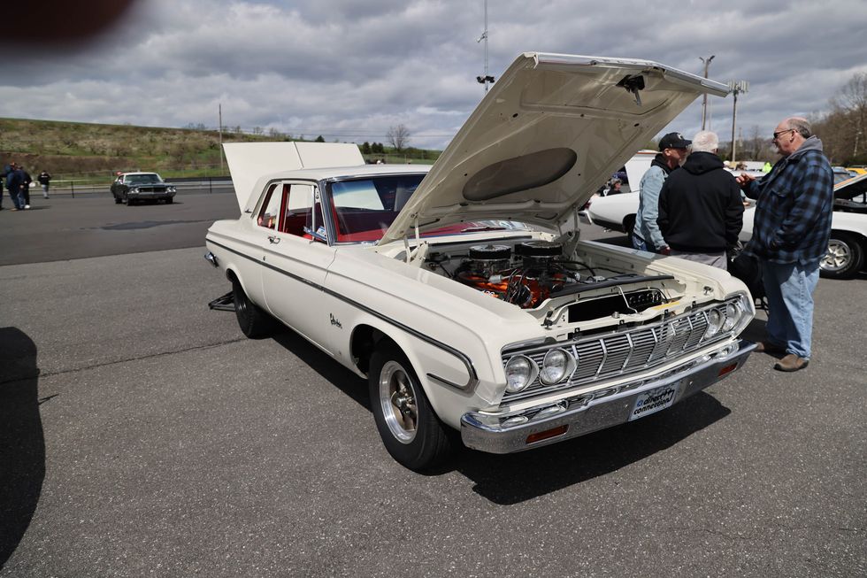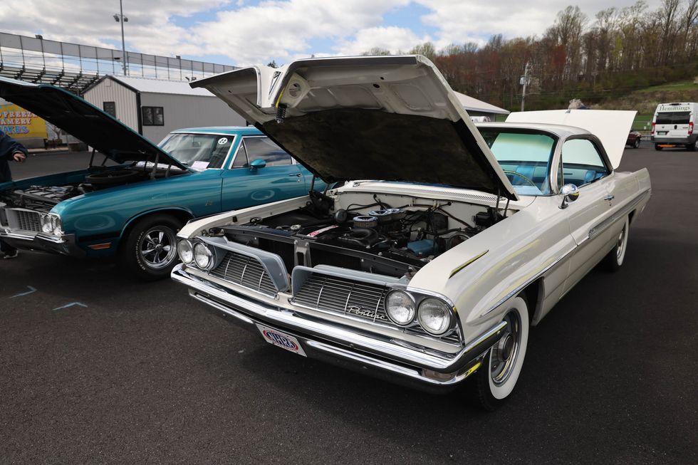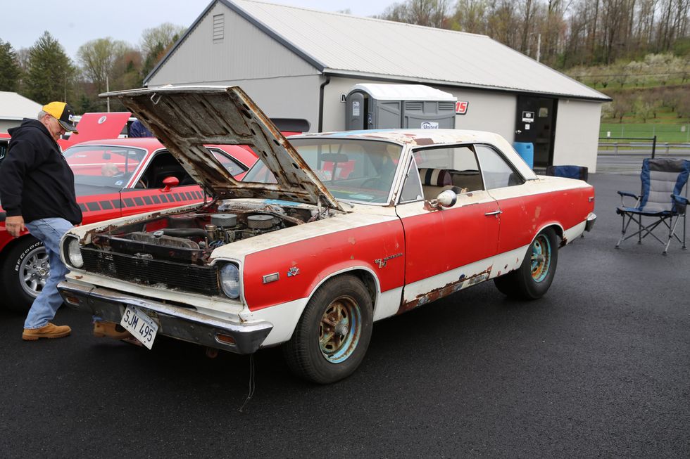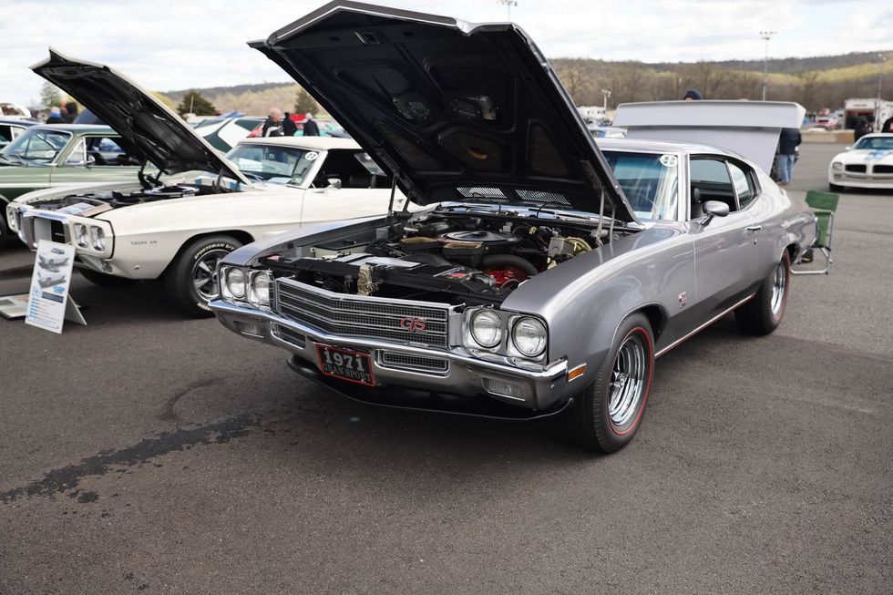 The car show field at the 2024 Hemmings Musclepalooza event at Maple Grove Raceway was exactly what you would expect to see: a colorful mix of some of the most notable and notorious muscle-packed machines of old and late-model. Despite the somewhat cold and dreary start to the morning, enthusiasts poured in through the gates and set up for the day. Hemi-powered royalty, big-block Buicks, Fords old and new, and even an AMC “The Machine” parked up. Owners chatted with spectators, eager to show off the details of their cars. Where else would you expect to see a bottle of Oldsmobile’s Turbo-Rocket fluid, or the full drag-racing history of a 4-4-2 in photos, or a Cougar Eliminator in Grabber Green posted up on the edge of a field like a wallflower? Look through our gallery of photos to see the machines that showed up and showed off at Maple Grove!