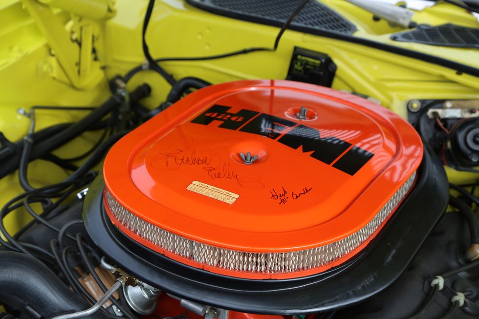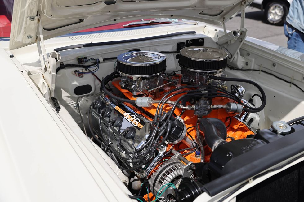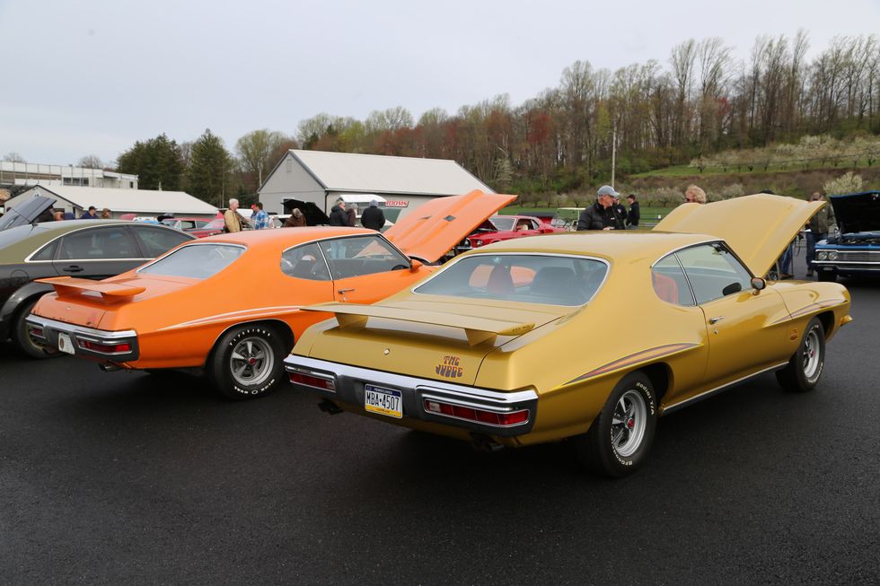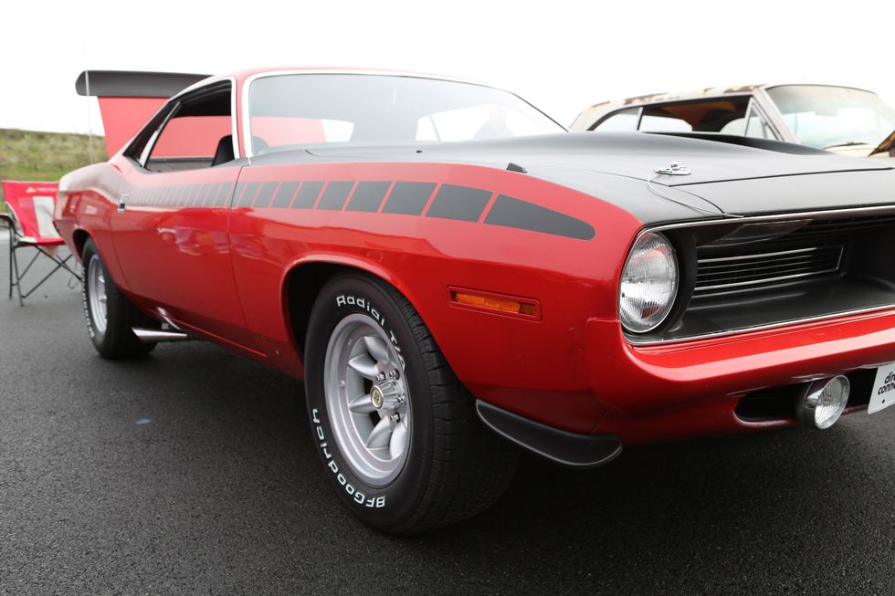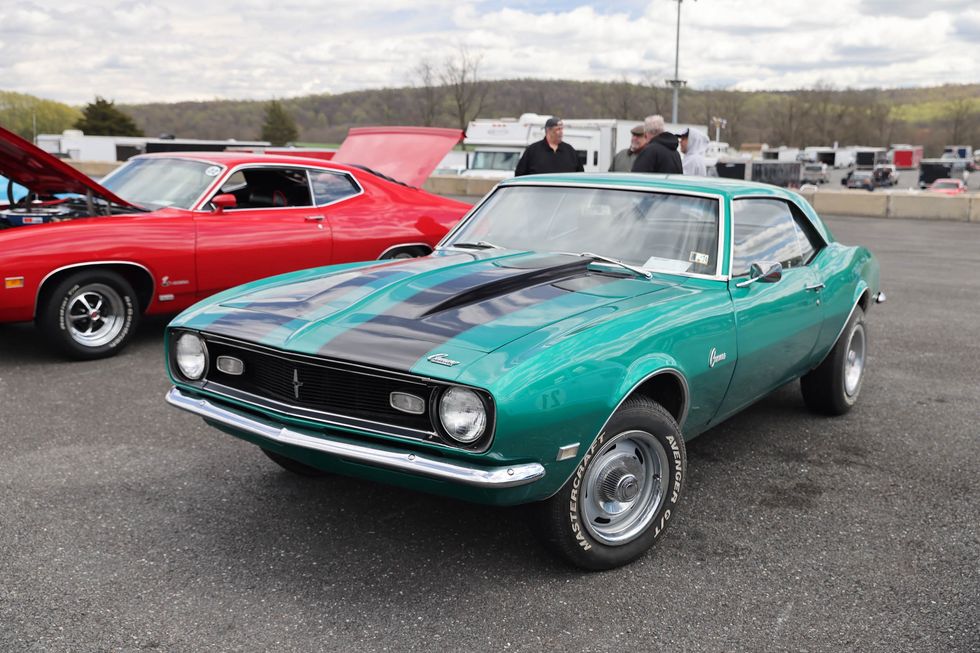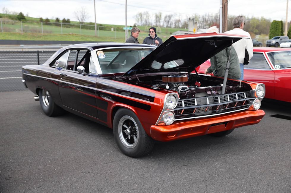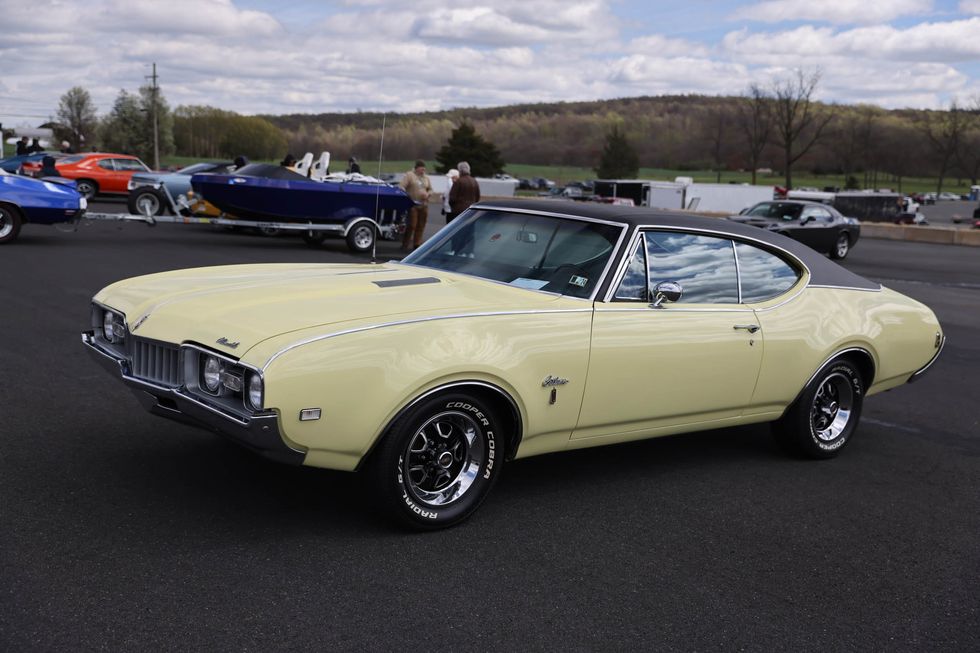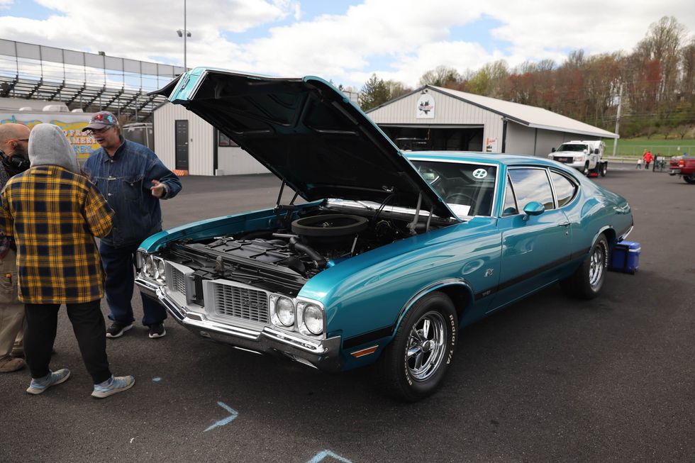 The car show field at the 2024 Hemmings Musclepalooza event at Maple Grove Raceway was exactly what you would expect to see: a colorful mix of some of the most notable and notorious muscle-packed machines of old and late-model. Despite the somewhat cold and dreary start to the morning, enthusiasts poured in through the gates and set up for the day. Hemi-powered royalty, big-block Buicks, Fords old and new, and even an AMC “The Machine” parked up. Owners chatted with spectators, eager to show off the details of their cars. Where else would you expect to see a bottle of Oldsmobile’s Turbo-Rocket fluid, or the full drag-racing history of a 4-4-2 in photos, or a Cougar Eliminator in Grabber Green posted up on the edge of a field like a wallflower? Look through our gallery of photos to see the machines that showed up and showed off at Maple Grove!