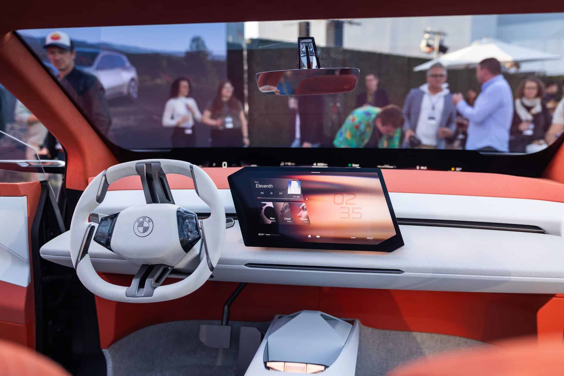 The infotainment system showcases BMW’s newest iDrive system. Not officially named, it is possible what the future iDrive 10 may look like. Most notably besides the parallelogram shaped infotainment screen, is the 48 inch wide BMW Panoramic Vision Screen that rests just below the windshield. The different elements of information within this screen can be customized by dragging the icons into place from the central infotainment screen. This is a rather intuitive way to customize driving information in a way that is close to the driver’s line of sight out to the road ahead. This not only helps improve safety by mitigating how much you need to take your eyes off the road, it actually makes a lot of sense in practice.