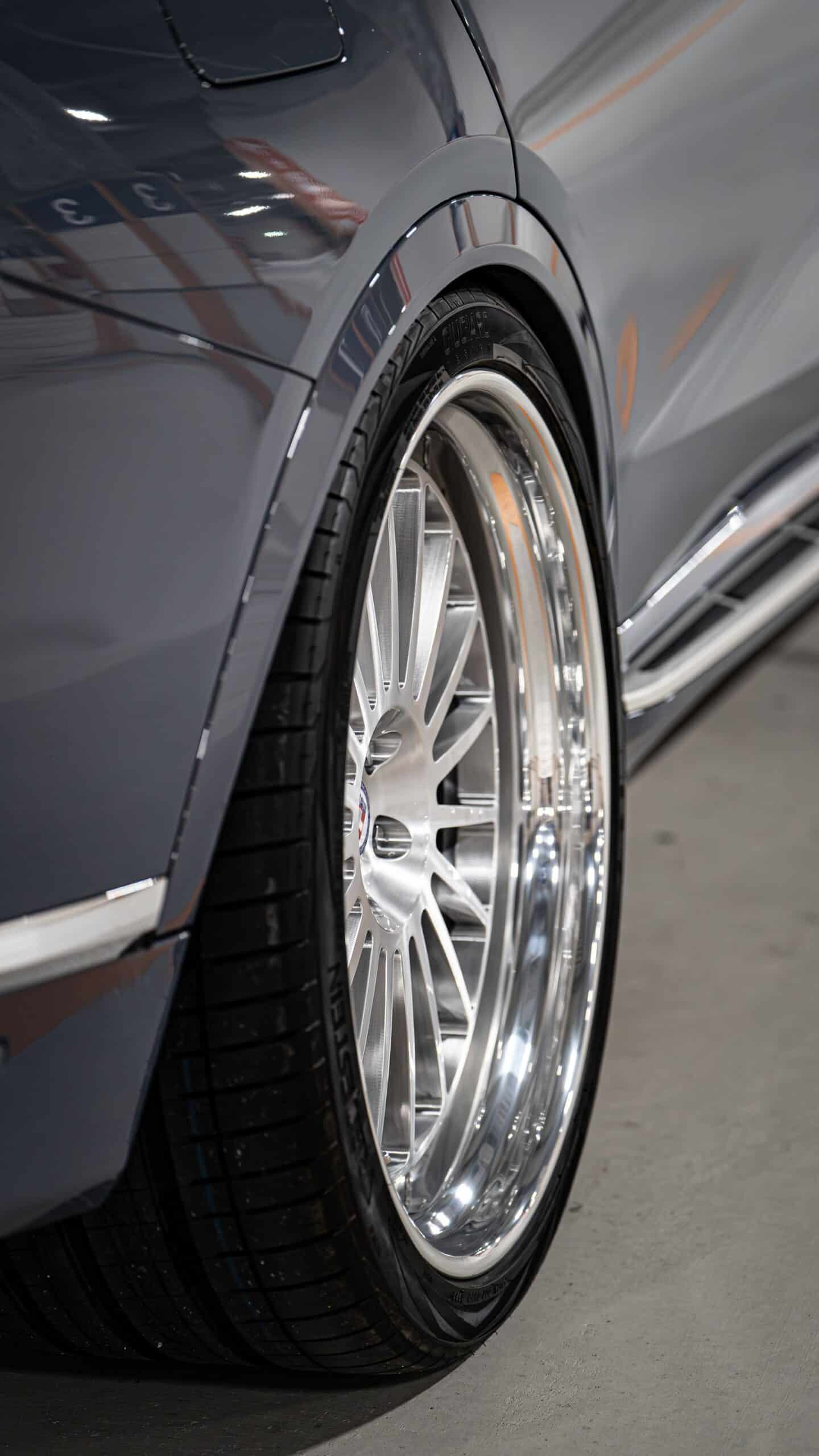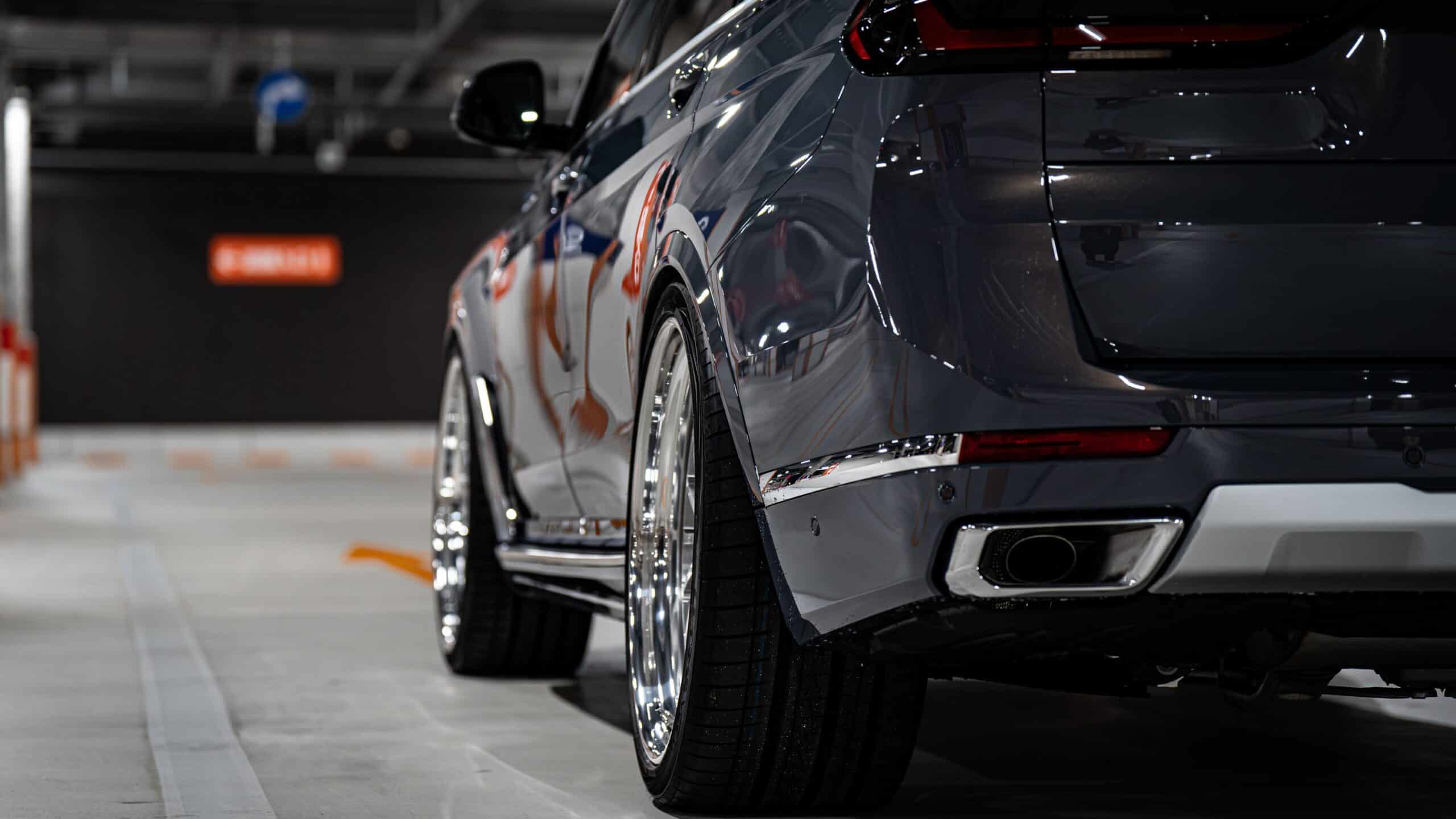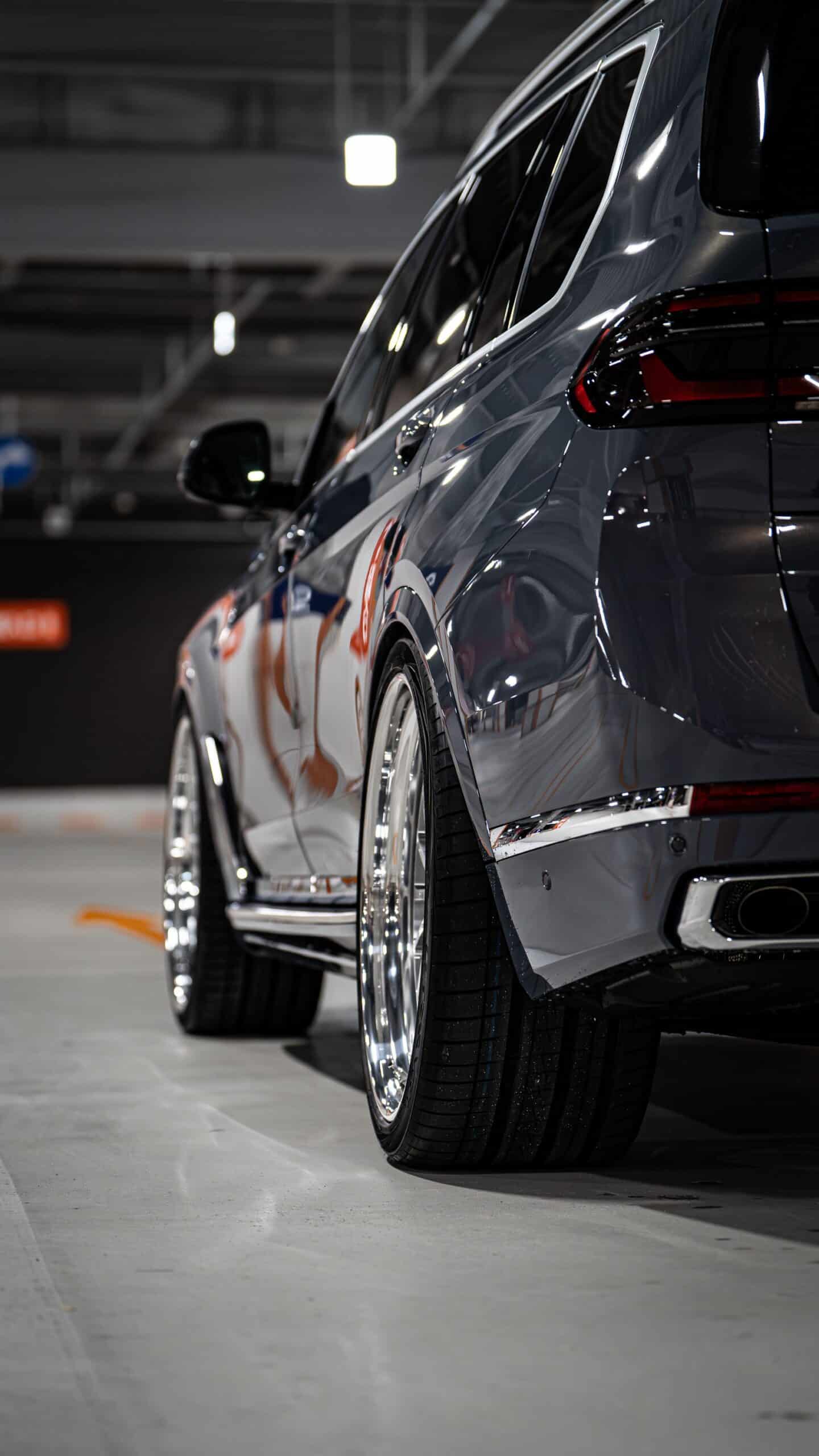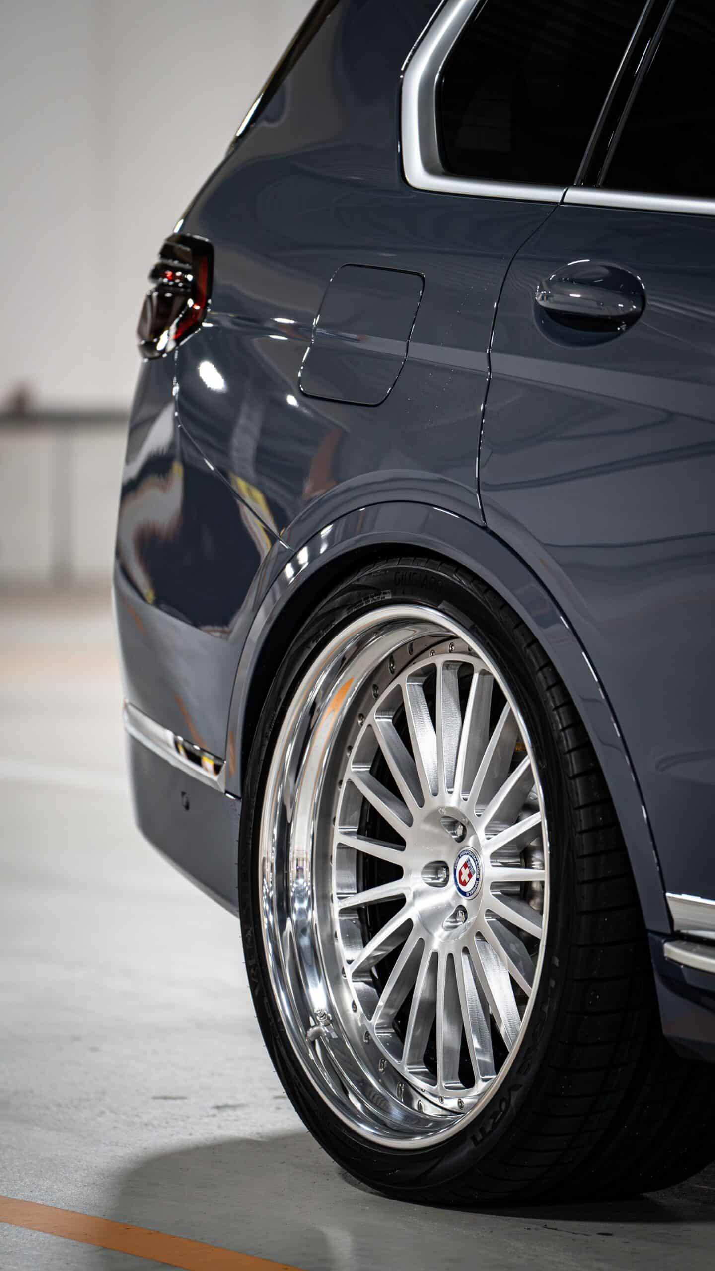 BMW limits the maximum wheel size for the X7 to 23 inches. Should you want an even bigger set, you can always count on the aftermarket scene. This facelifted version of the biggest SUV the company sells goes a step further. It now rides on stately 24-inch HRE wheels with a brushed clear center and a polished barrel.