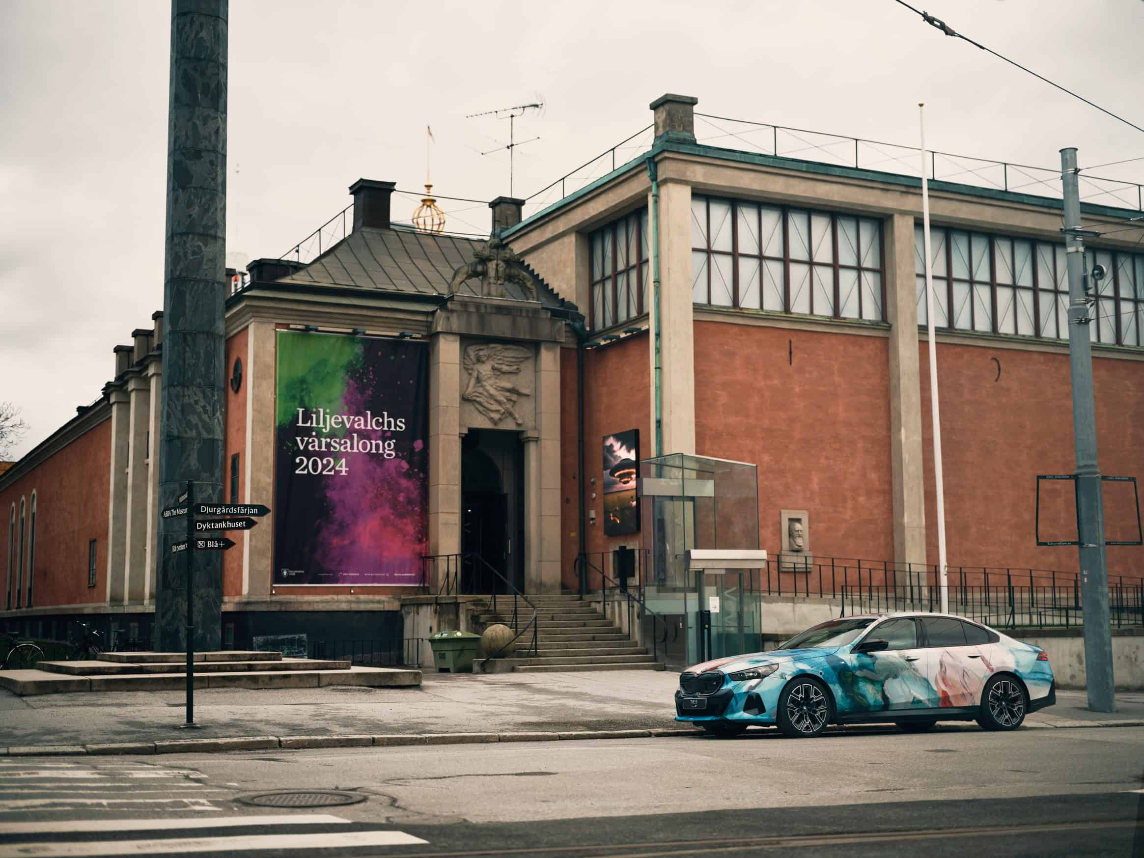BMW will show off the i5 and 7 outside the Liljevalchs art gallery located on the Djurgården island in Stockholm during the fair weekend. Guests will travel to and from the show in the back seats of these colorful EVs.