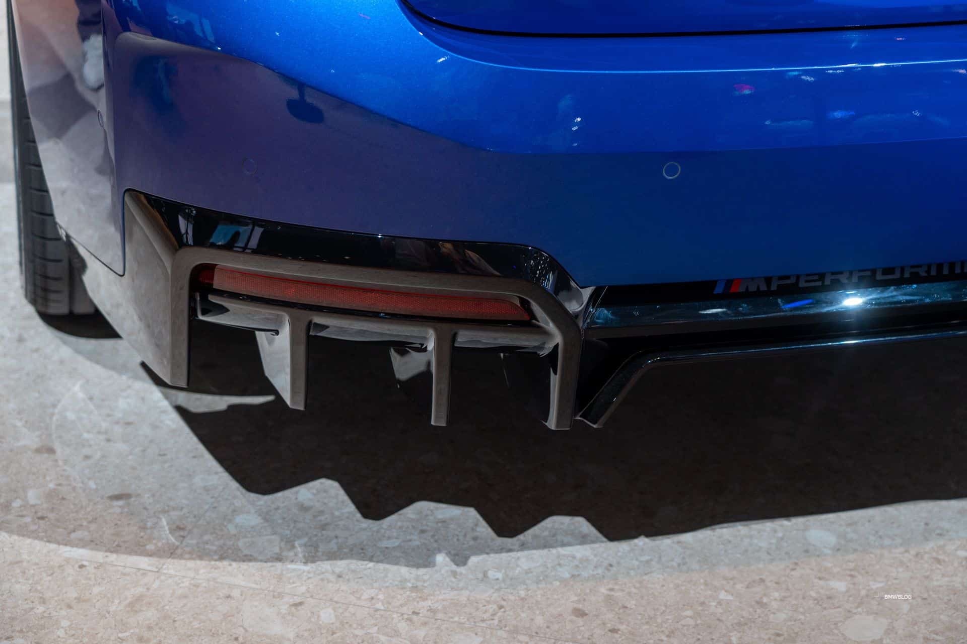 The i3 at the Beijing Motor Show has a few M Performance goodies inside and out. You’ll notice the steering wheel and central armrest are wrapped in Alcantara. The black and red cabin boasts M-colored stitching on the armrest while the wheel has a red 12 o’clock mark. Stepping outside, BMW installed a carbon fiber trunk lid spoiler and we’re pretty sure that diffuser is not standard either.
