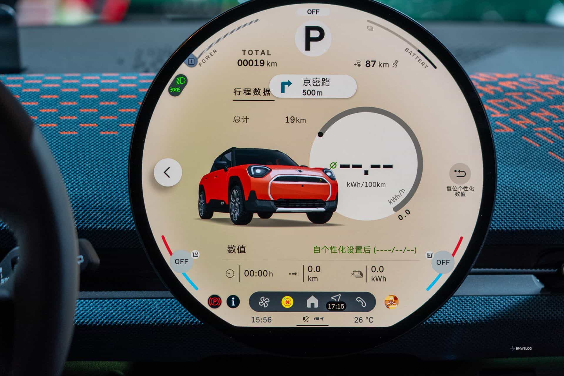At the heart of the Aceman’s interior is the circular OLED screen, a centerpiece that houses MINI’s equivalent of the iDrive 9 infotainment system. This feature ensures that drivers have all the necessary information at their fingertips, while the optional head-up display provides an additional layer of convenience. The toggle bar, a MINI signature, has been redesigned to integrate essential controls, marrying functionality with the brand’s iconic style. The cabin’s ambiance is elevated by multi-colored knitted textiles and red stitching, ensuring that the Rebel Red theme is felt inside as much as it is seen outside.