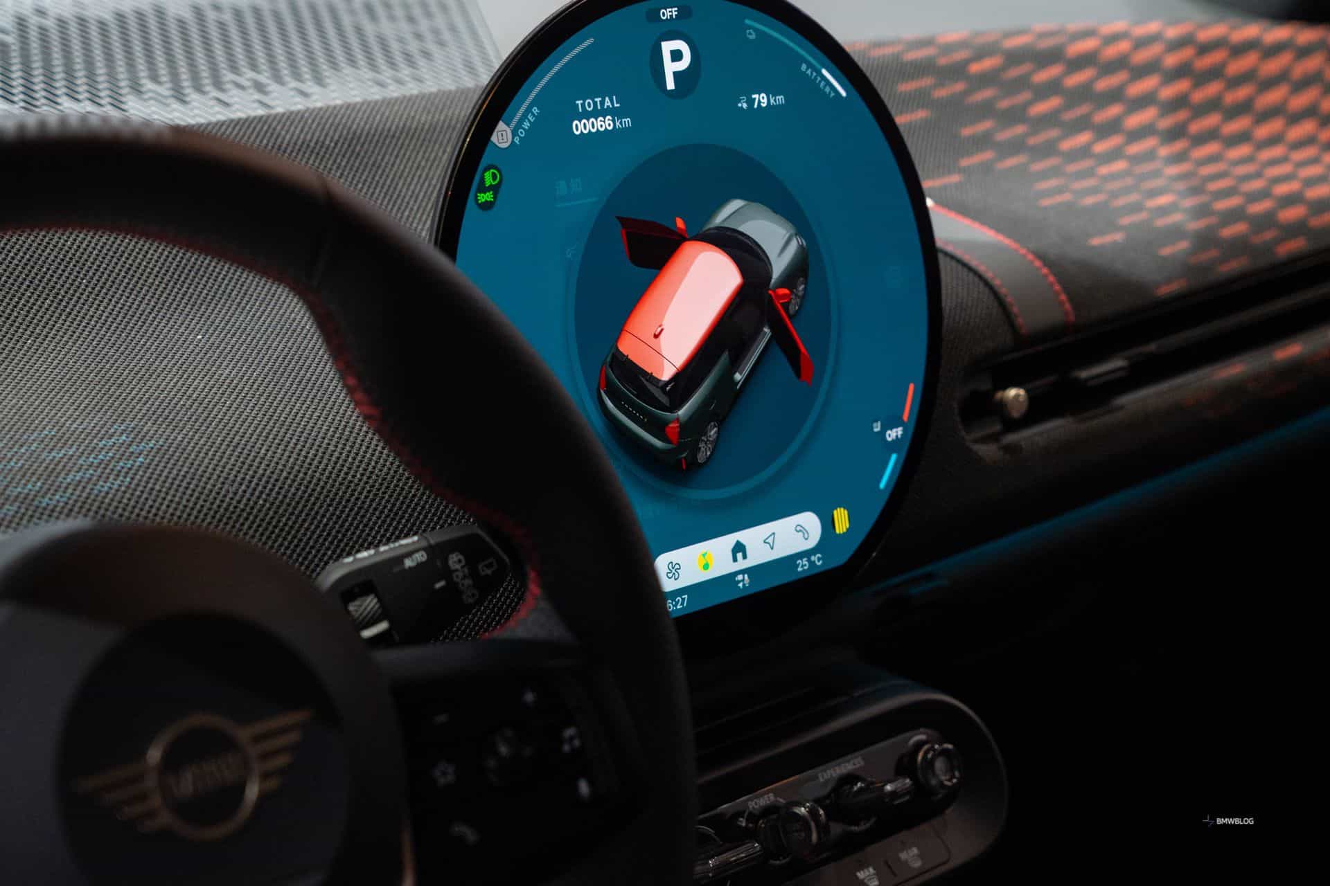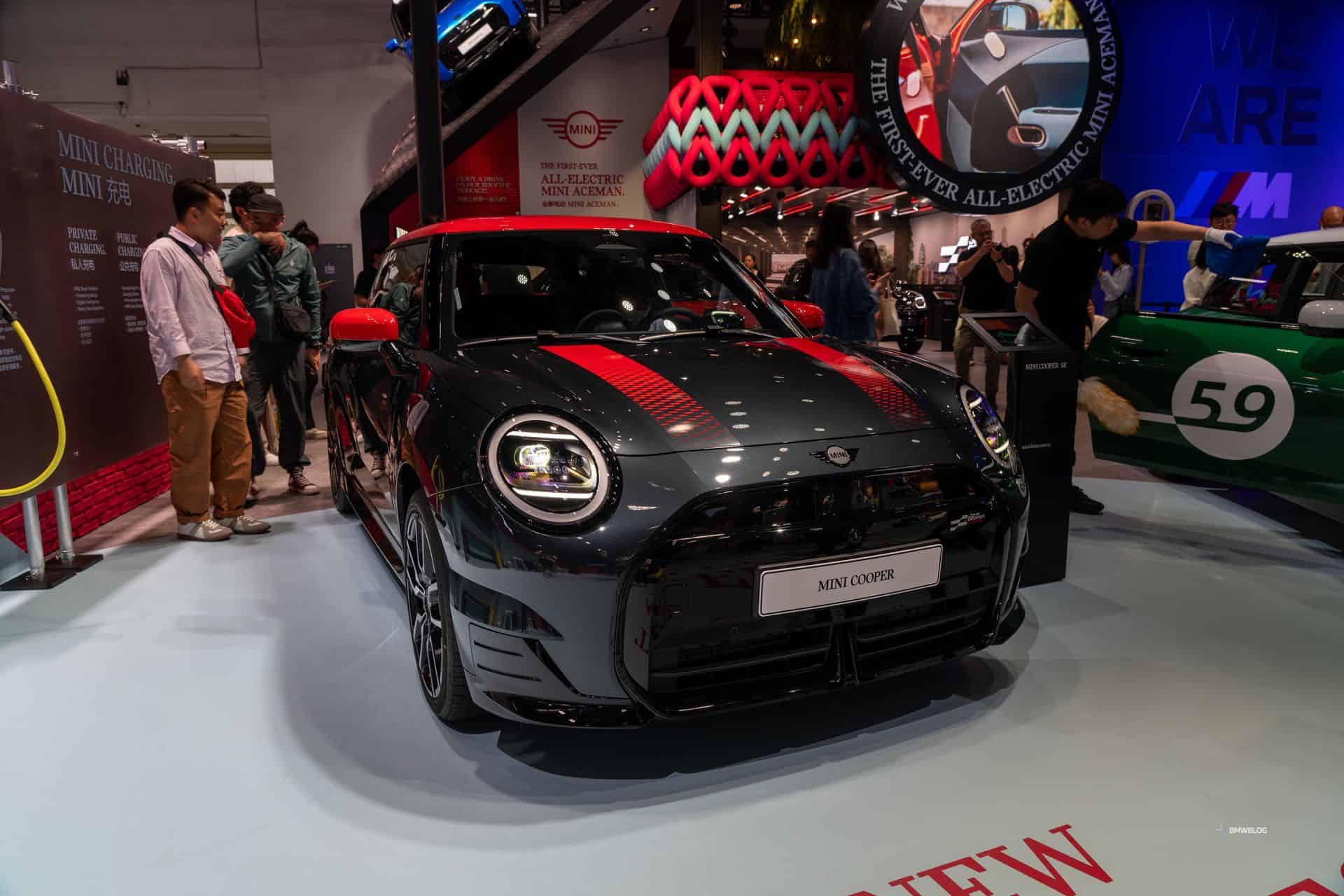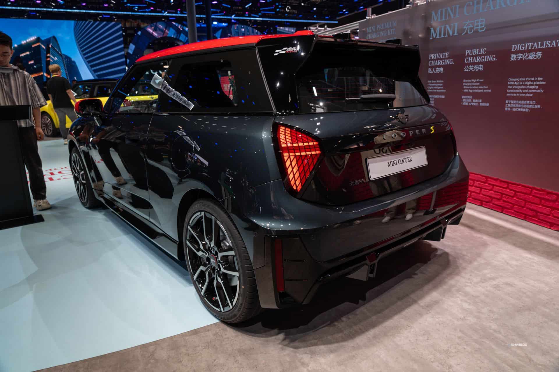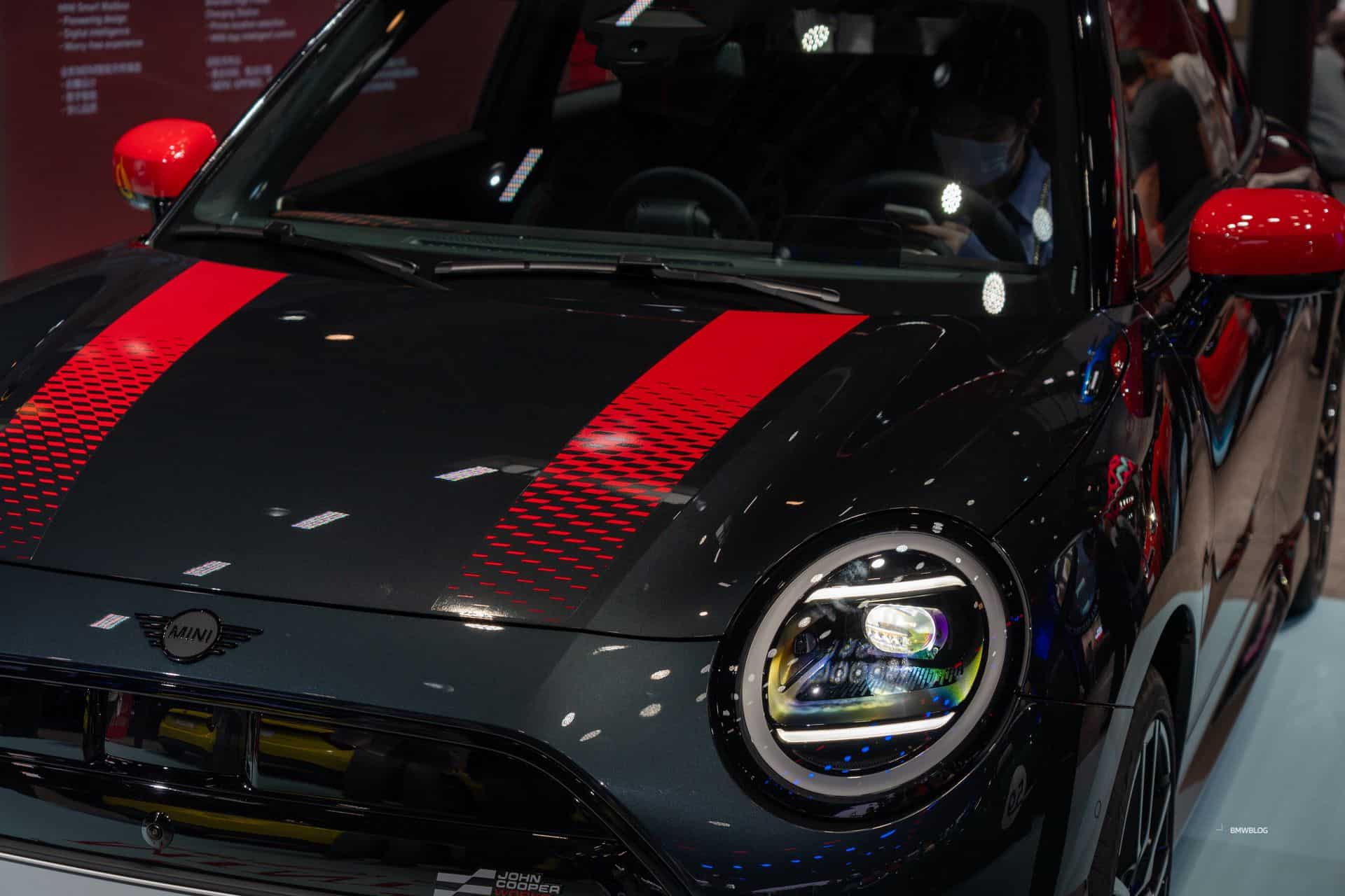 As before, the zero-emission hatch is strictly a three-door affair. If you want a more practical car, MINI now sells the five-door Aceman as a subcompact electric-only crossover. For the Beijing show, the “J01” electric city car received a two-tone look with red hood stripes and 18-inch bi-color wheels. Eagle-eyed readers will notice the new John Cooper Works logo at the front and on the bottom of the steering wheel.