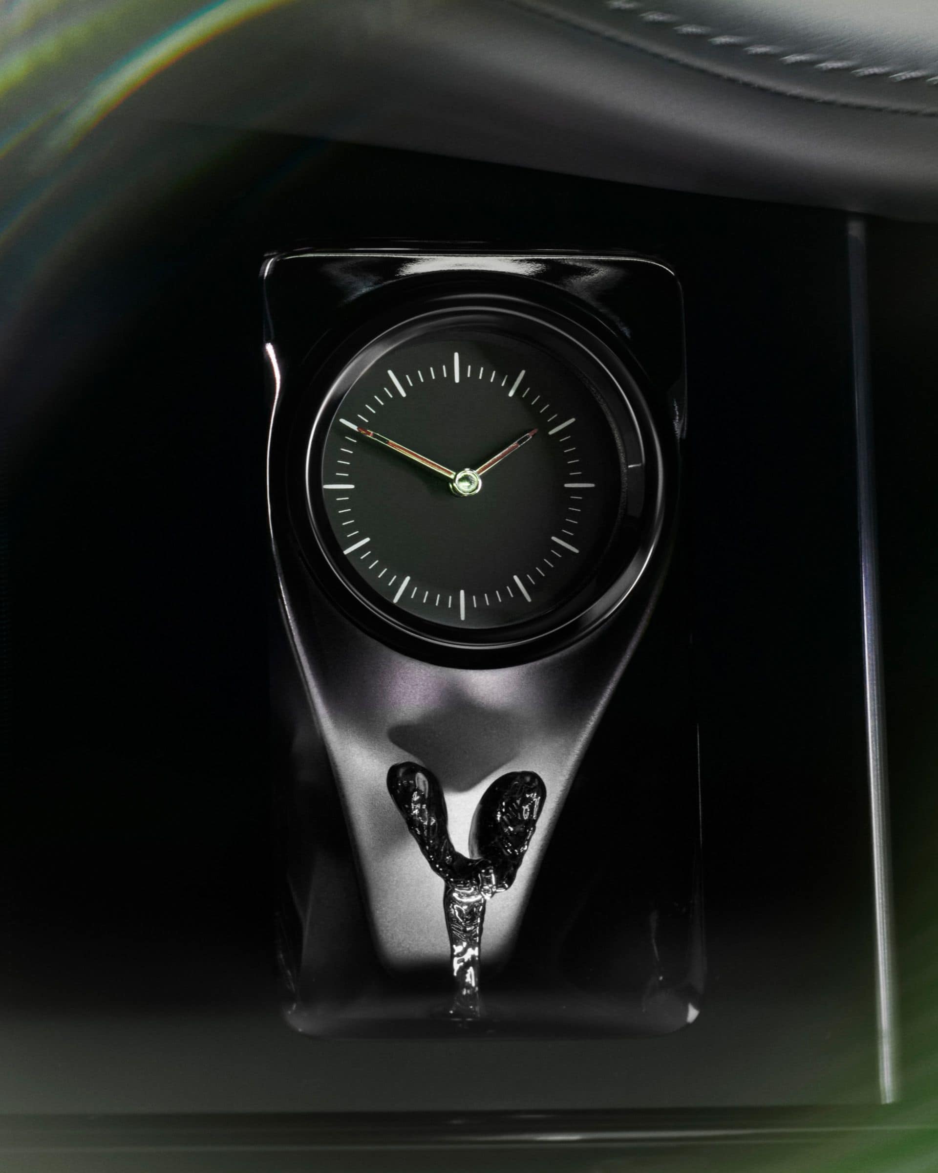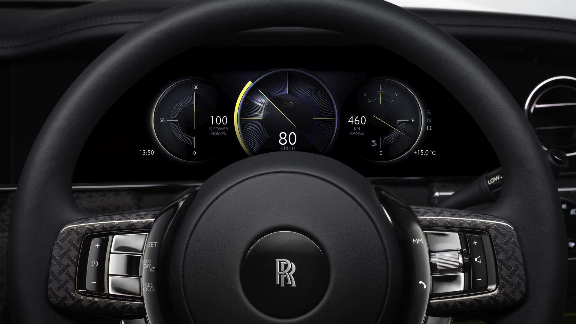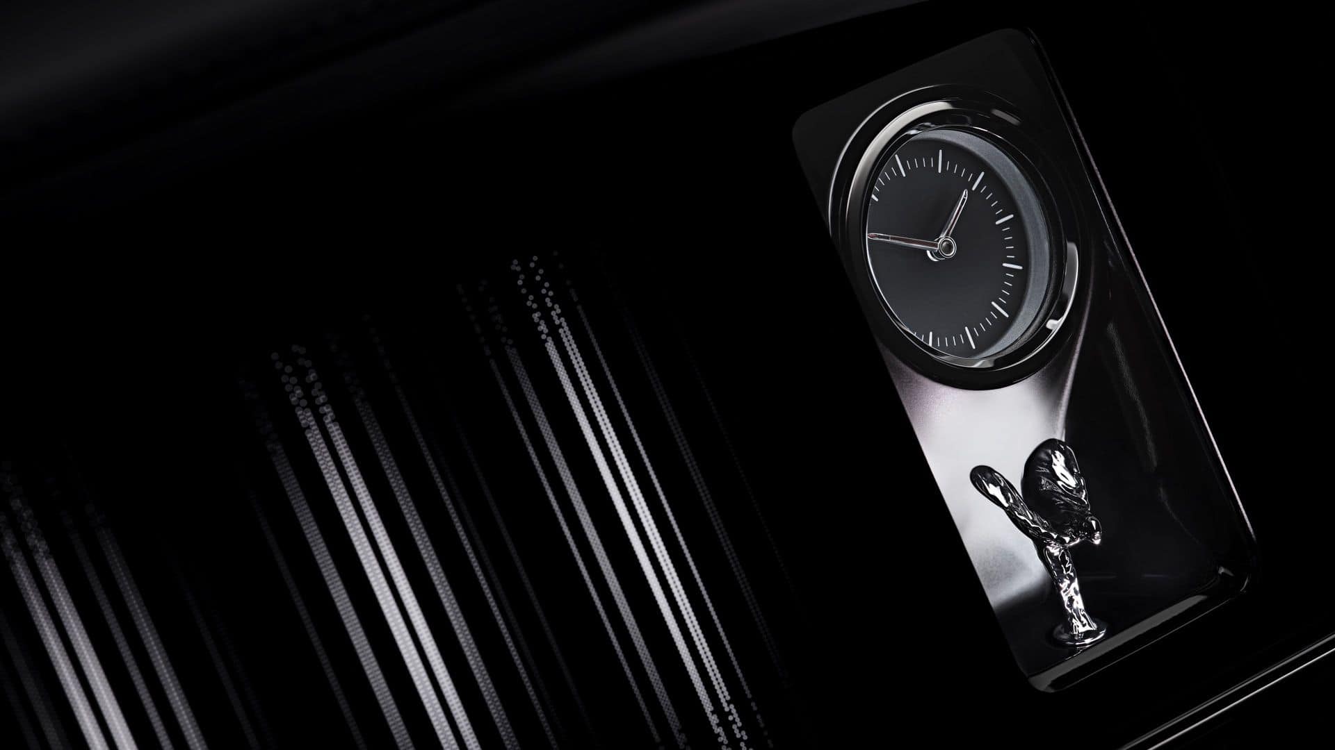 Much like any other Rolls-Royce, the real magic is inside. We’re particularly talking about the carbon fiber trim. What’s so special about it? Well, it takes a whopping 21 days to finish those 23 hand-polished pieces. Each receives six coats of lacquer and is left to cure for three days. New for 2025 is an elegant Spirit of Ecstasy emblem below the classy analog clock.