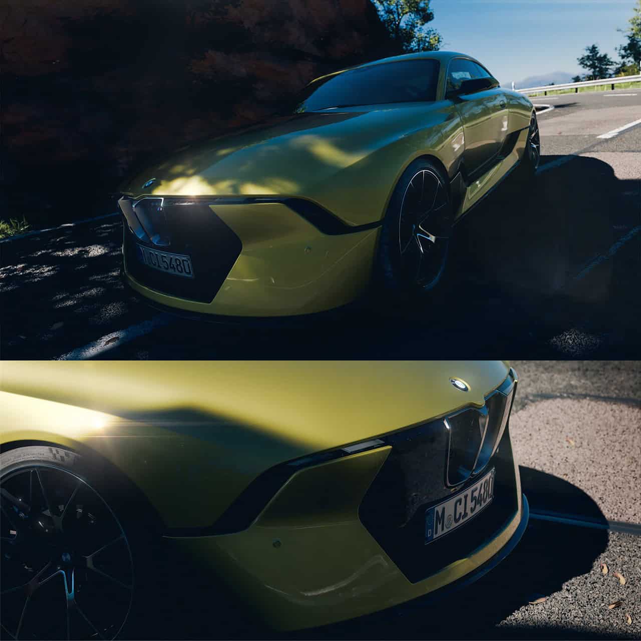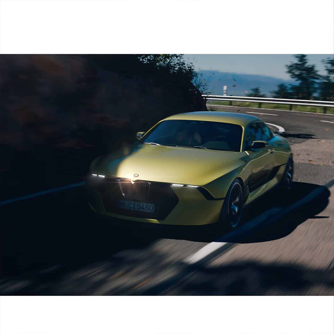 The front grille takes after the kidneys BMW gave to the ultra-rare 3.0 CSL but here they’re flanked by ultra-slim LED headlights. The absence of an exhaust system denotes we’re dealing with an EV, as do the short front overhang and smaller air intakes. We’re particularly fond of the stealthy black 03 Coupe but the design lines pop better with that mustard-like color. The daring shade reminds us of BMW’s own 2015 3.0 CSL Hommage concept.