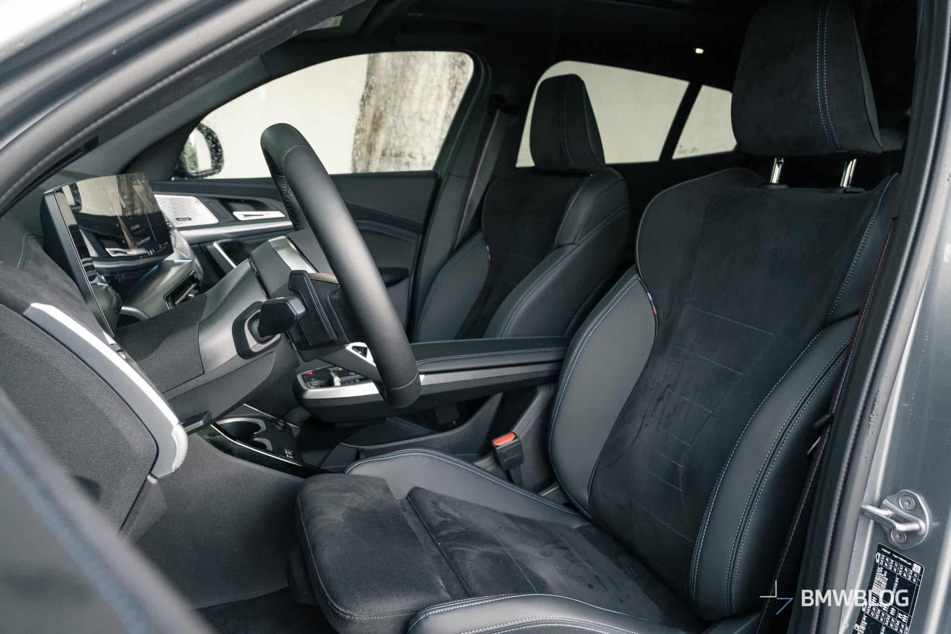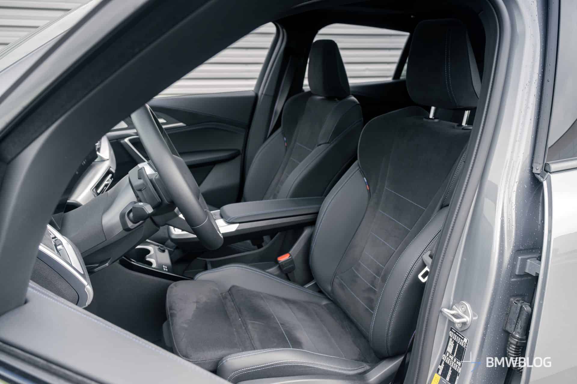 The interior is almost identical to the iX1 that I drove a few months back, as well as the 2 Series Active Tourer. Quality is generally pretty good, and my tester had swathes of Alcantara and trim elements made out of what felt very convincingly like real metal. After driving some larger BMWs, you do notice the iX2 has smaller screens that don’t look as good, but with iDrive 9, it’s certainly not lacking in features.