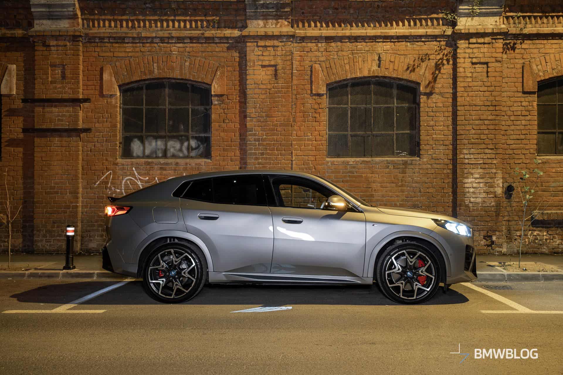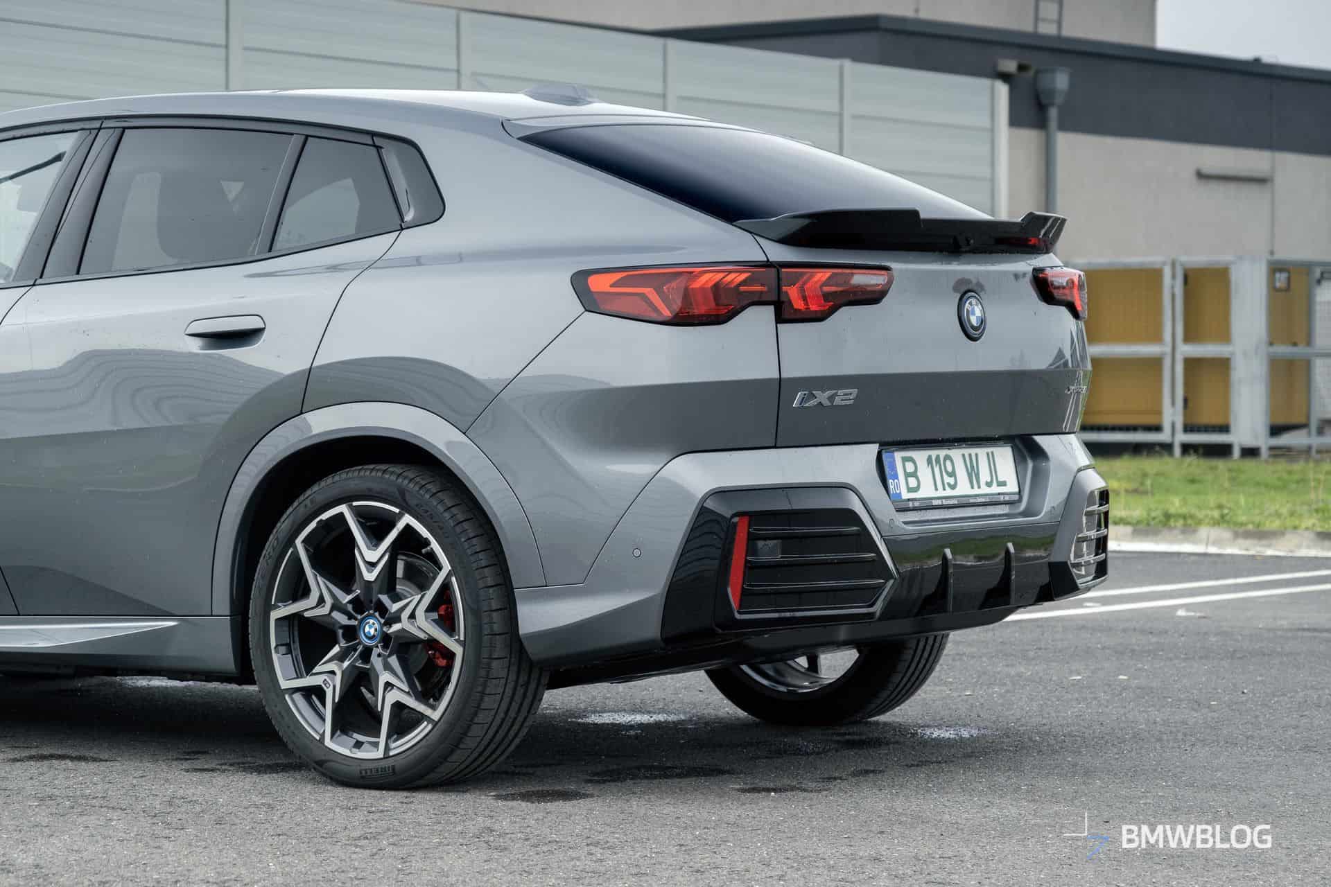 Its best angle is revealed when you see it from a rear three-quarter perspective, where it looks a bit like a hot hatchback. All iX2s get a standard ducktail spoiler, which is always finished in glossy black, and you can’t have it body-colored. The spoiler is slightly larger and more aggressive looking on M-pack cars, and along with the illuminated grille, it was one of this car’s distinguishing features for me.
