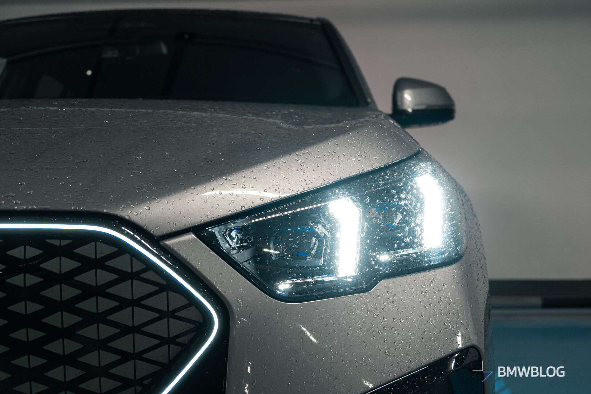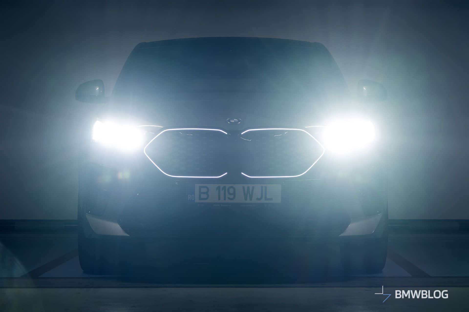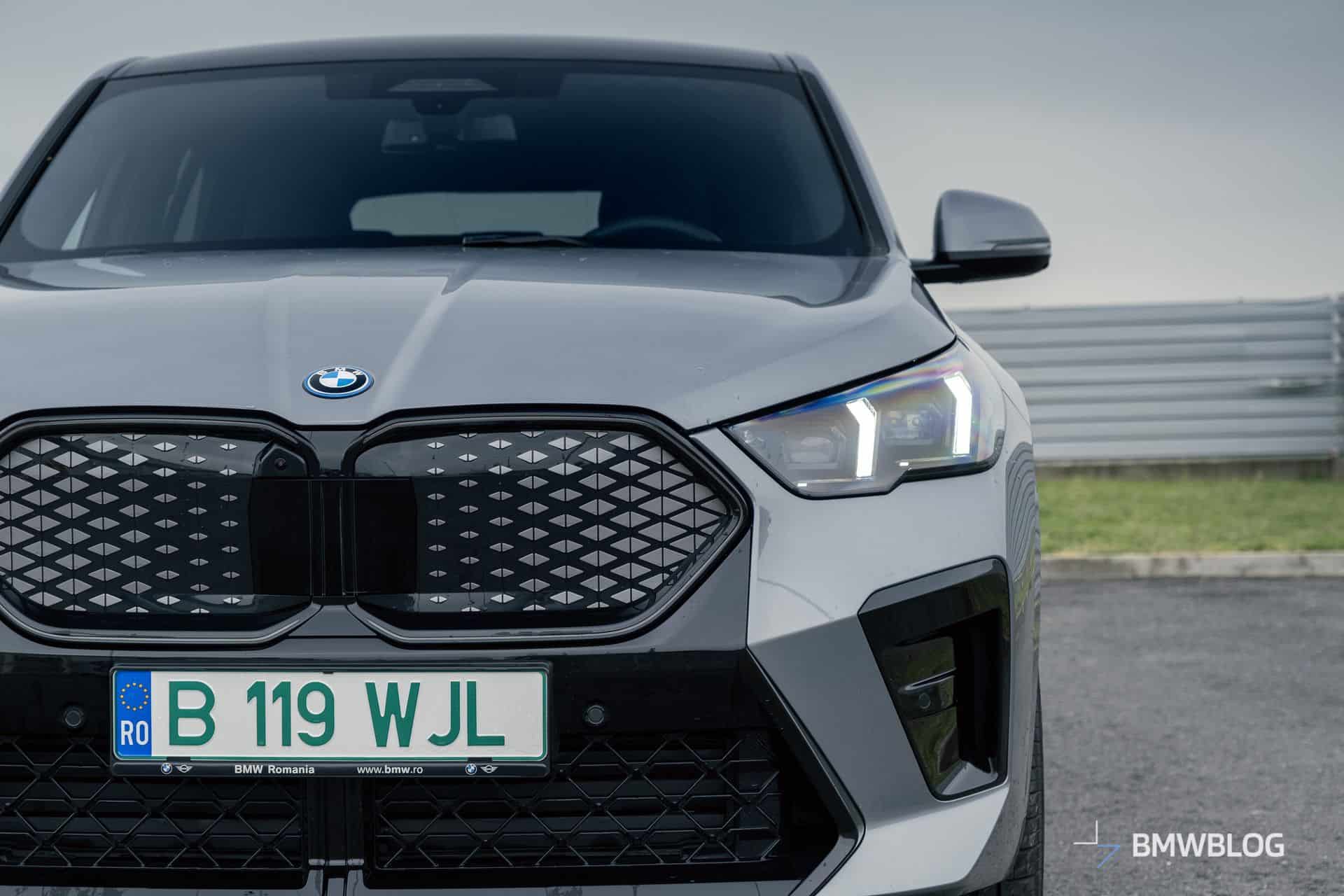 The iX2 retains the same size grille as the combustion X2, but it’s completely covered up. As far as BMW’s oversized grilles go, this one looks pretty good, and it works surprisingly well with the light-up grille surround that my tester has. This really makes the iX2 pop at night, especially when you see one in your rear-view mirrors.