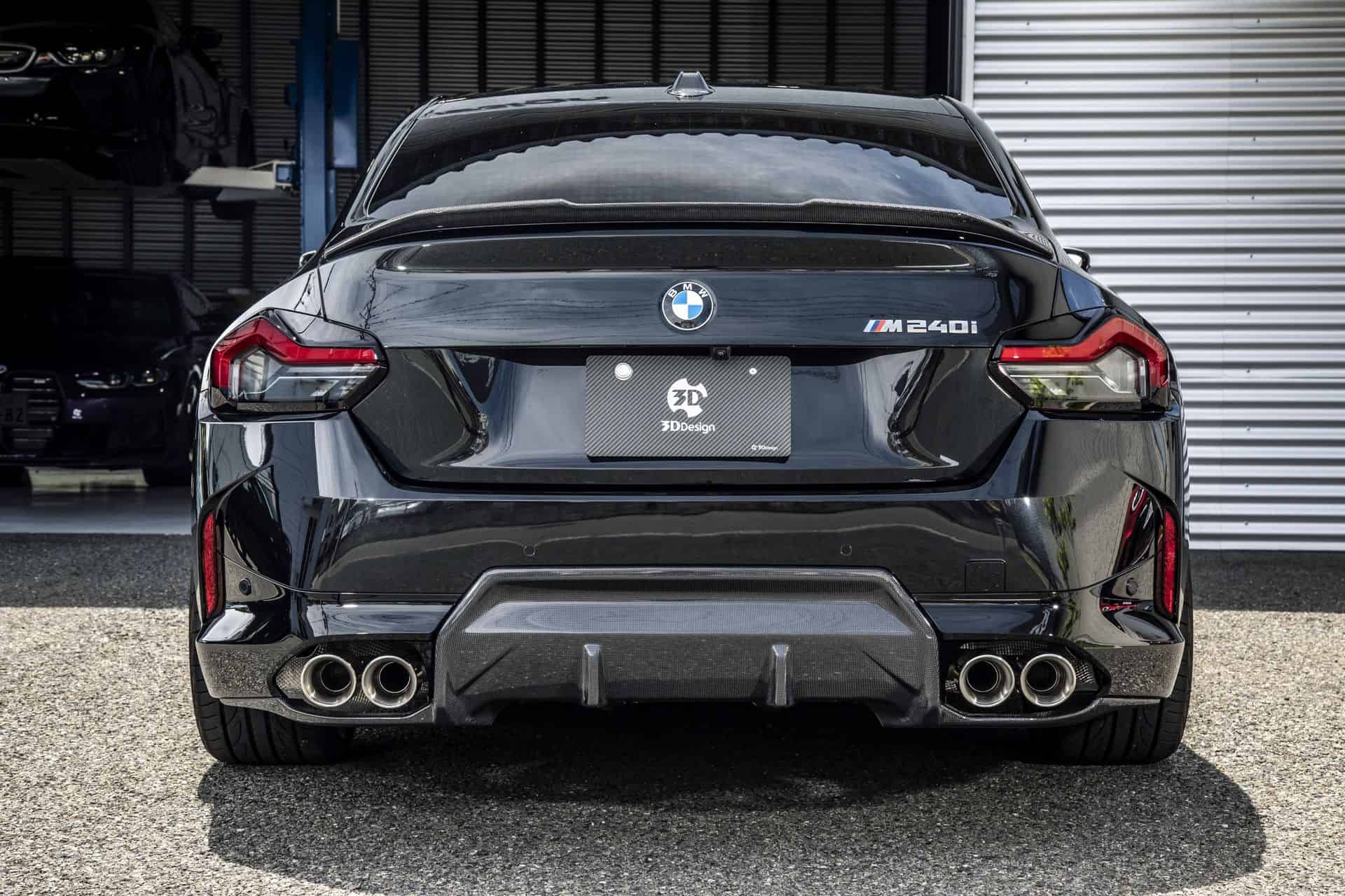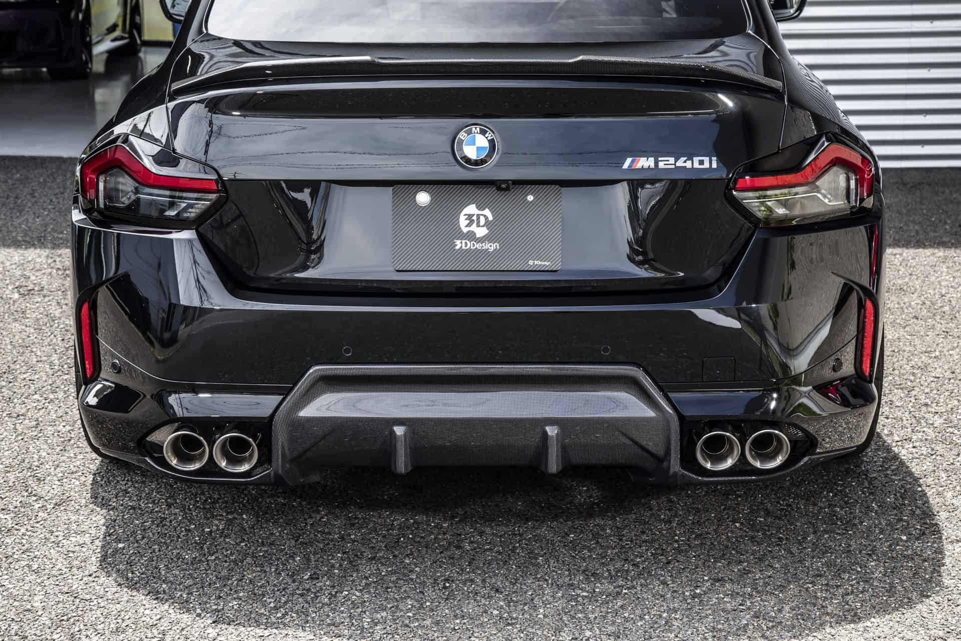 Lastly, the showcase vehicle for 3D Design’s program is a BMW M240i xDrive in Black Sapphire. This color choice perfectly complements the carbon fiber accents and aggressive design elements, creating a visually stunning and cohesive look.