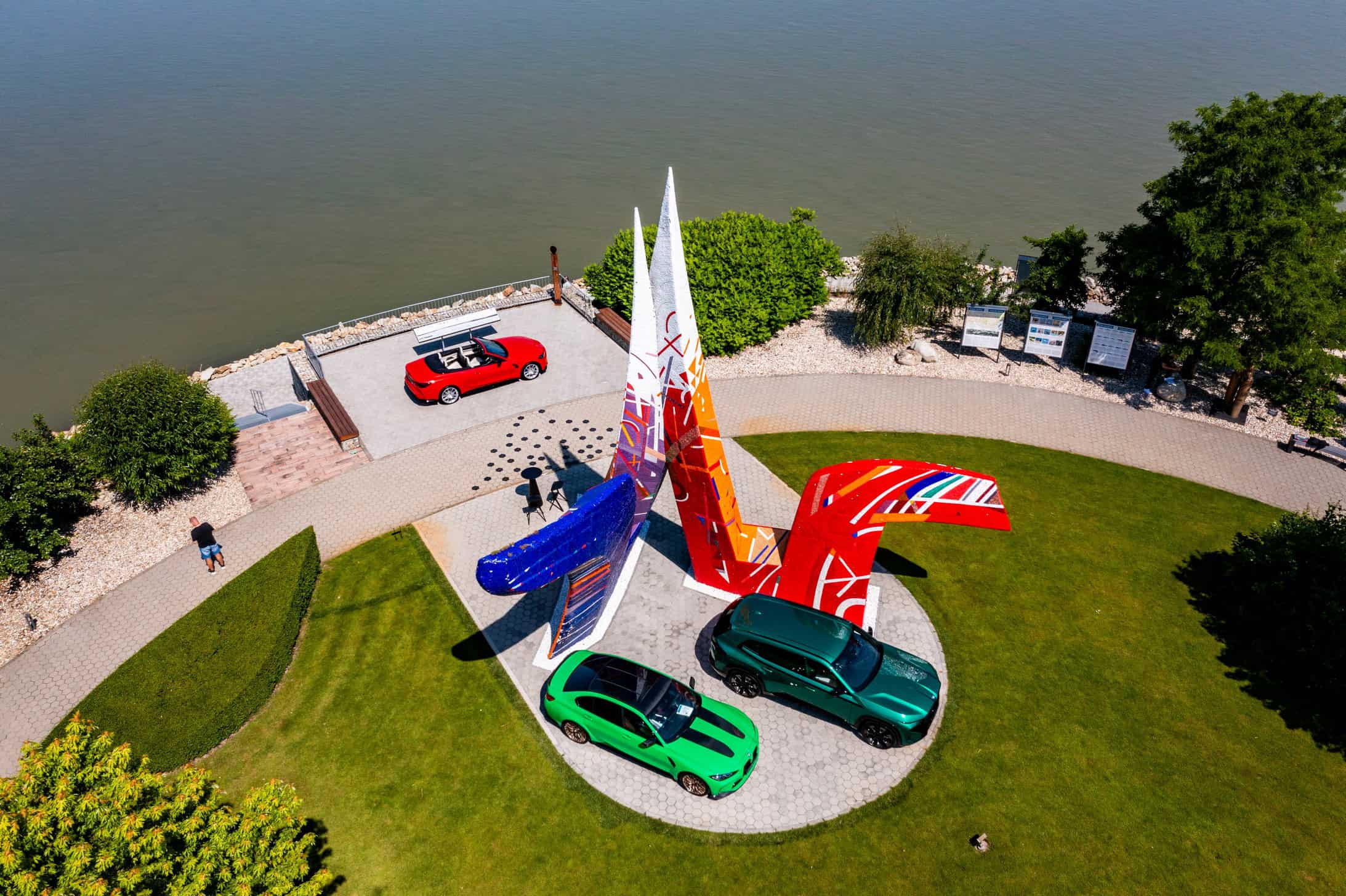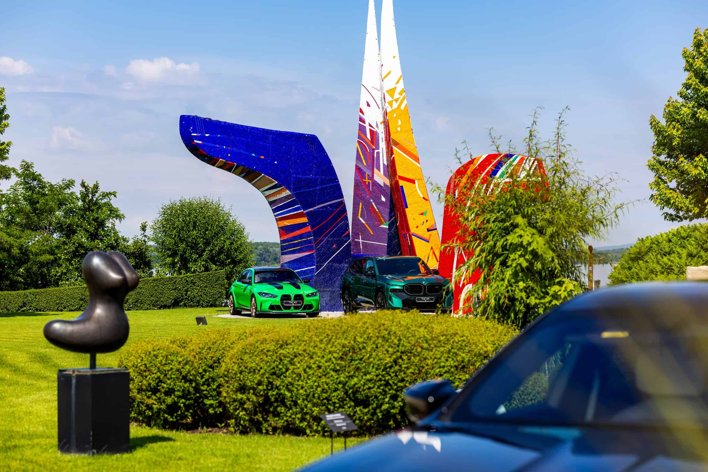 The flagship M car was joined at the Danubiana Meulensteen Art Museum by the production model that indirectly replaced it. BMW brought the XM in the 50e flavor, a six-cylinder variant positioned below the V8-powered XM and XM Label. The plug-in hybrid SUV is officially labeled as a dedicated M car, which the more exciting Vision M Next would’ve also been.