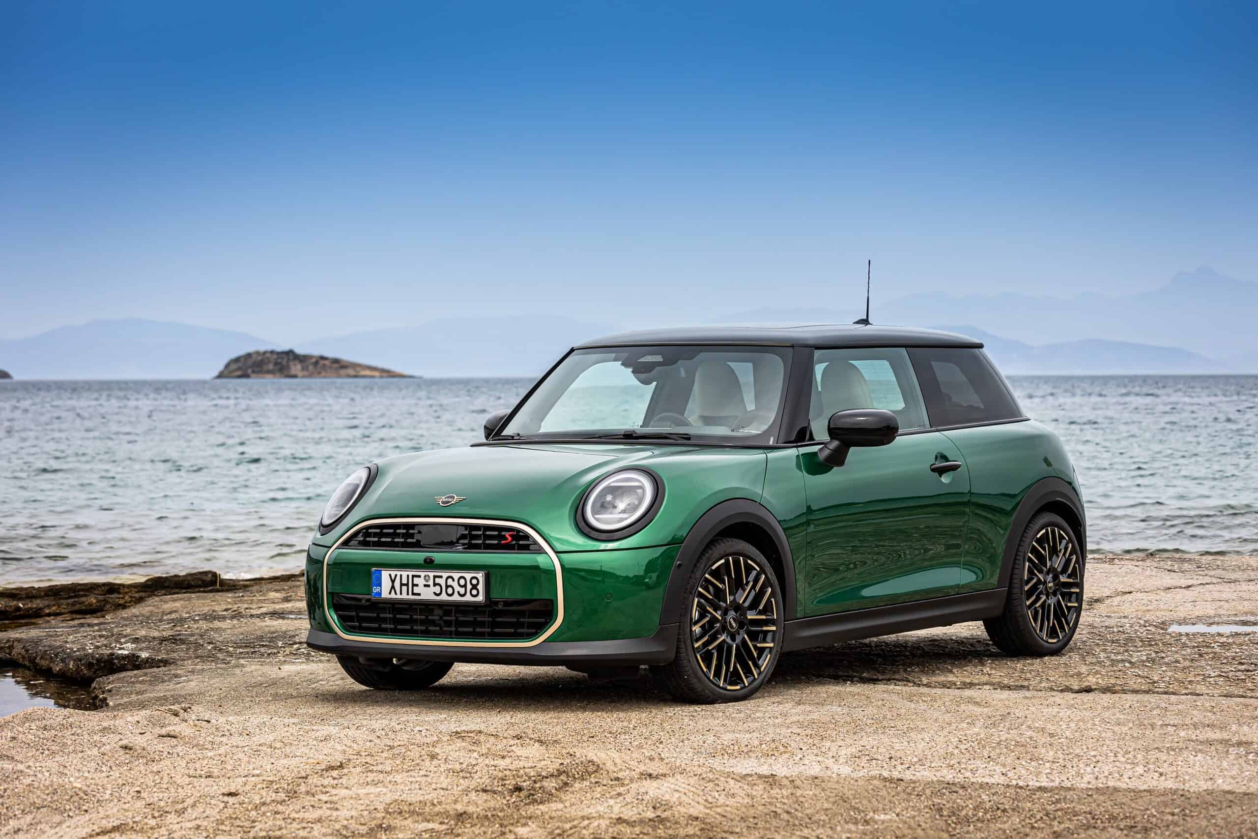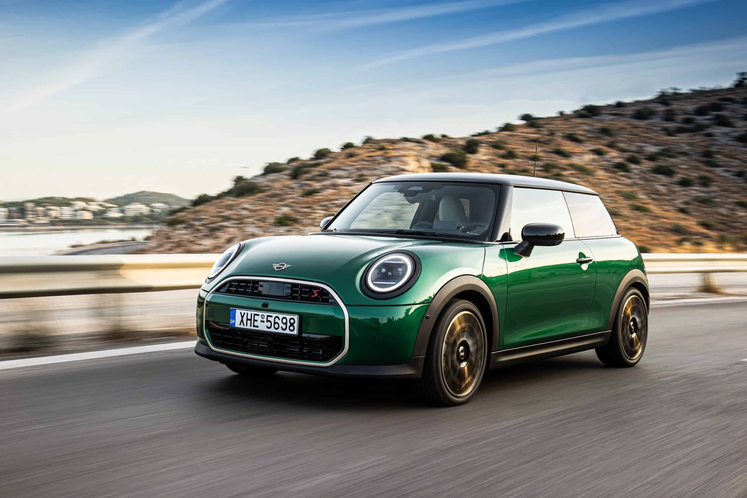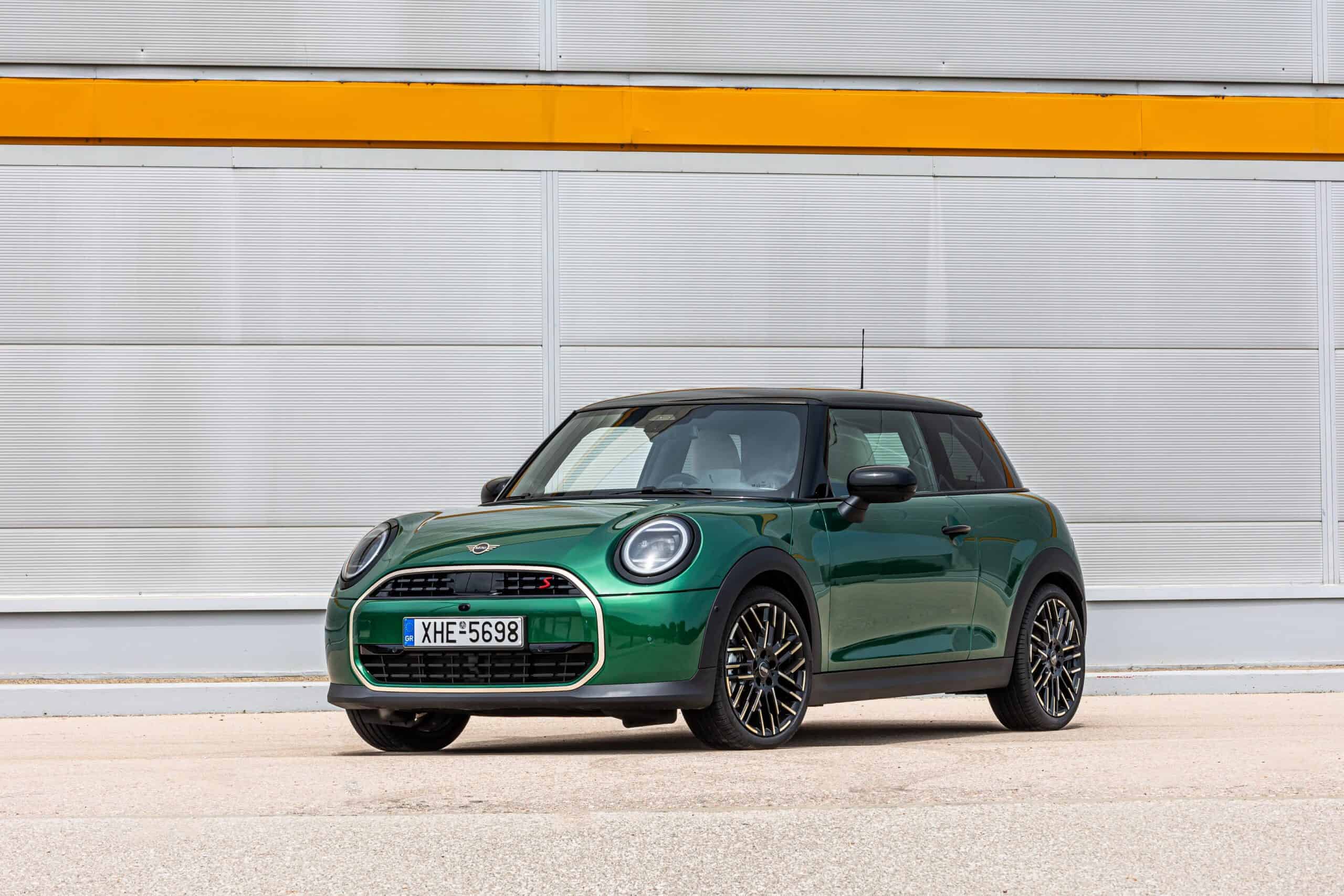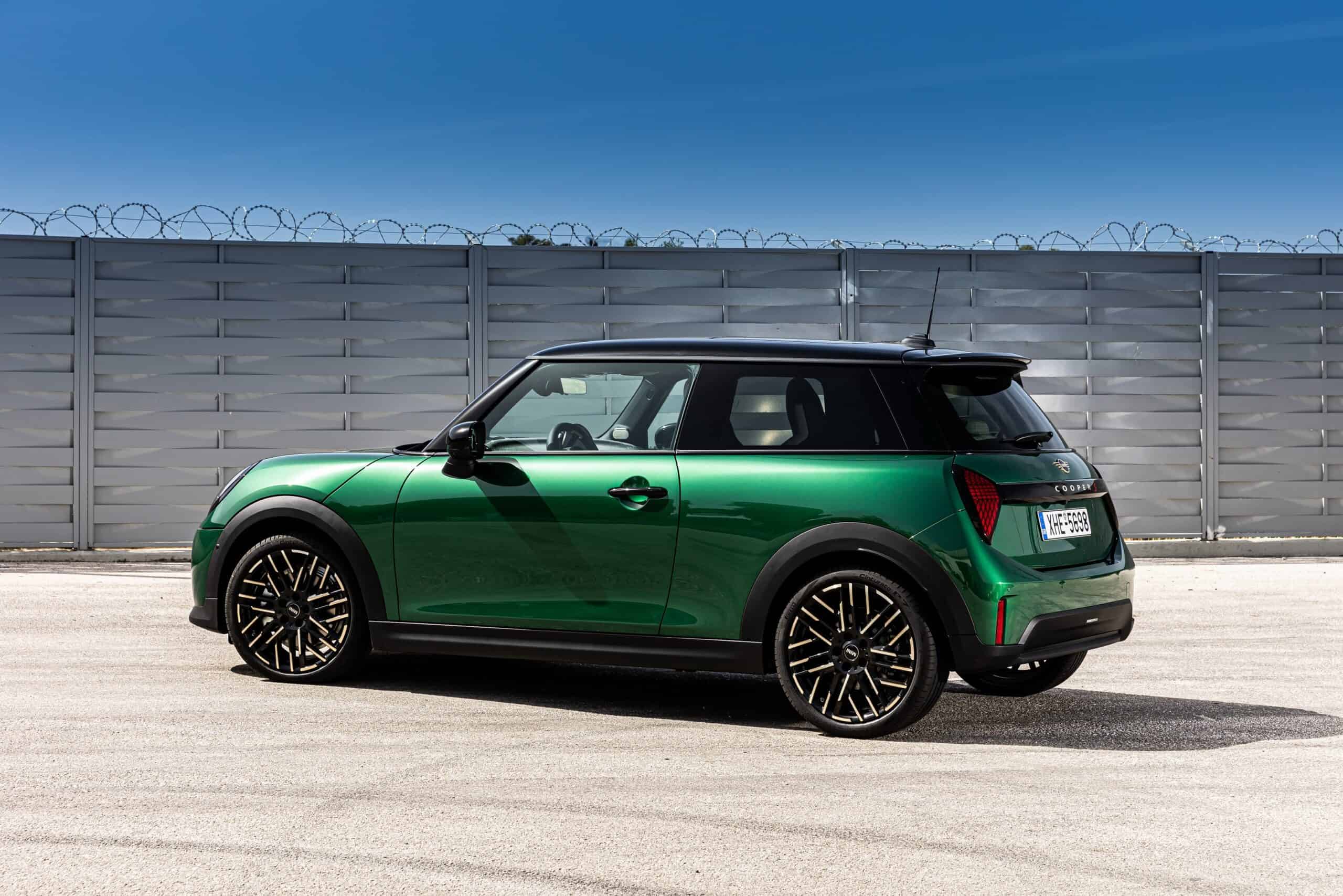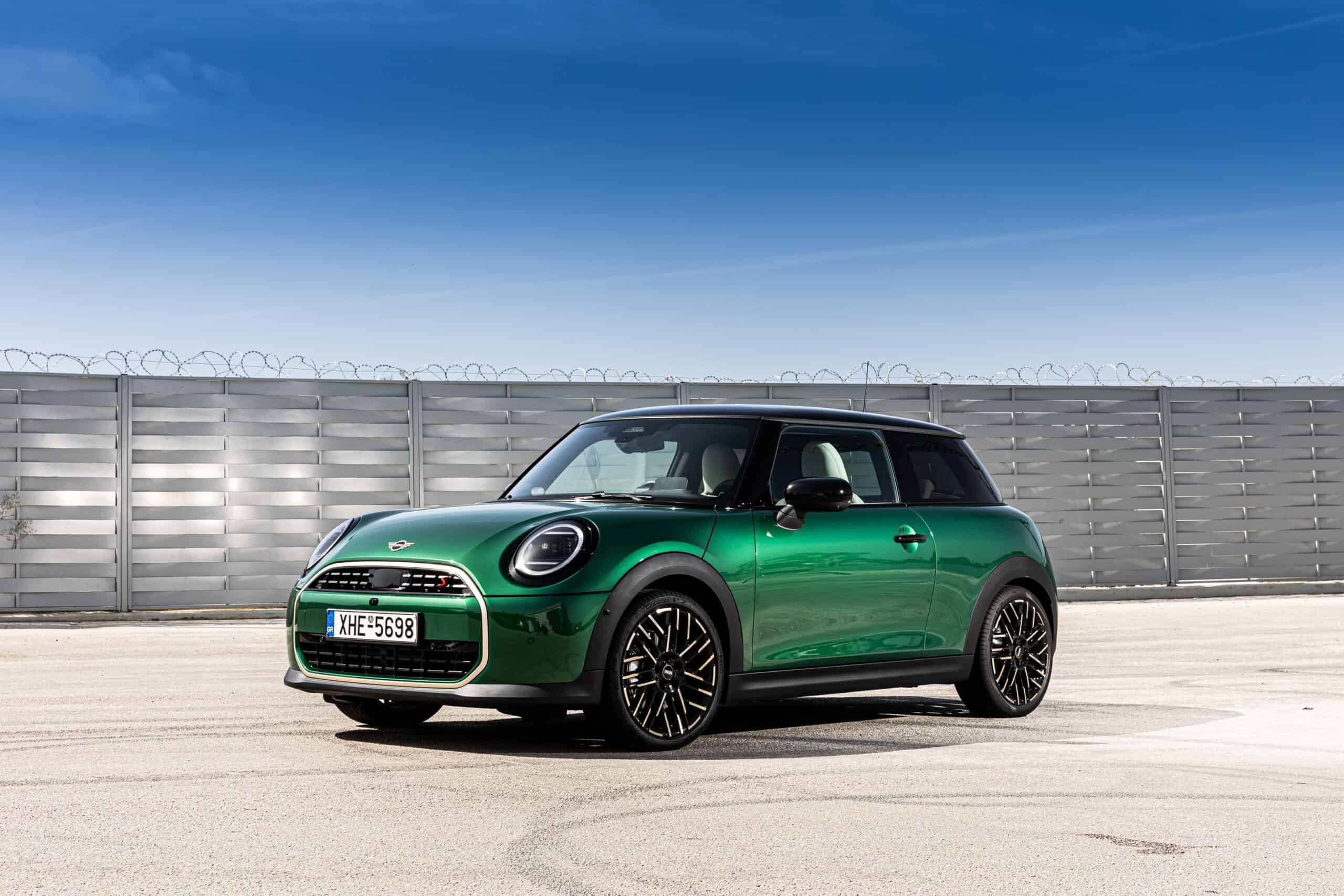 MINI has refreshed nearly its entire lineup for 2024, and that includes the 3-Door Hatch. Codenamed F66, the stylish city car touched down in Greece where it was photographed in Athens. Seen here is the hooter Cooper S painted in British Racing Green with a contrasting black roof. The diminutive hatchback rides on the optional 18-inch, two-tone wheels dubbed “Night Flash.”