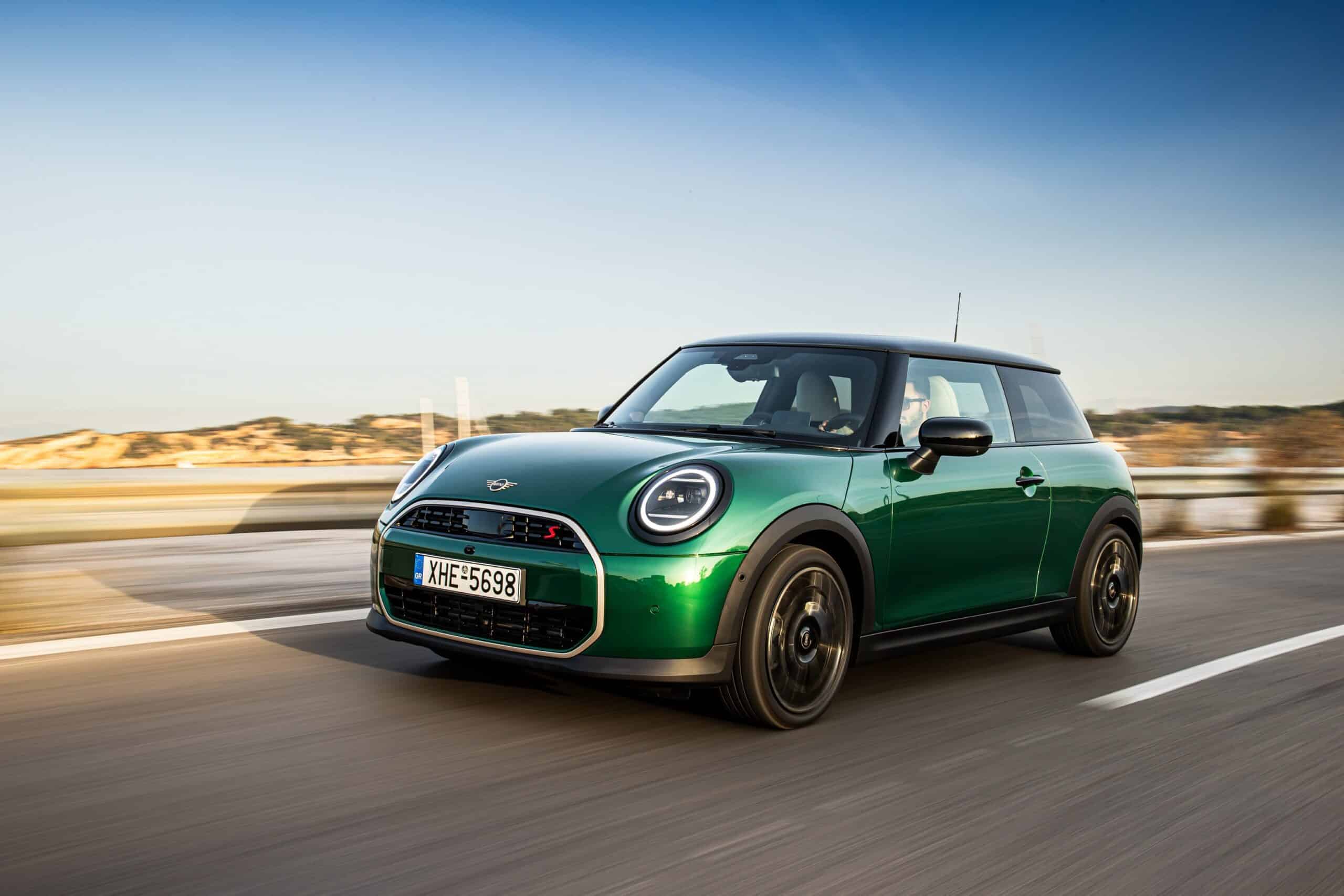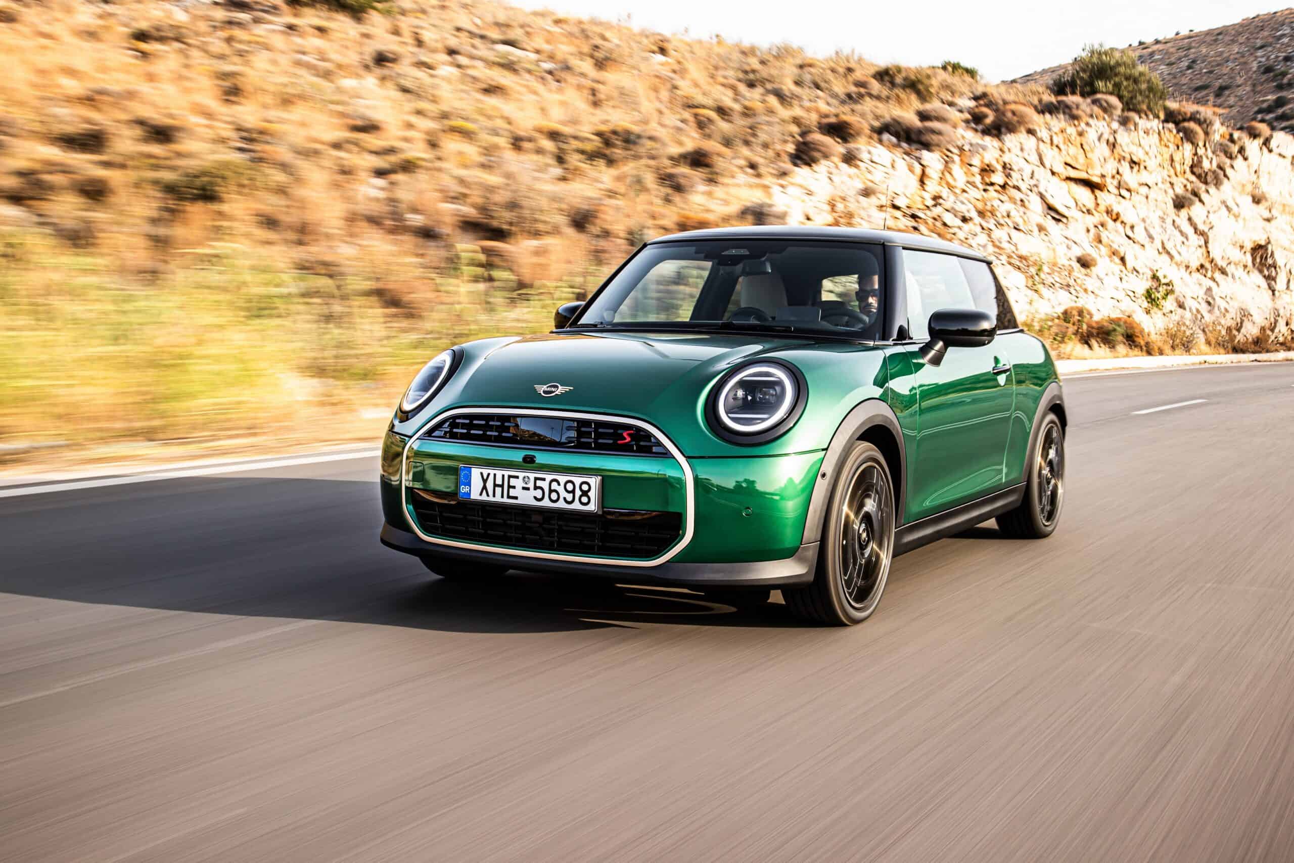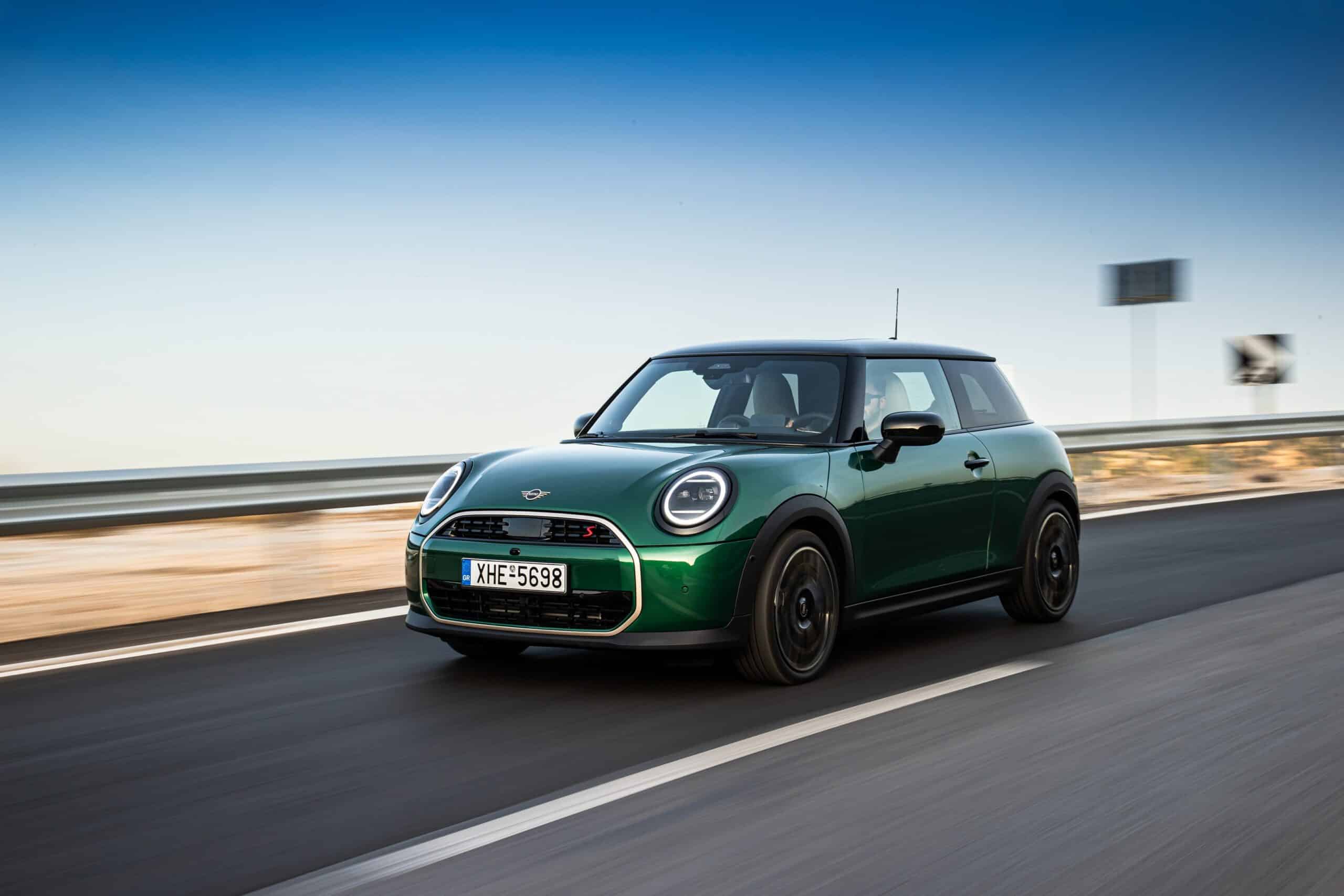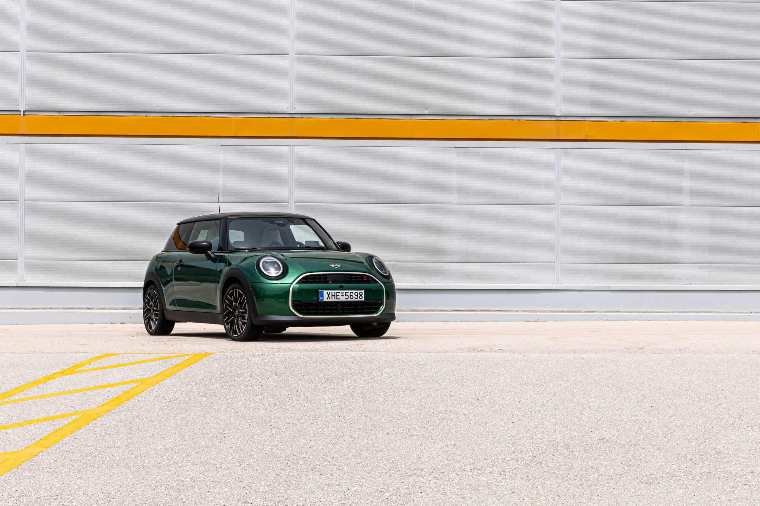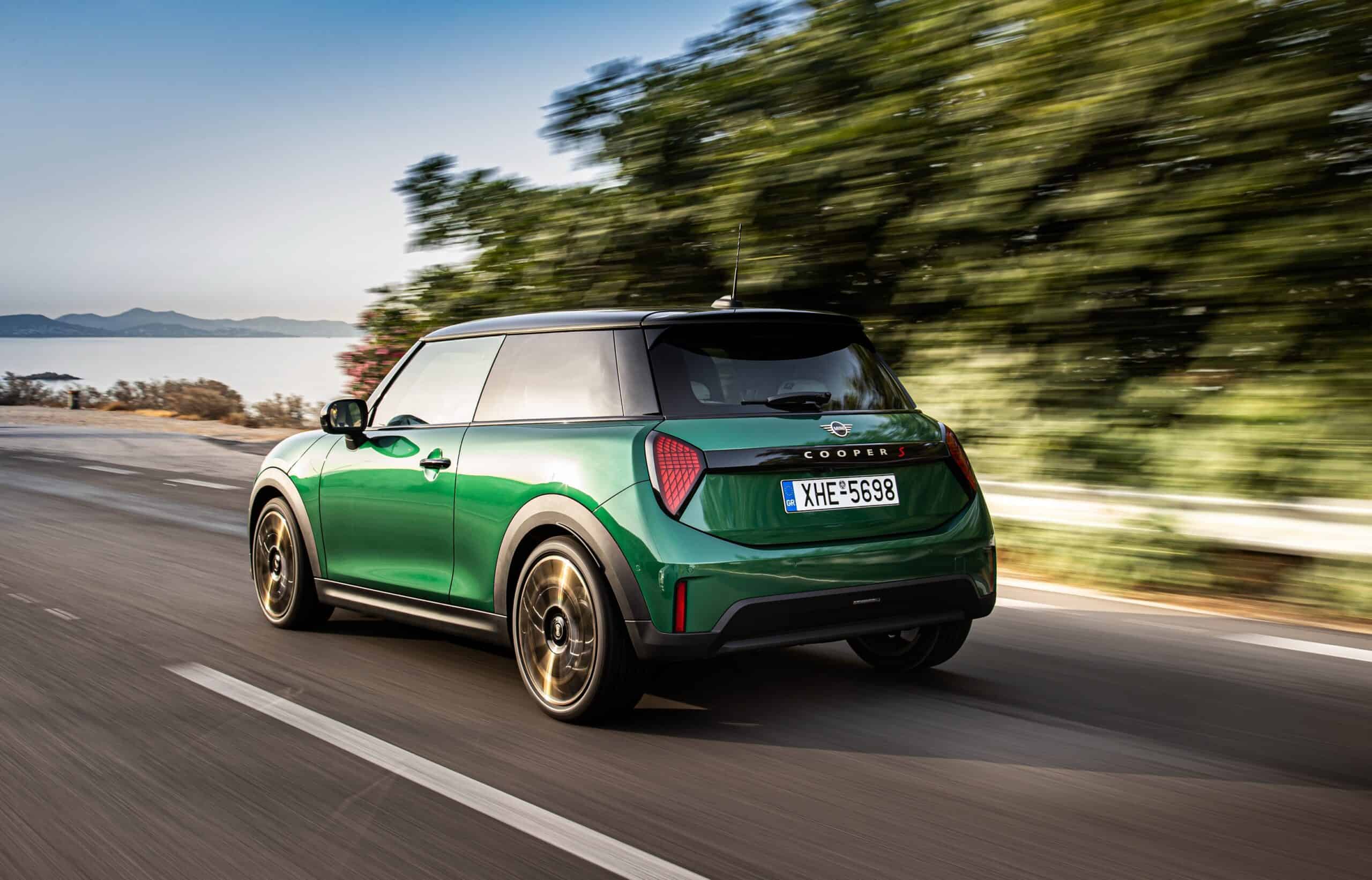 MINI has refreshed nearly its entire lineup for 2024, and that includes the 3-Door Hatch. Codenamed F66, the stylish city car touched down in Greece where it was photographed in Athens. Seen here is the hooter Cooper S painted in British Racing Green with a contrasting black roof. The diminutive hatchback rides on the optional 18-inch, two-tone wheels dubbed “Night Flash.”