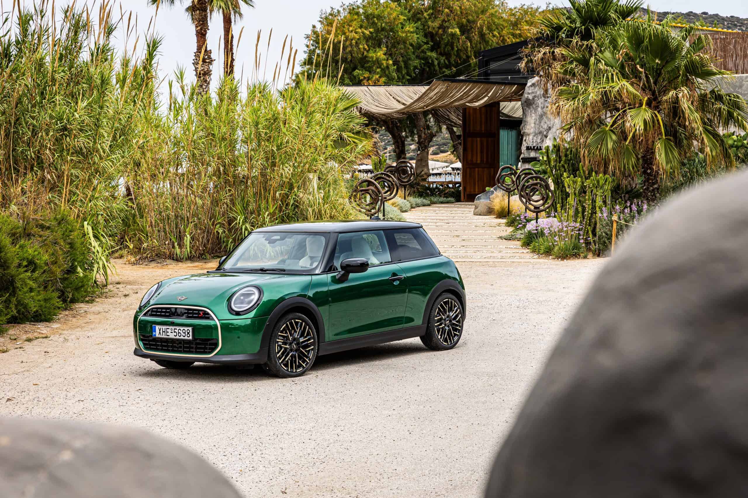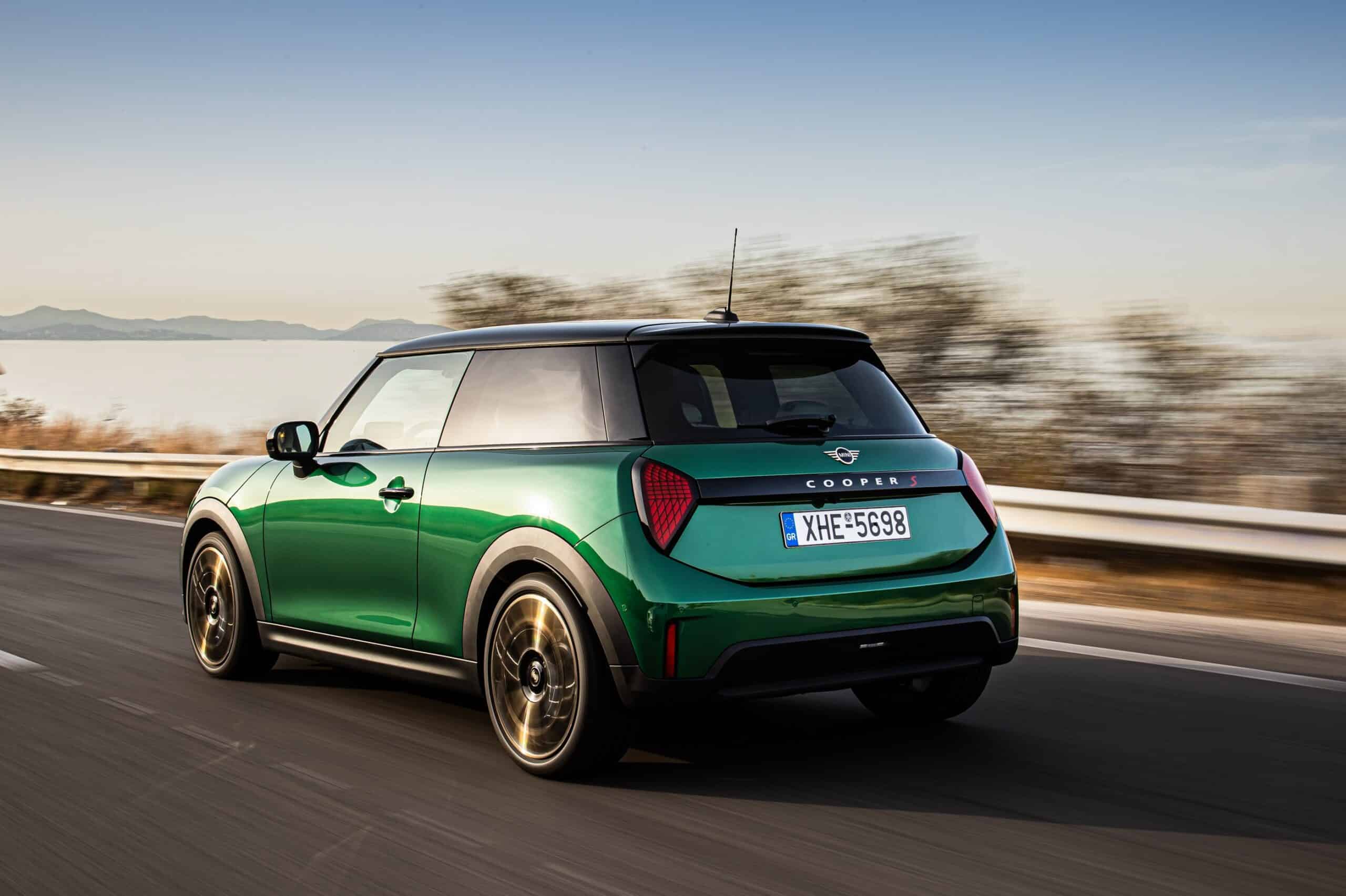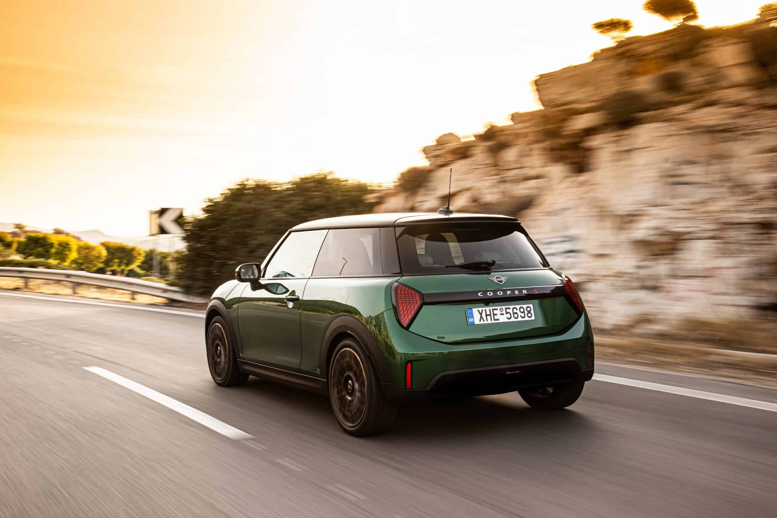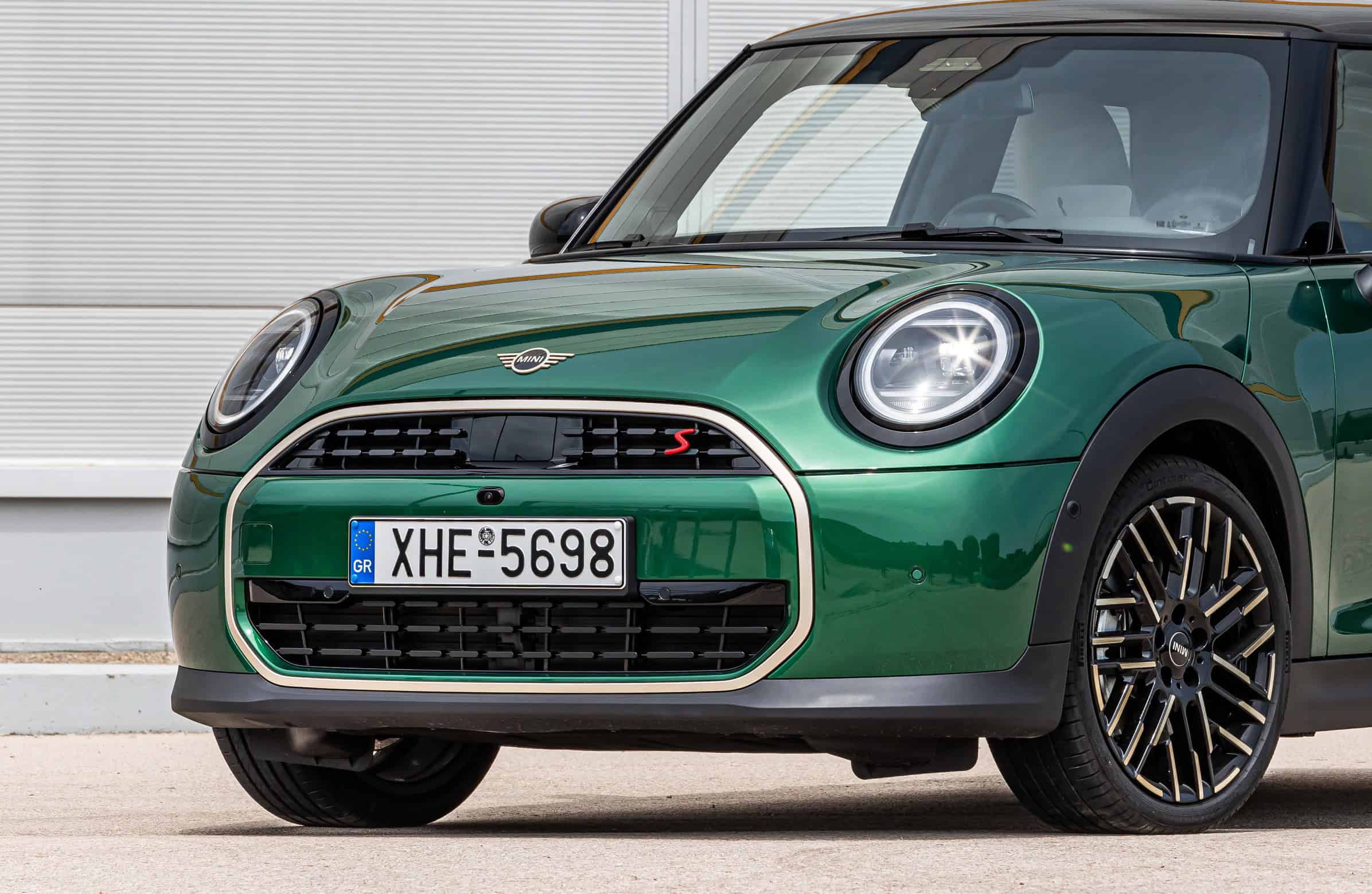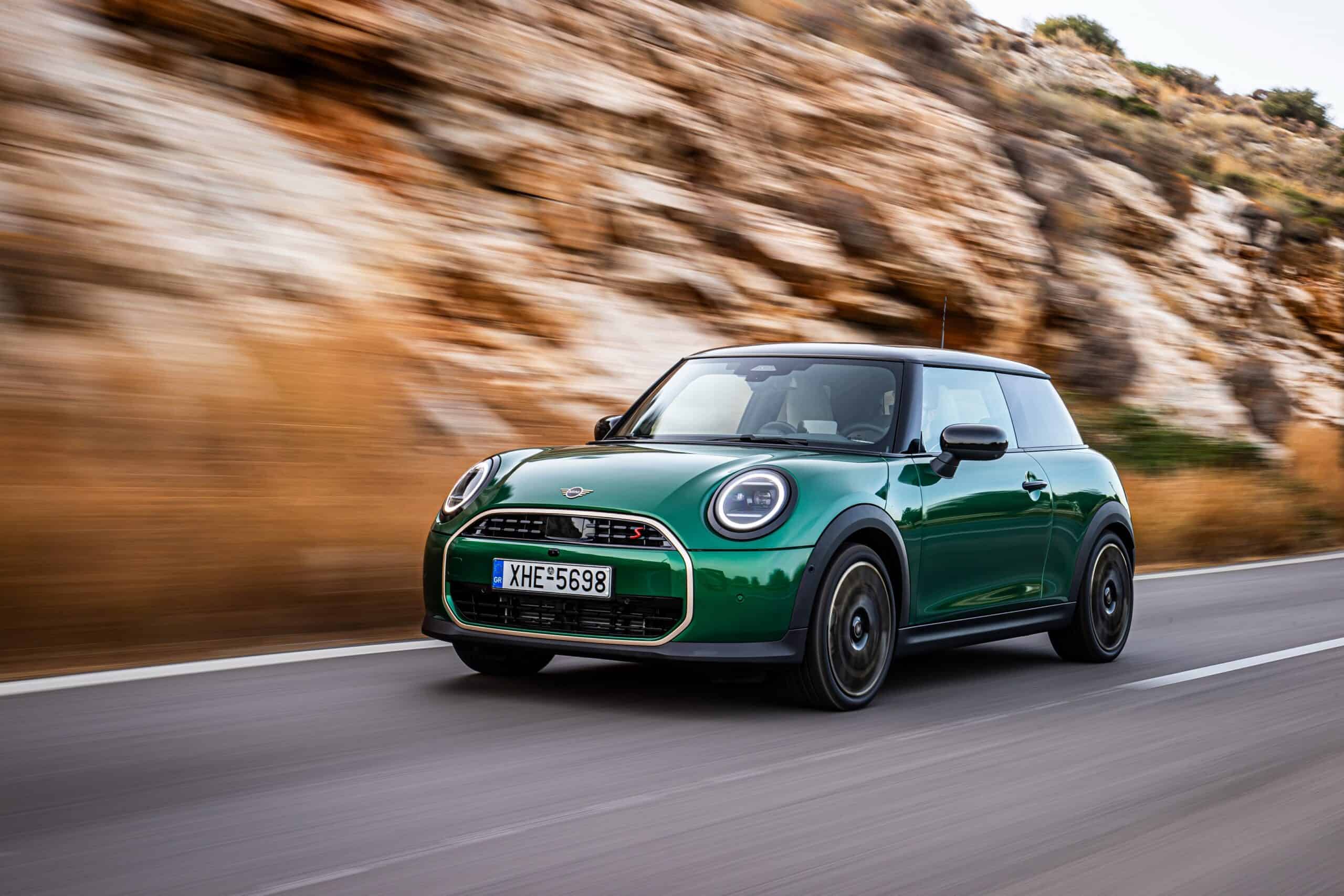 MINI has refreshed nearly its entire lineup for 2024, and that includes the 3-Door Hatch. Codenamed F66, the stylish city car touched down in Greece where it was photographed in Athens. Seen here is the hooter Cooper S painted in British Racing Green with a contrasting black roof. The diminutive hatchback rides on the optional 18-inch, two-tone wheels dubbed “Night Flash.”