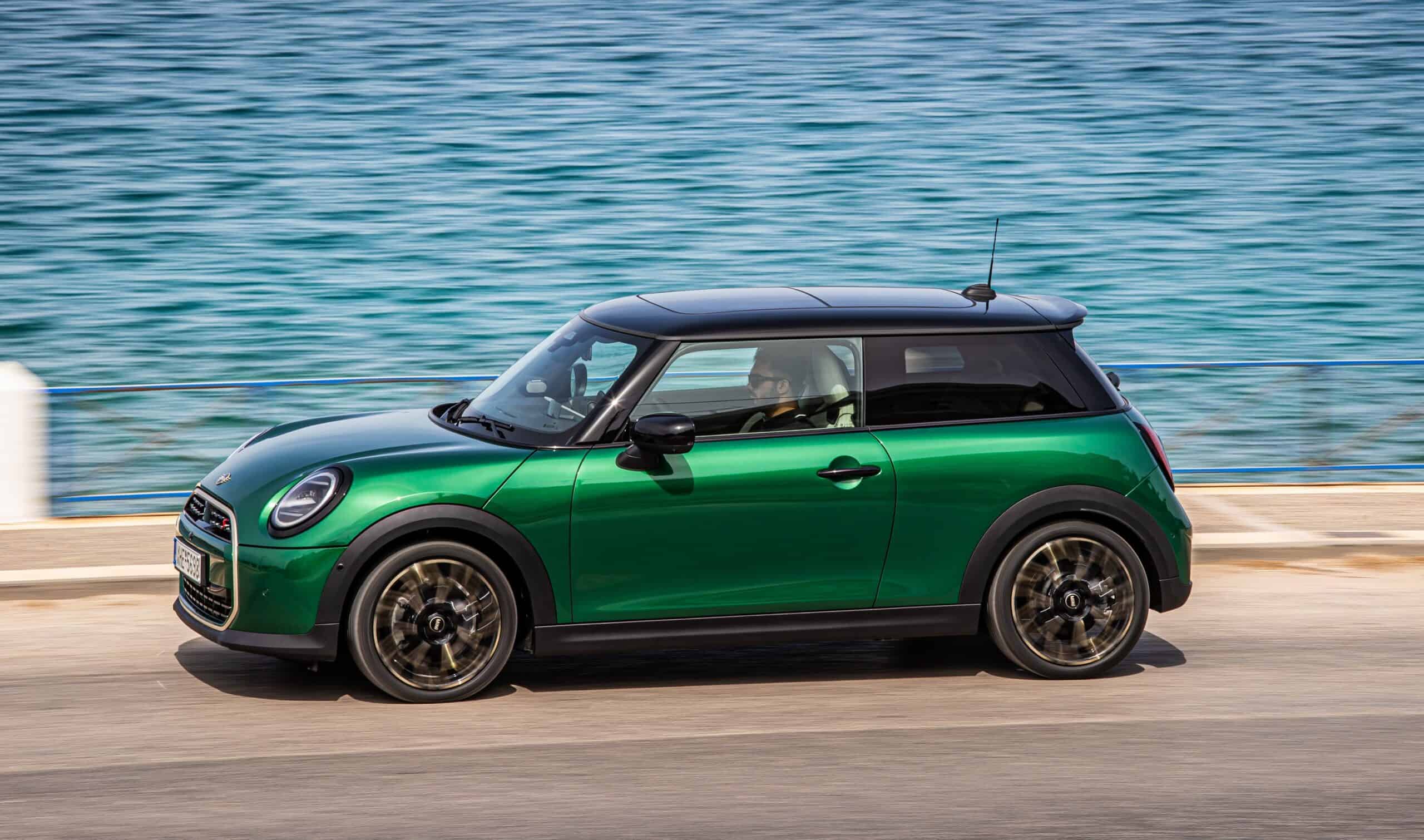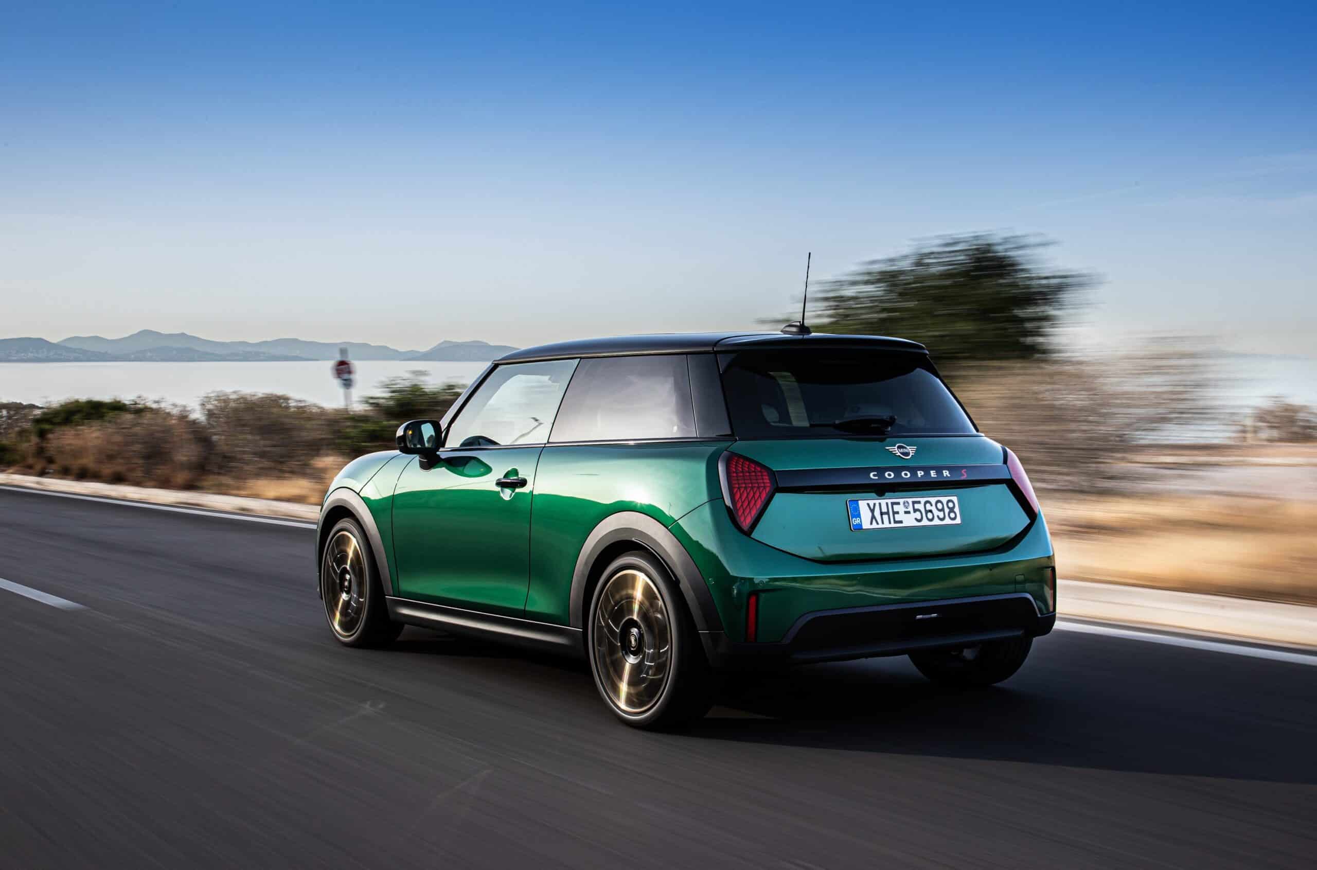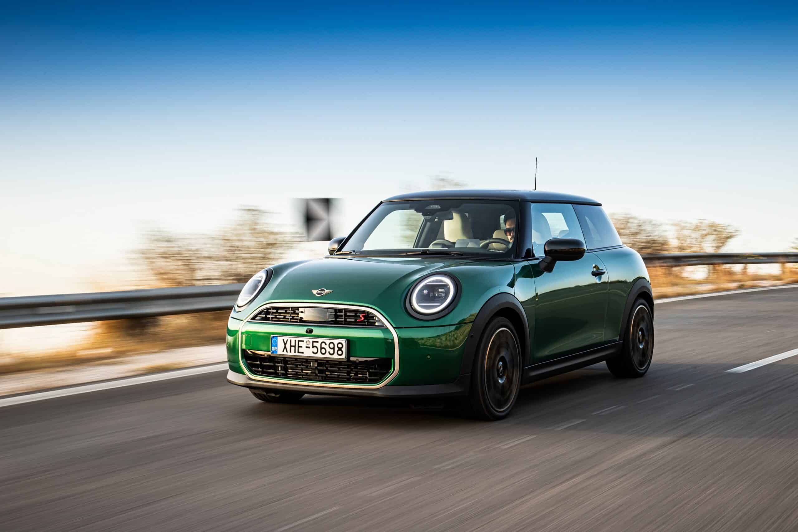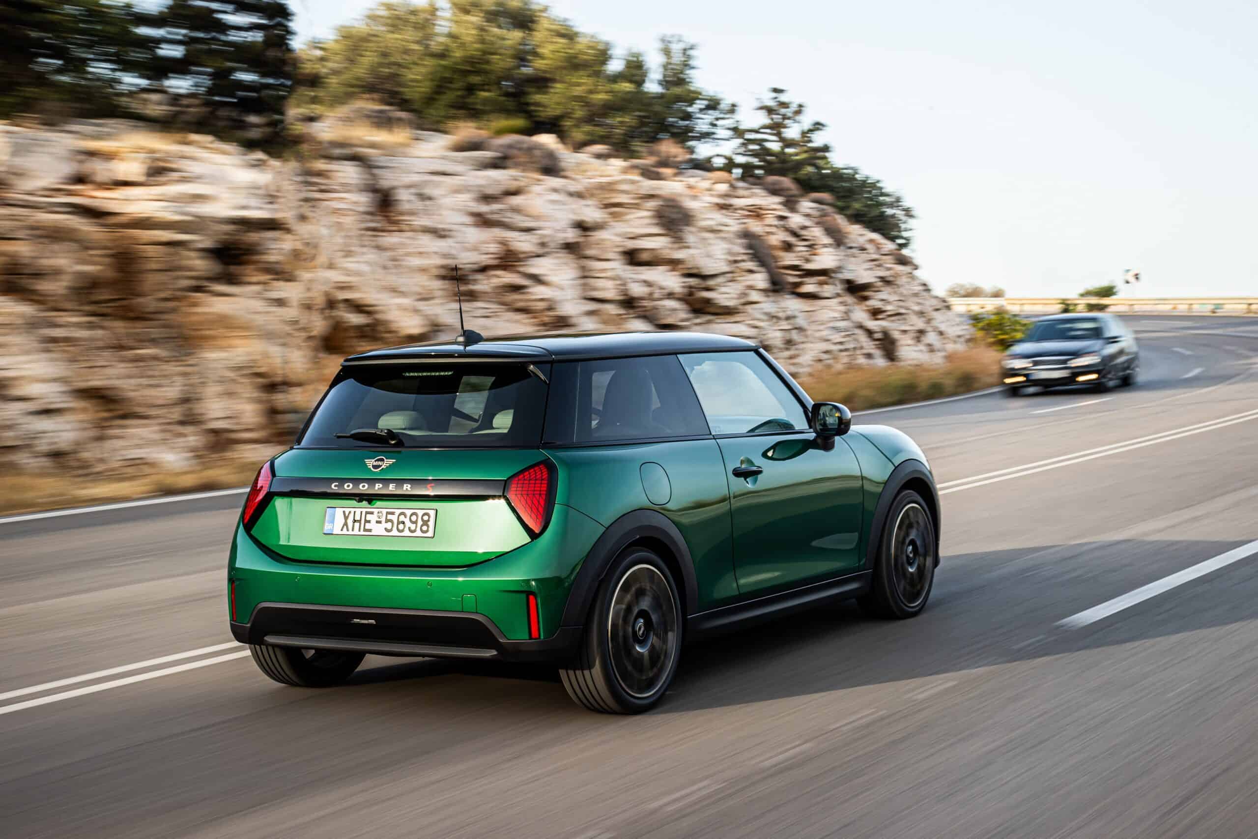 MINI has refreshed nearly its entire lineup for 2024, and that includes the 3-Door Hatch. Codenamed F66, the stylish city car touched down in Greece where it was photographed in Athens. Seen here is the hooter Cooper S painted in British Racing Green with a contrasting black roof. The diminutive hatchback rides on the optional 18-inch, two-tone wheels dubbed “Night Flash.”