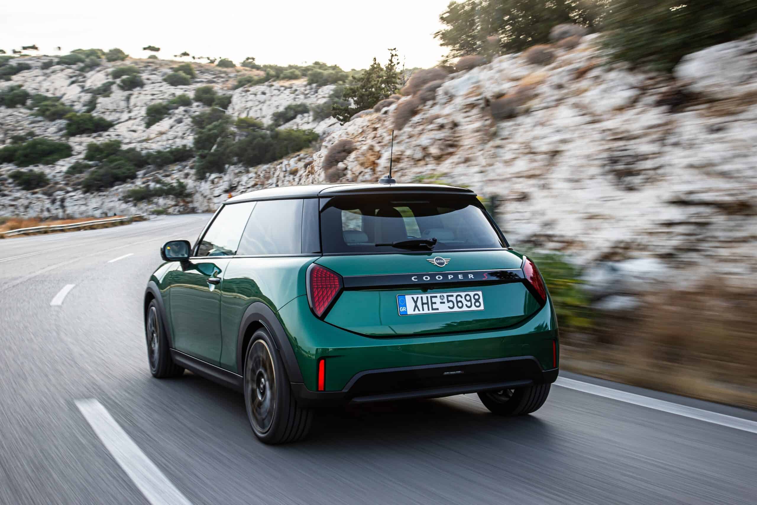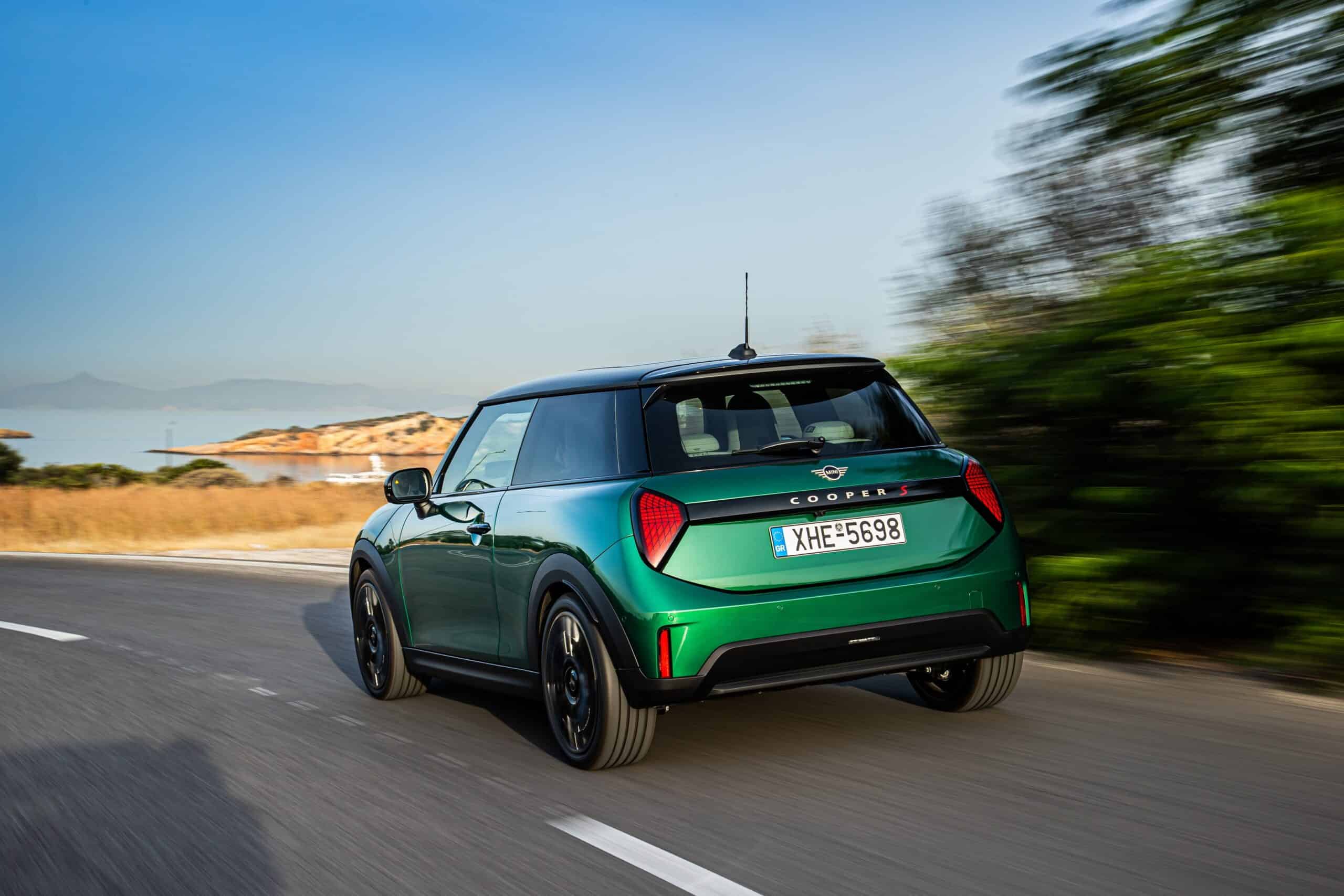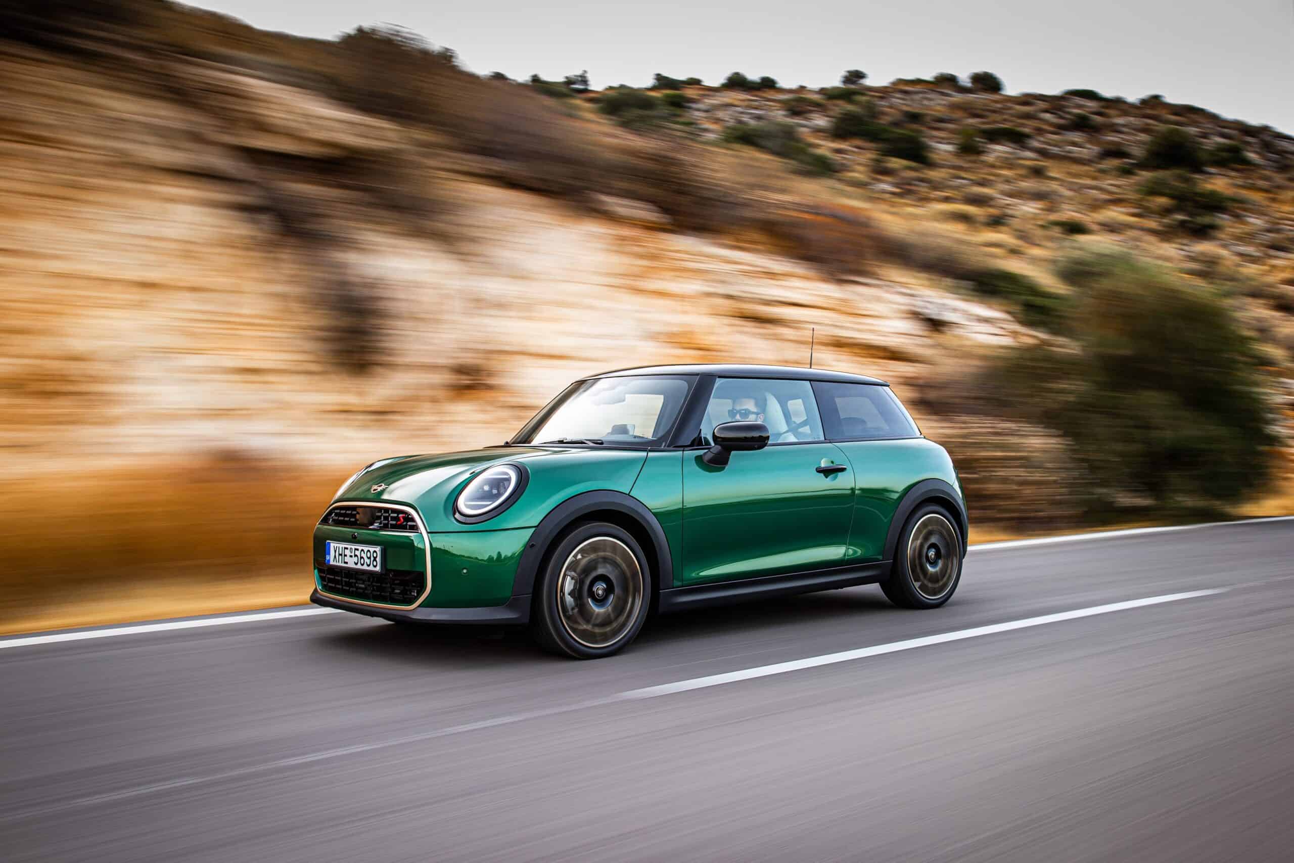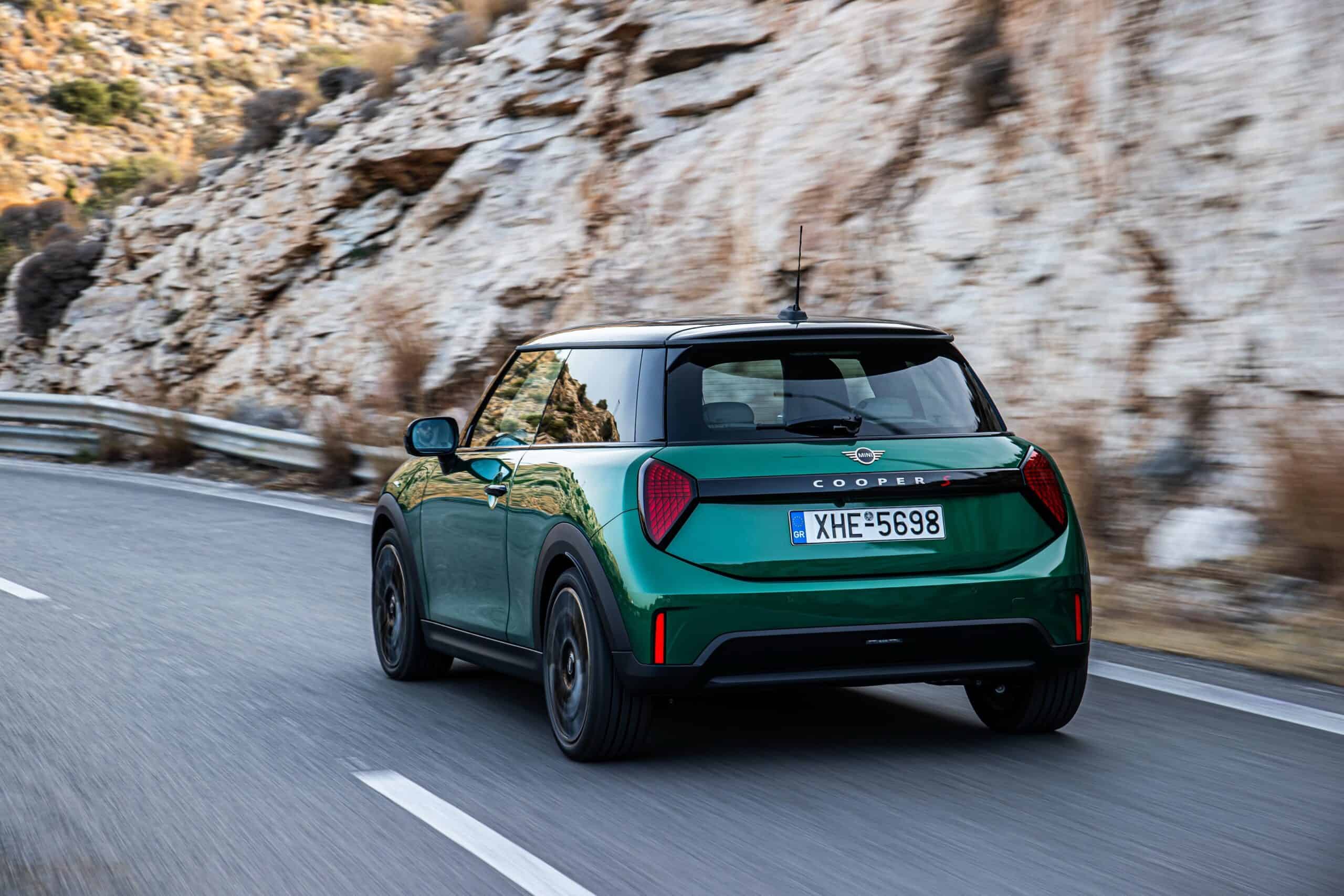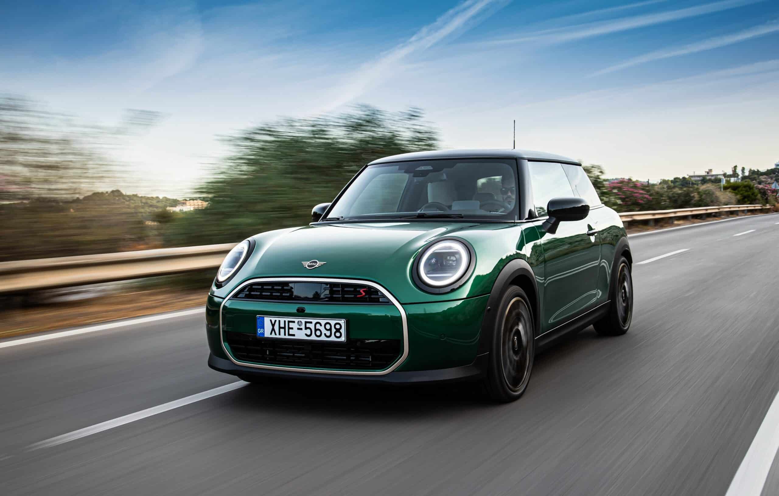 MINI has refreshed nearly its entire lineup for 2024, and that includes the 3-Door Hatch. Codenamed F66, the stylish city car touched down in Greece where it was photographed in Athens. Seen here is the hooter Cooper S painted in British Racing Green with a contrasting black roof. The diminutive hatchback rides on the optional 18-inch, two-tone wheels dubbed “Night Flash.”