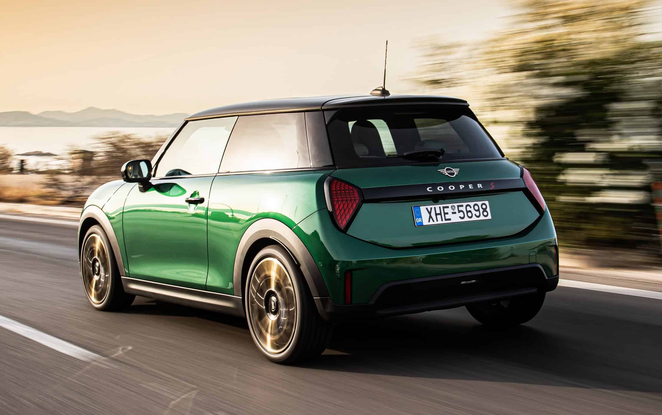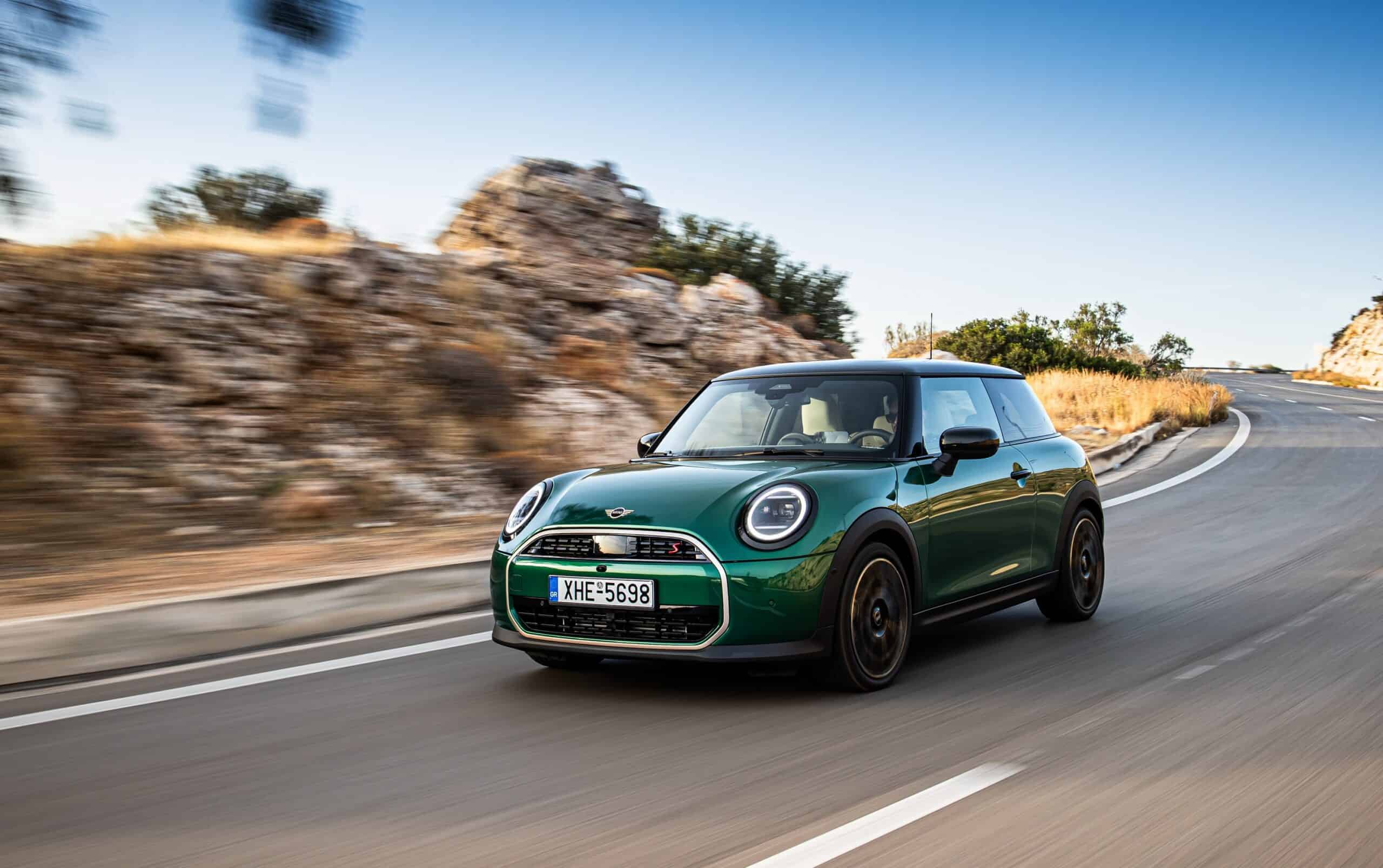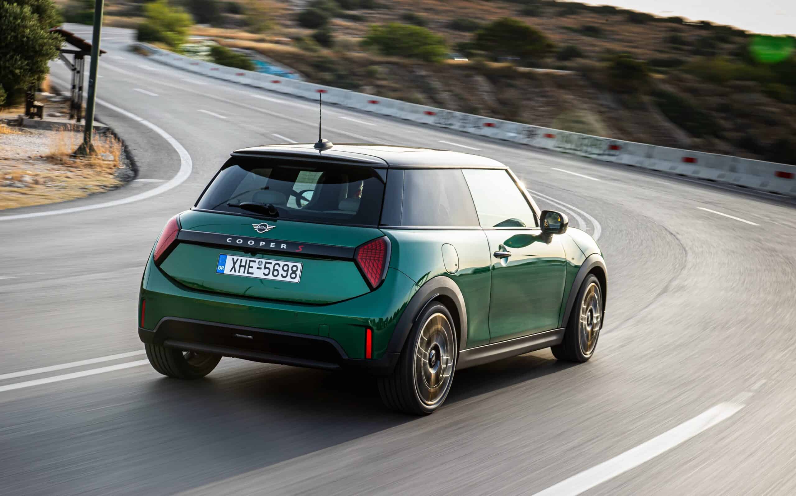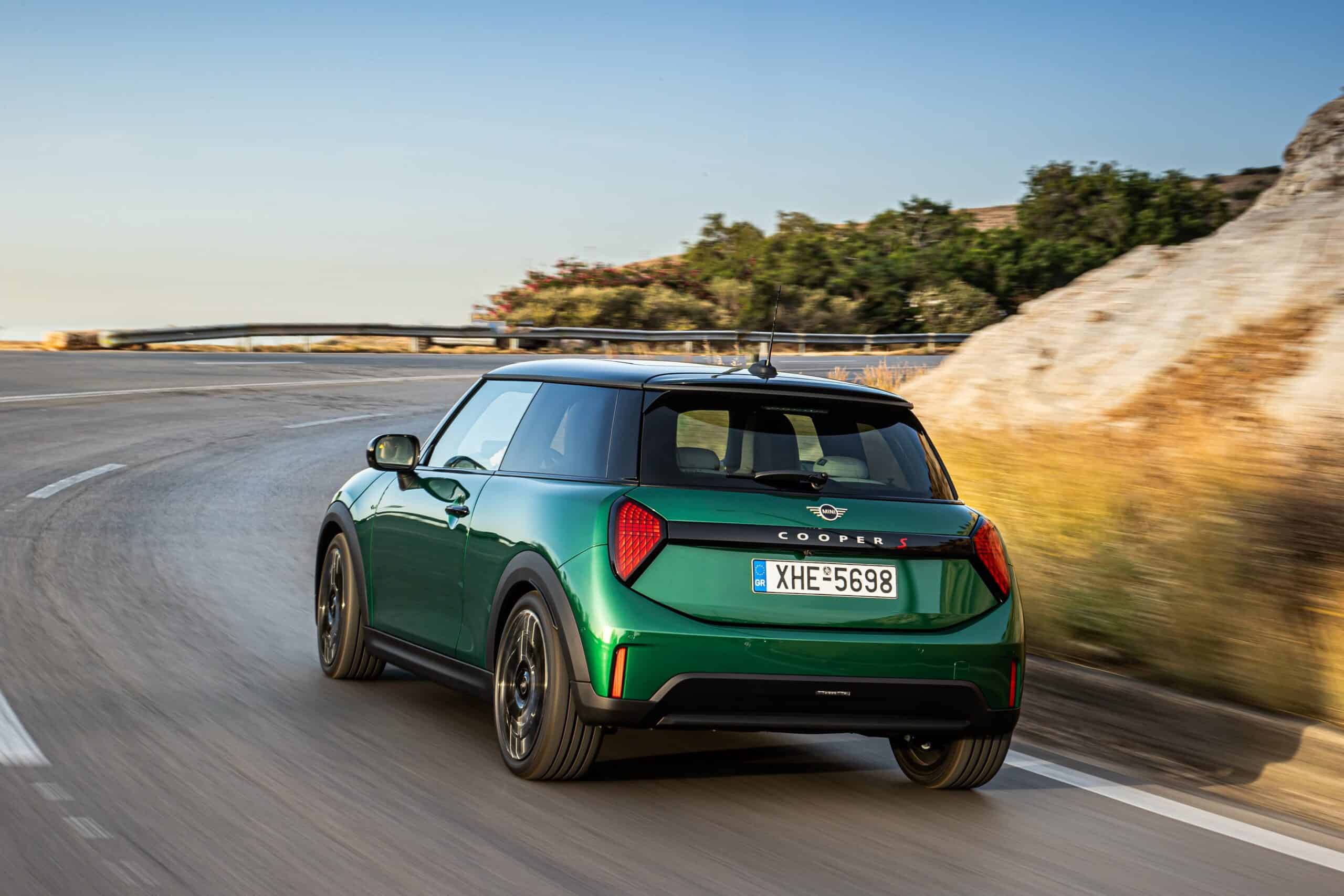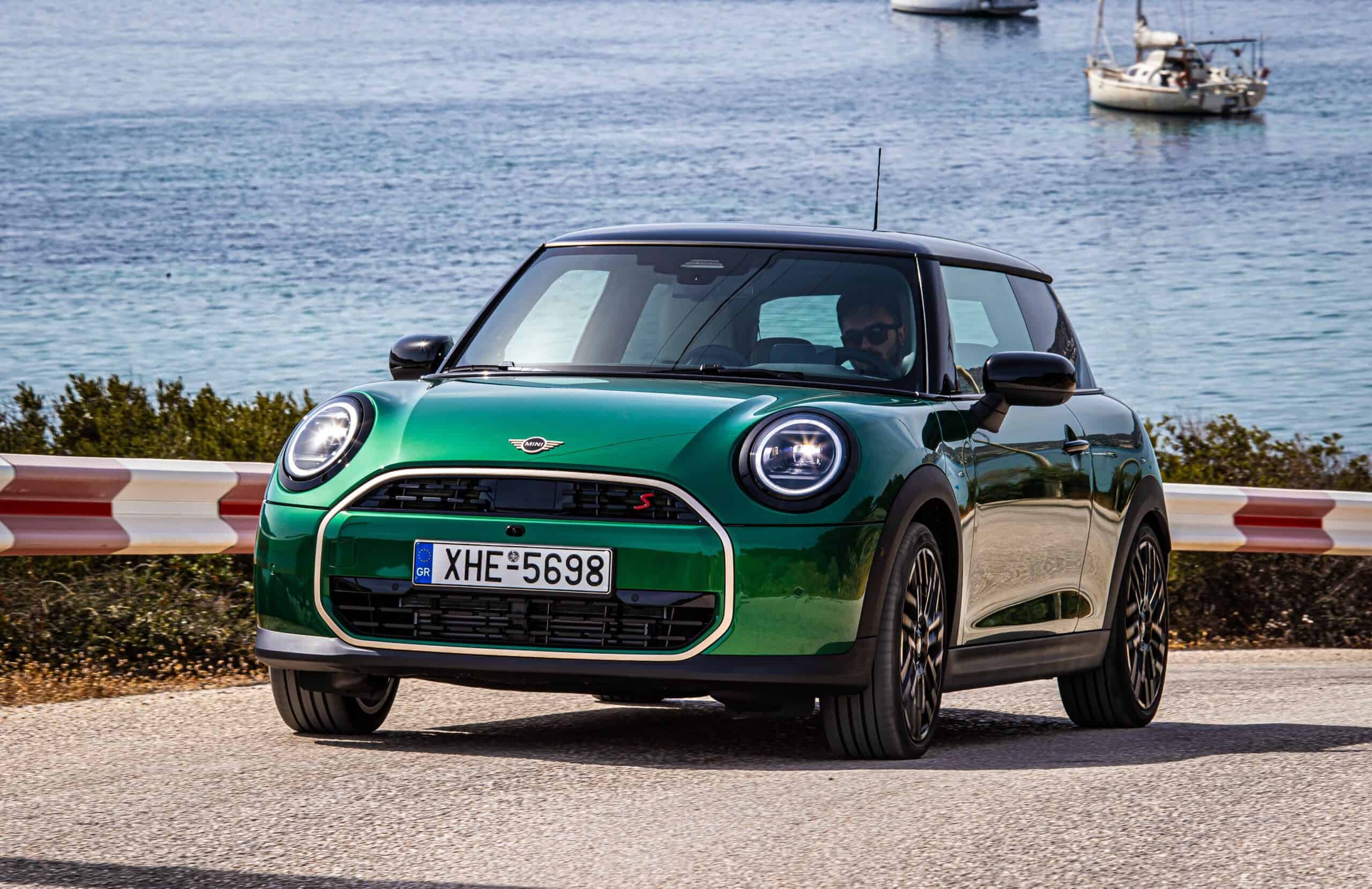 MINI has refreshed nearly its entire lineup for 2024, and that includes the 3-Door Hatch. Codenamed F66, the stylish city car touched down in Greece where it was photographed in Athens. Seen here is the hooter Cooper S painted in British Racing Green with a contrasting black roof. The diminutive hatchback rides on the optional 18-inch, two-tone wheels dubbed “Night Flash.”