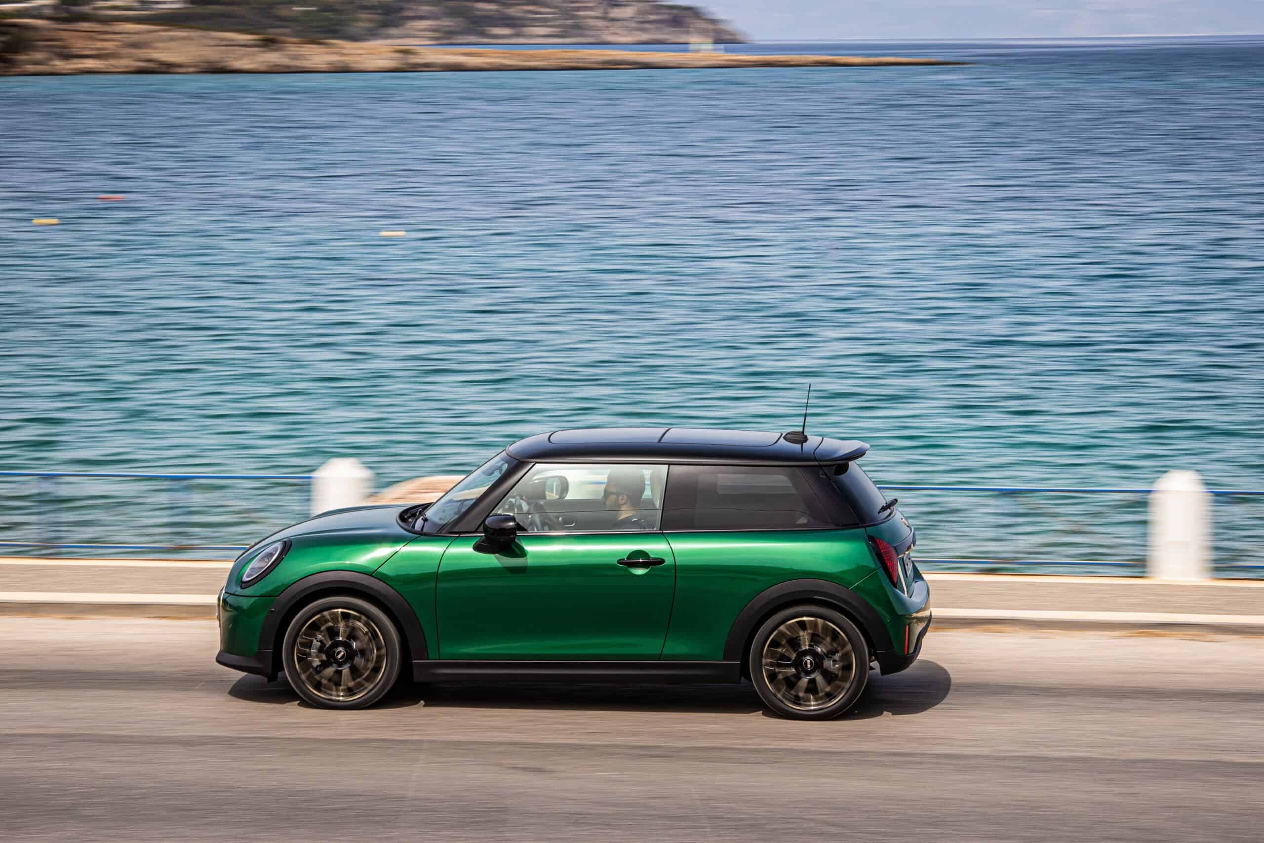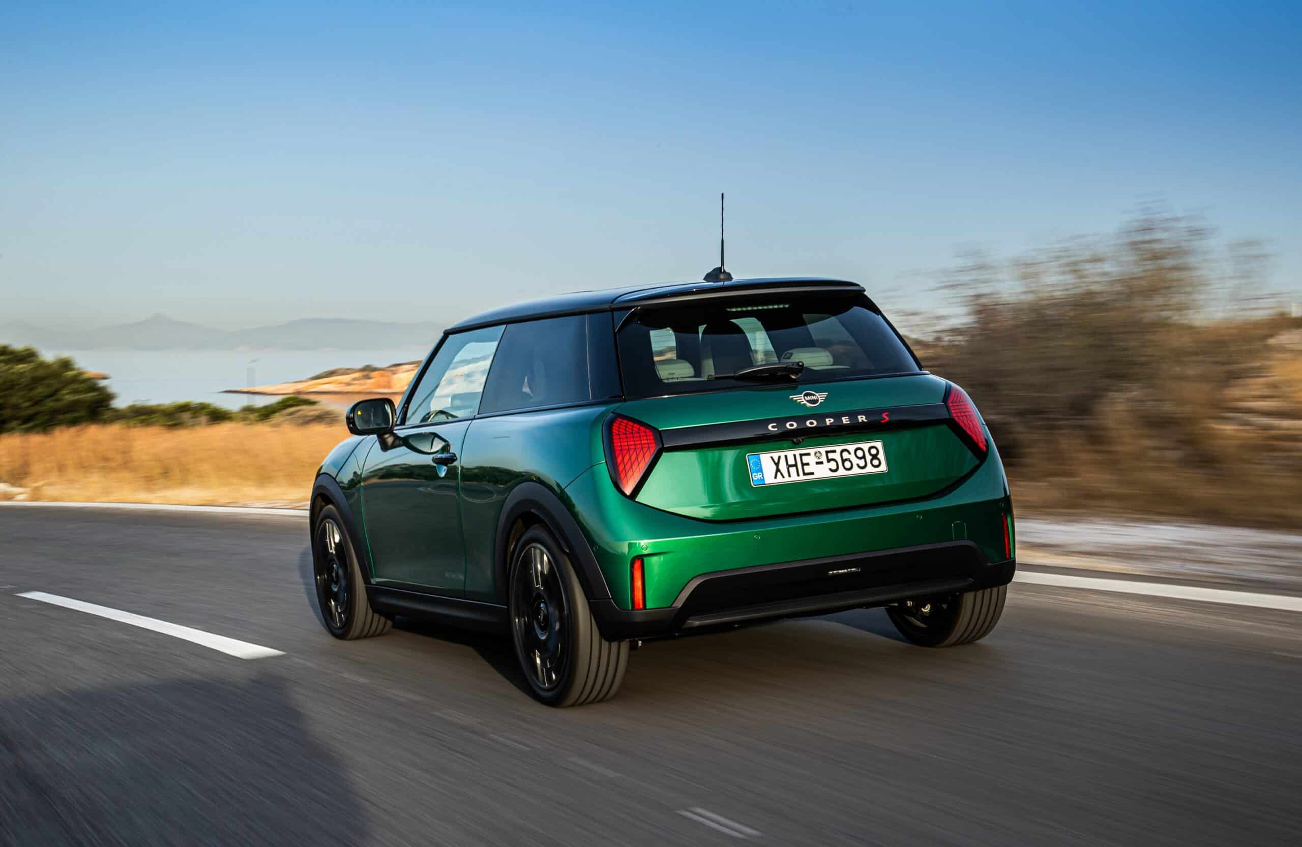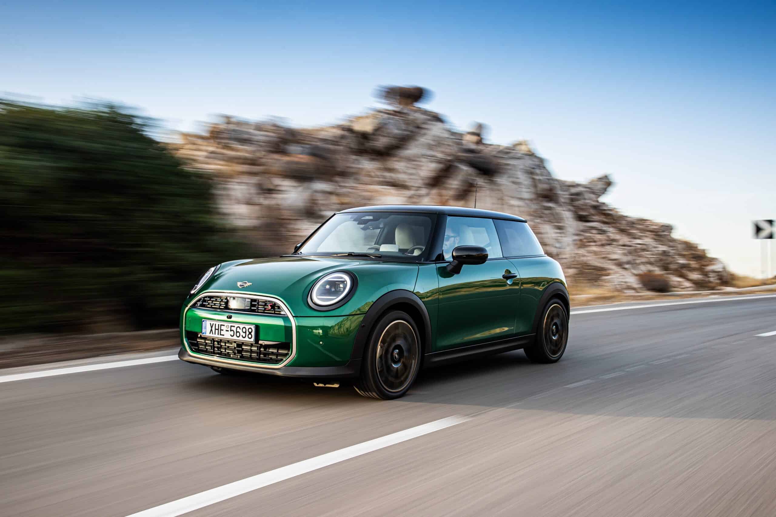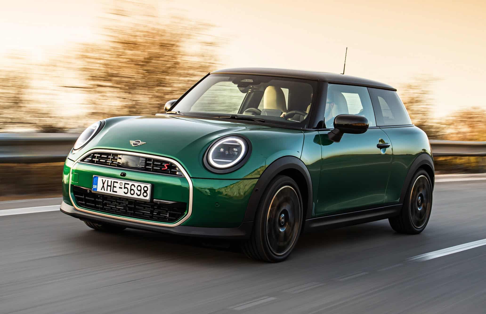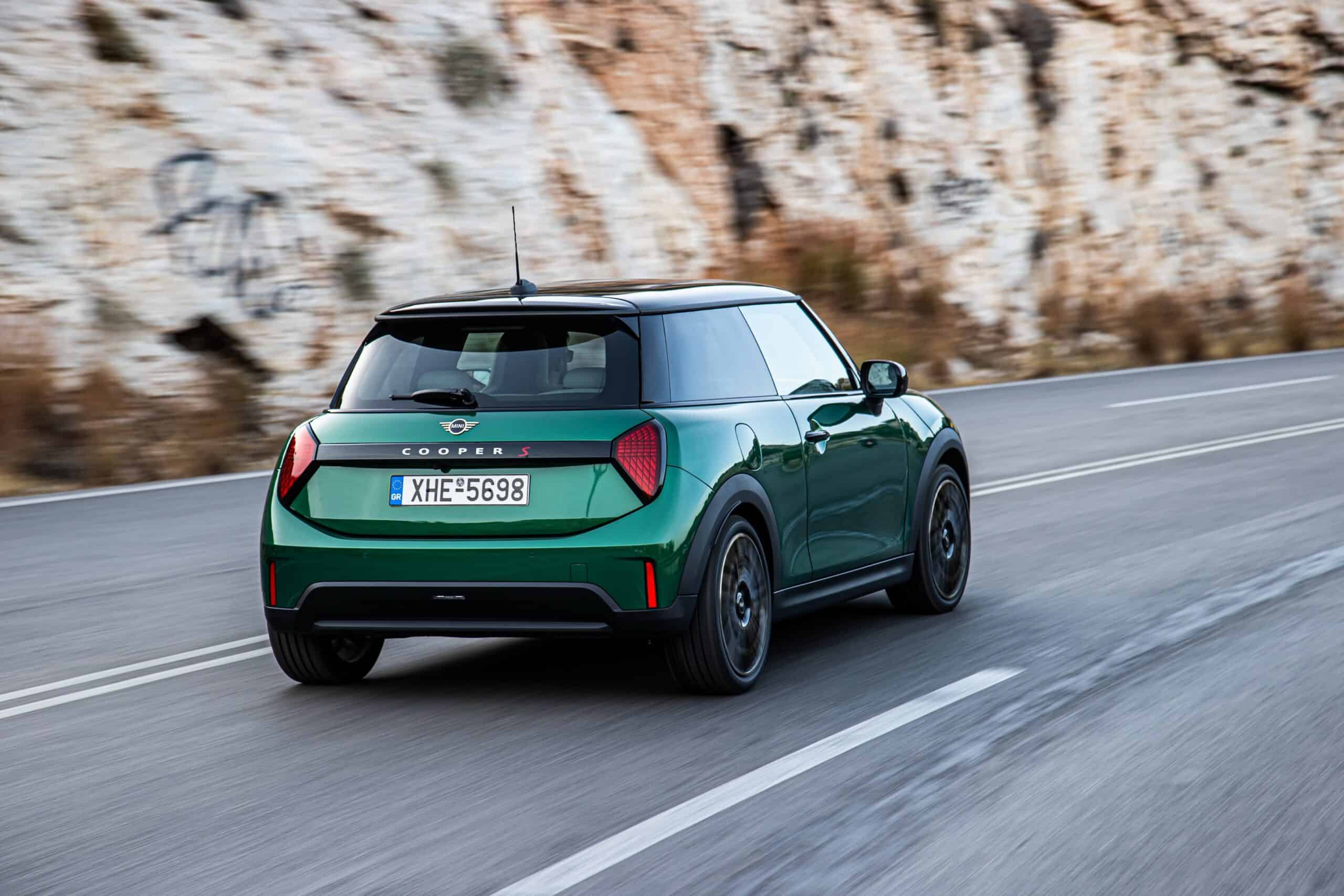 MINI has refreshed nearly its entire lineup for 2024, and that includes the 3-Door Hatch. Codenamed F66, the stylish city car touched down in Greece where it was photographed in Athens. Seen here is the hooter Cooper S painted in British Racing Green with a contrasting black roof. The diminutive hatchback rides on the optional 18-inch, two-tone wheels dubbed “Night Flash.”