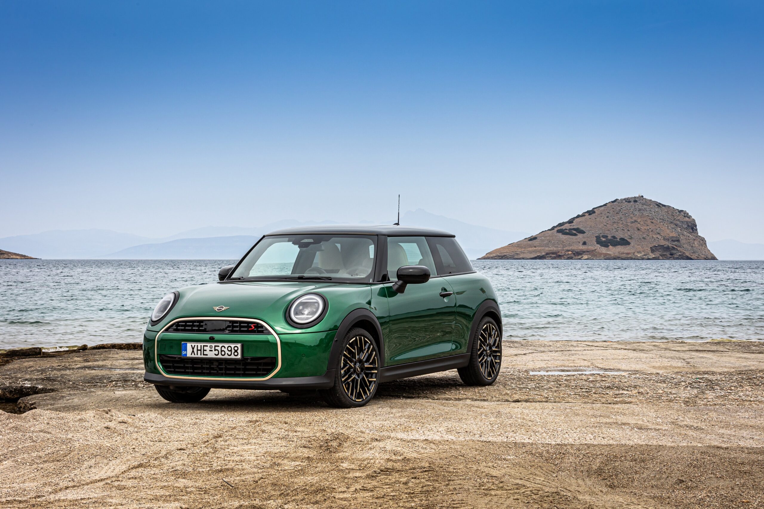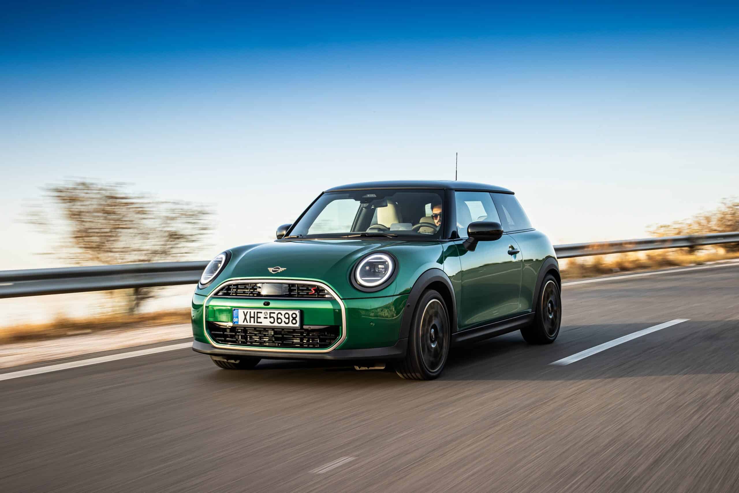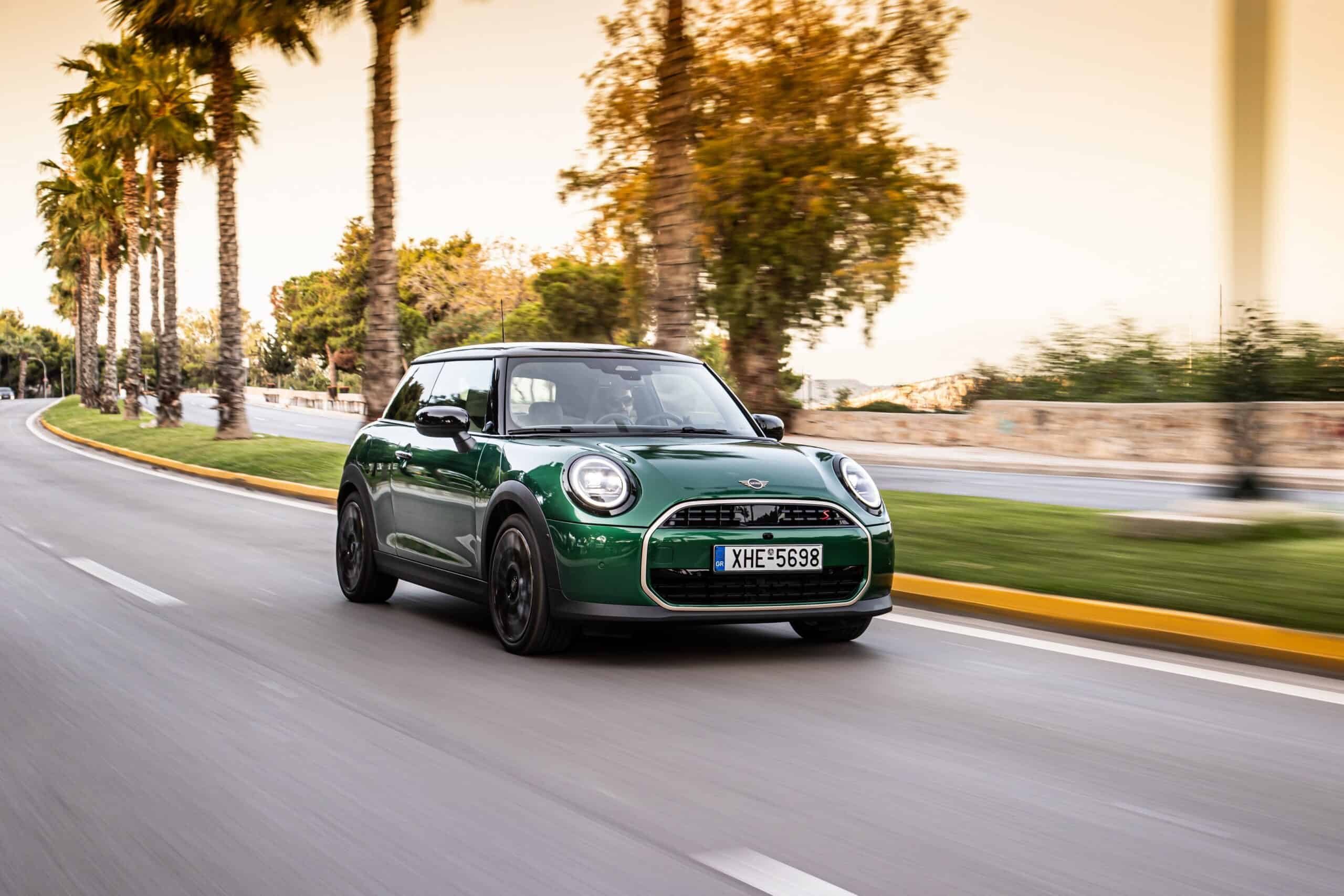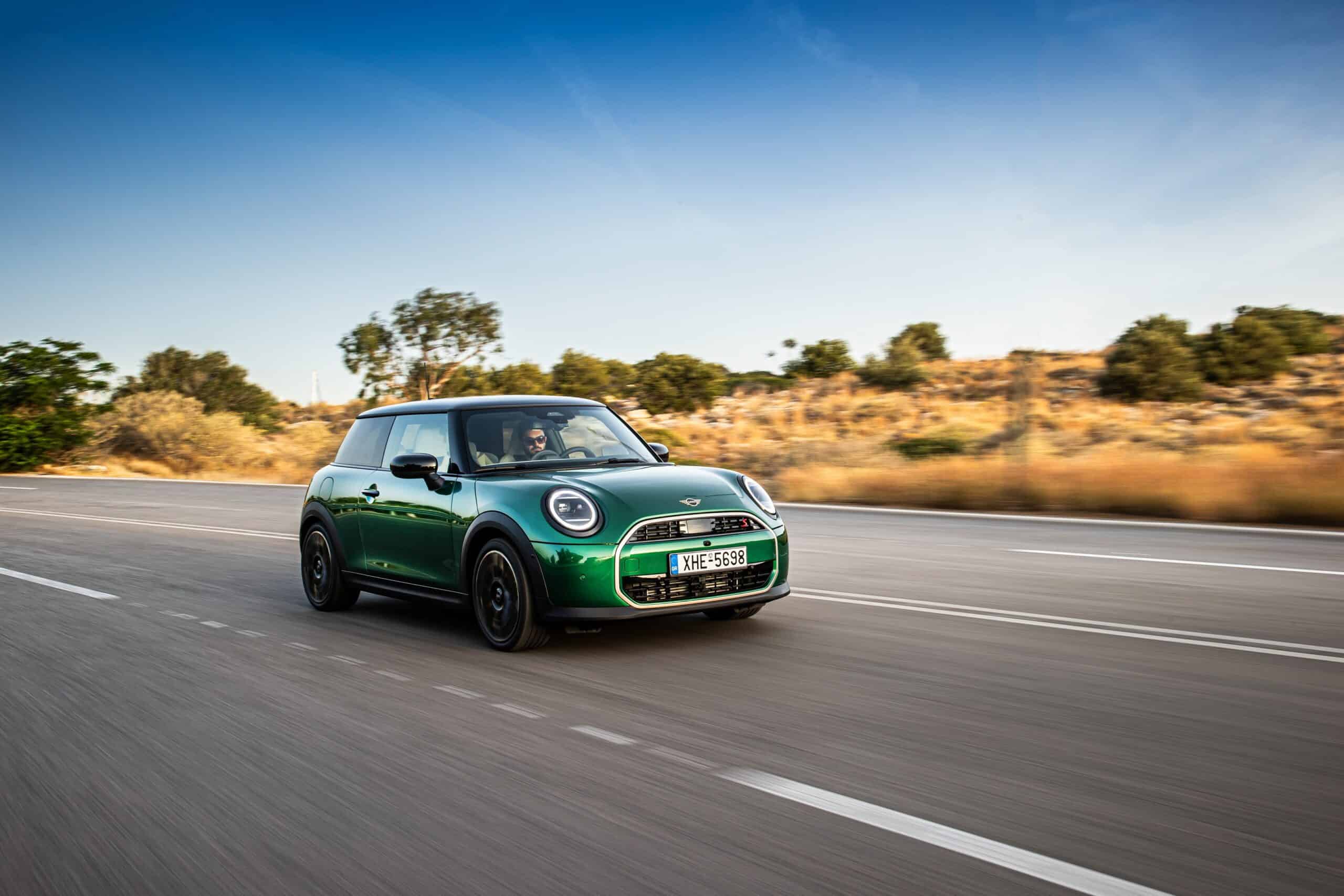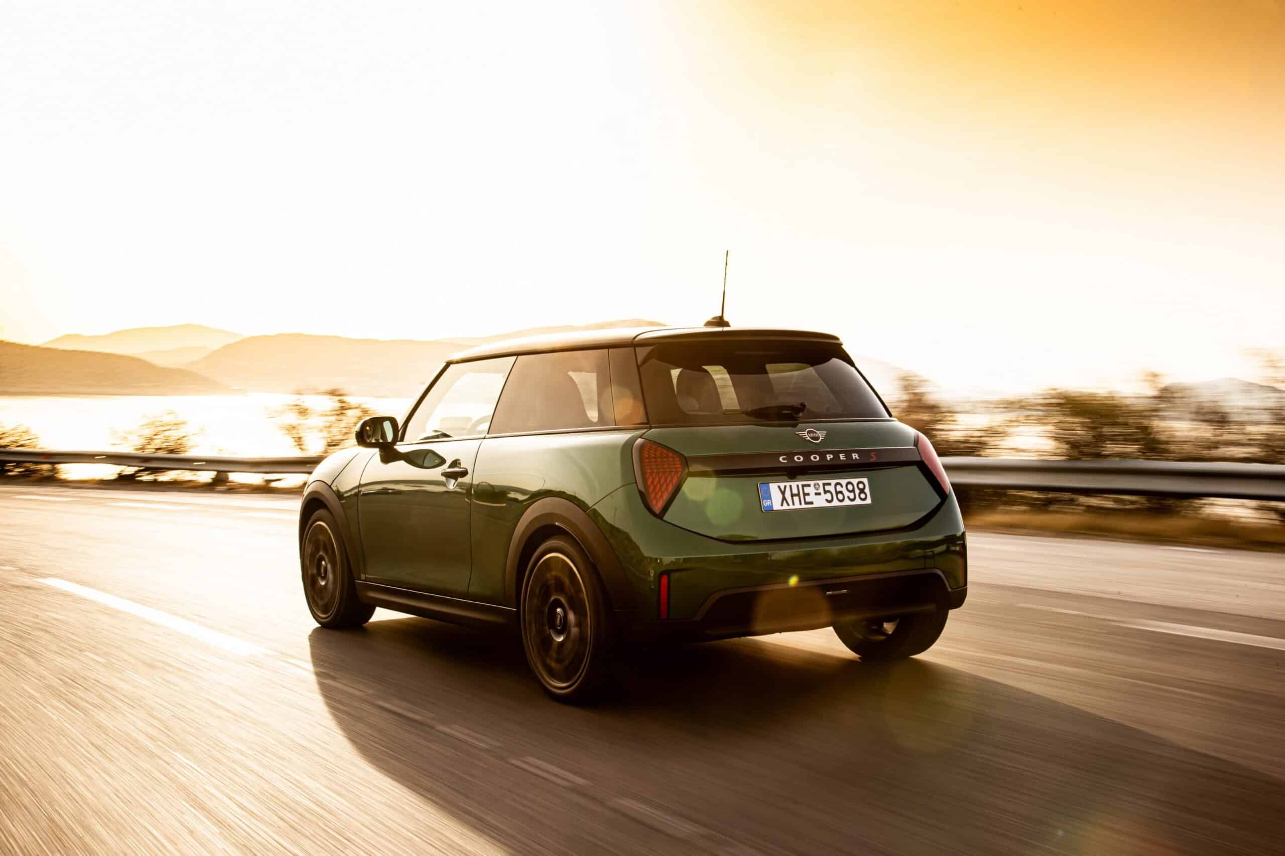 MINI has refreshed nearly its entire lineup for 2024, and that includes the 3-Door Hatch. Codenamed F66, the stylish city car touched down in Greece where it was photographed in Athens. Seen here is the hooter Cooper S painted in British Racing Green with a contrasting black roof. The diminutive hatchback rides on the optional 18-inch, two-tone wheels dubbed “Night Flash.”