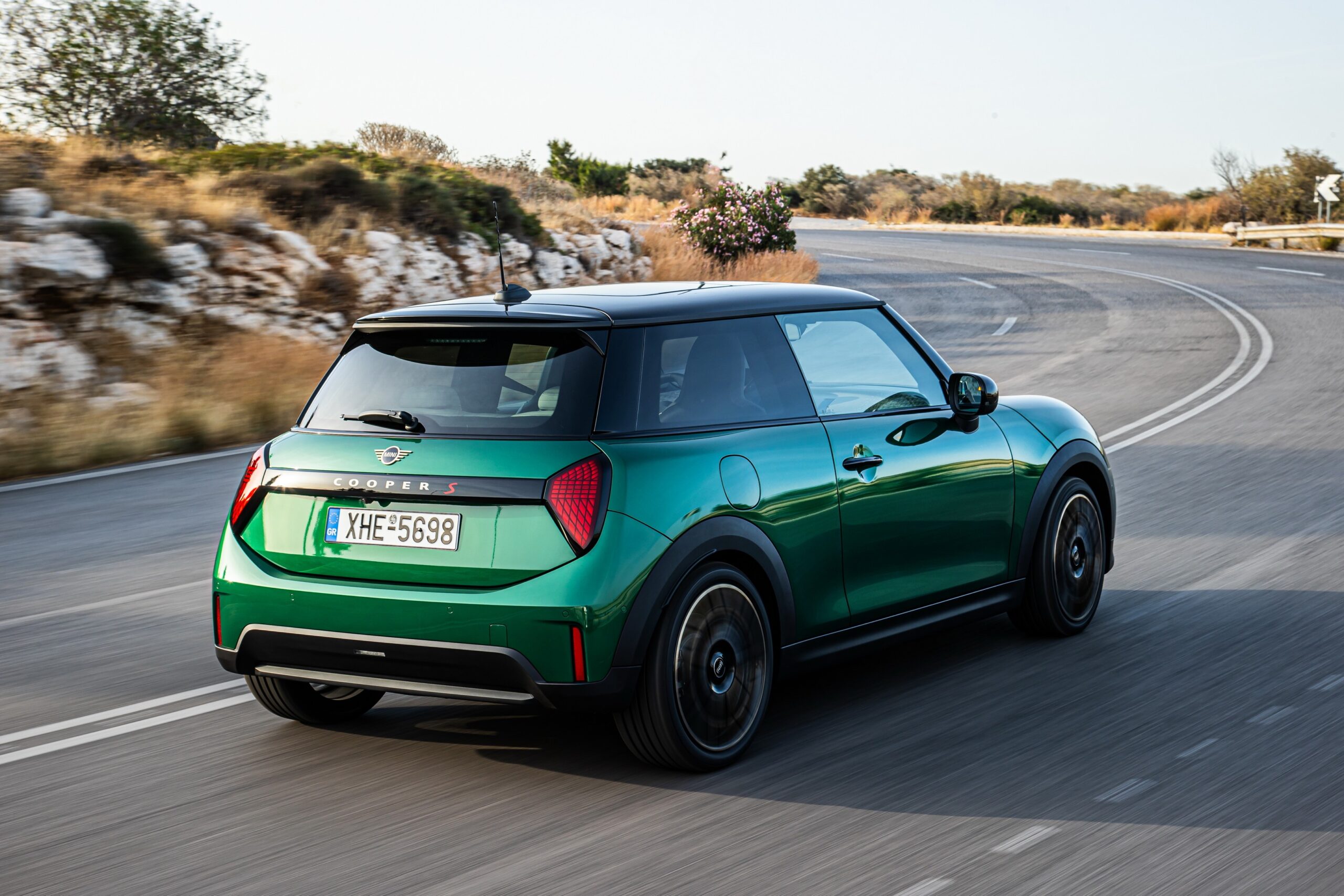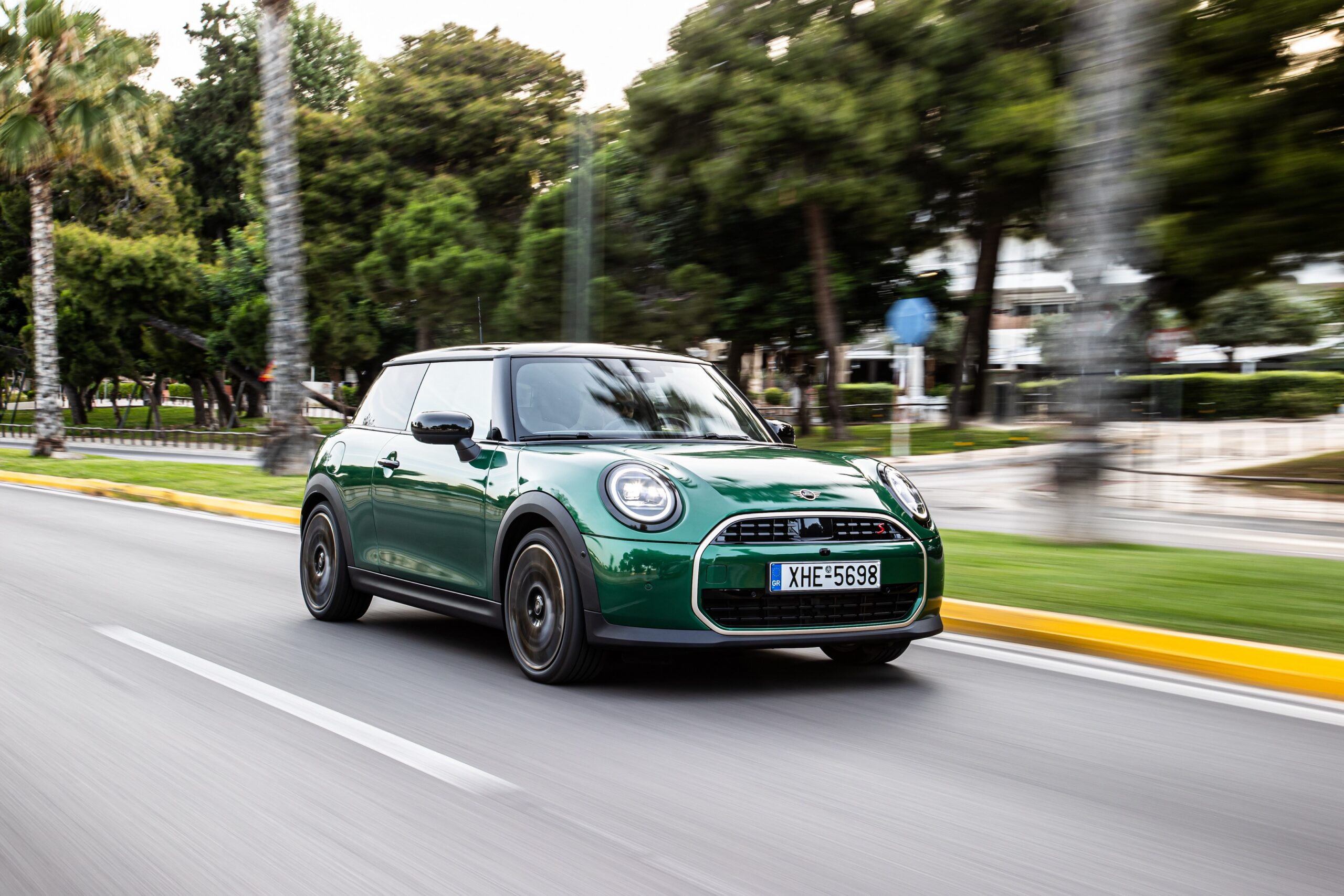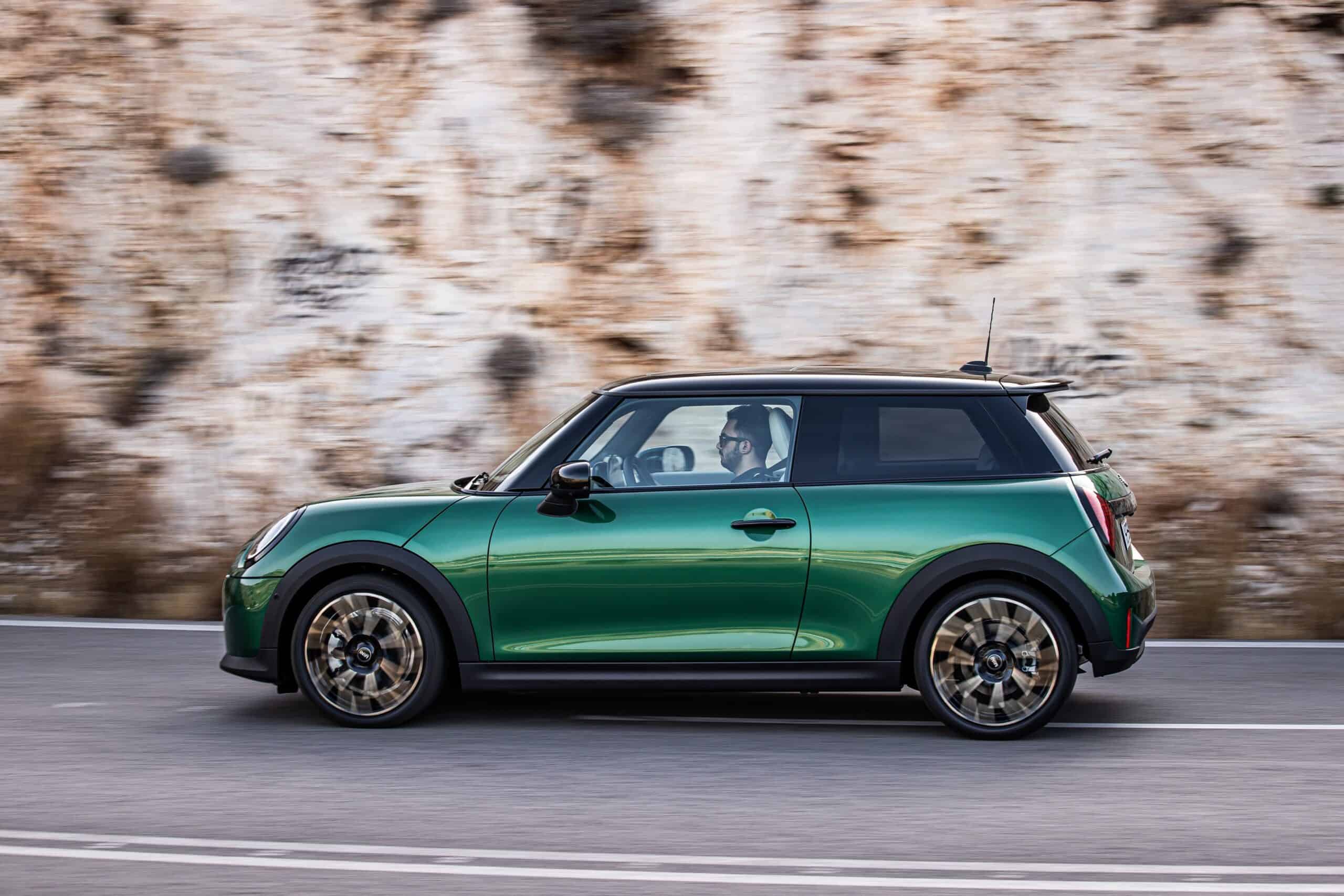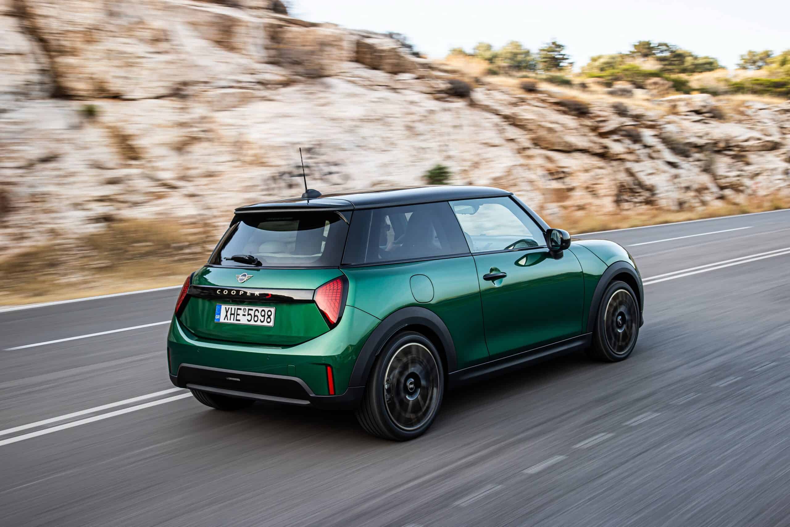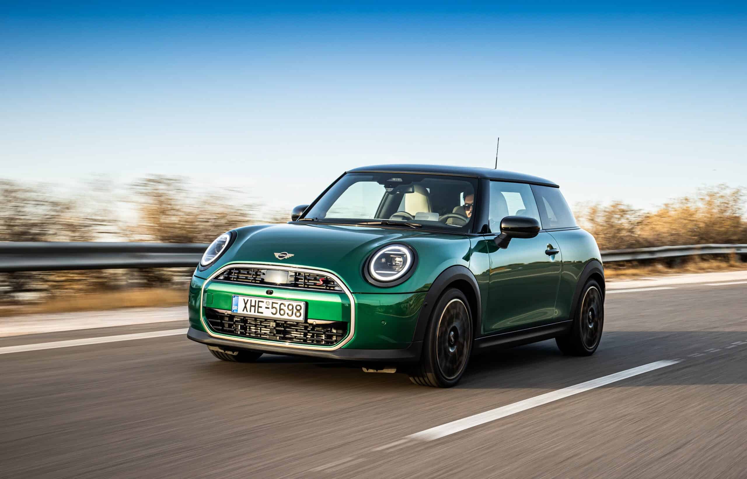 MINI has refreshed nearly its entire lineup for 2024, and that includes the 3-Door Hatch. Codenamed F66, the stylish city car touched down in Greece where it was photographed in Athens. Seen here is the hooter Cooper S painted in British Racing Green with a contrasting black roof. The diminutive hatchback rides on the optional 18-inch, two-tone wheels dubbed “Night Flash.”