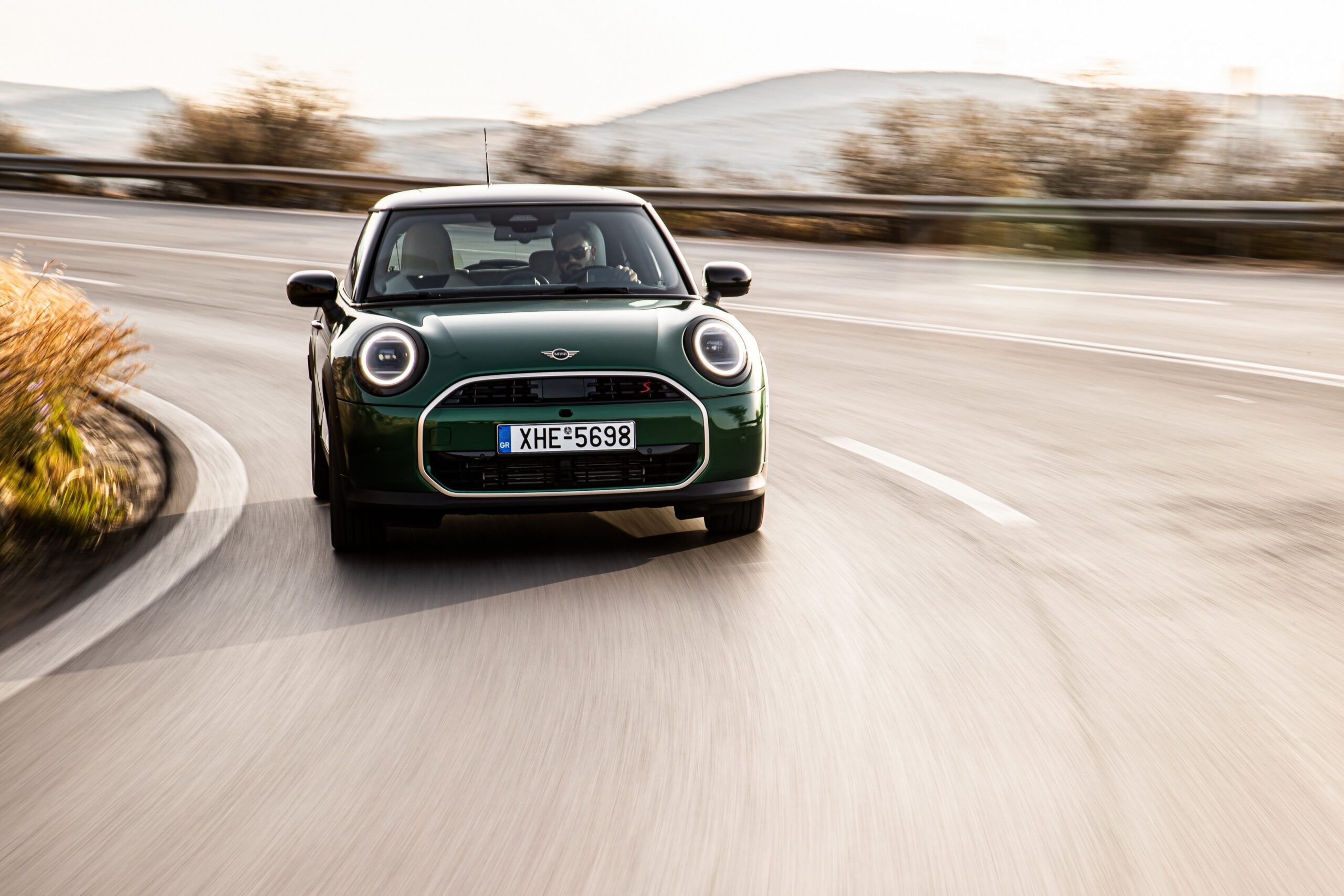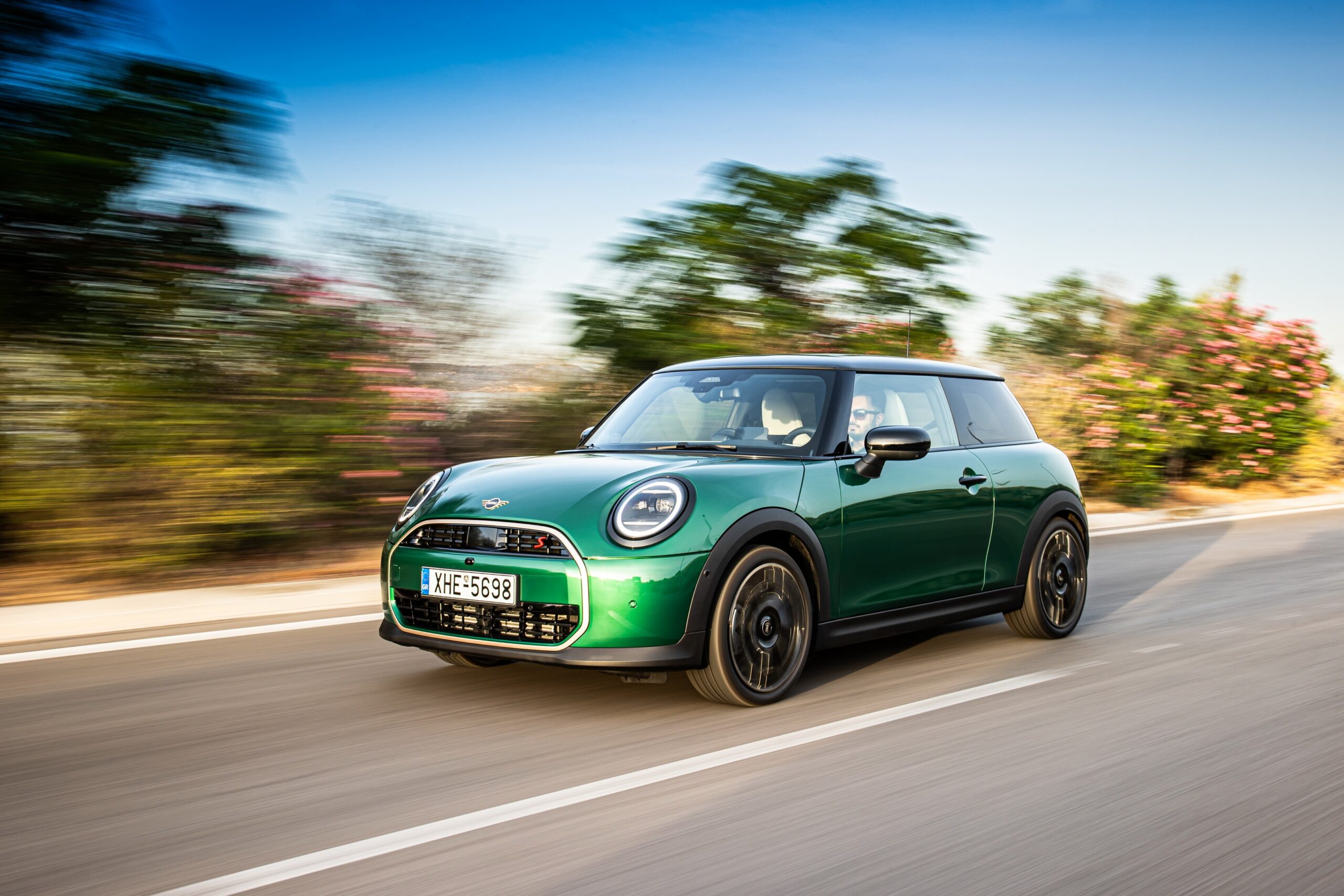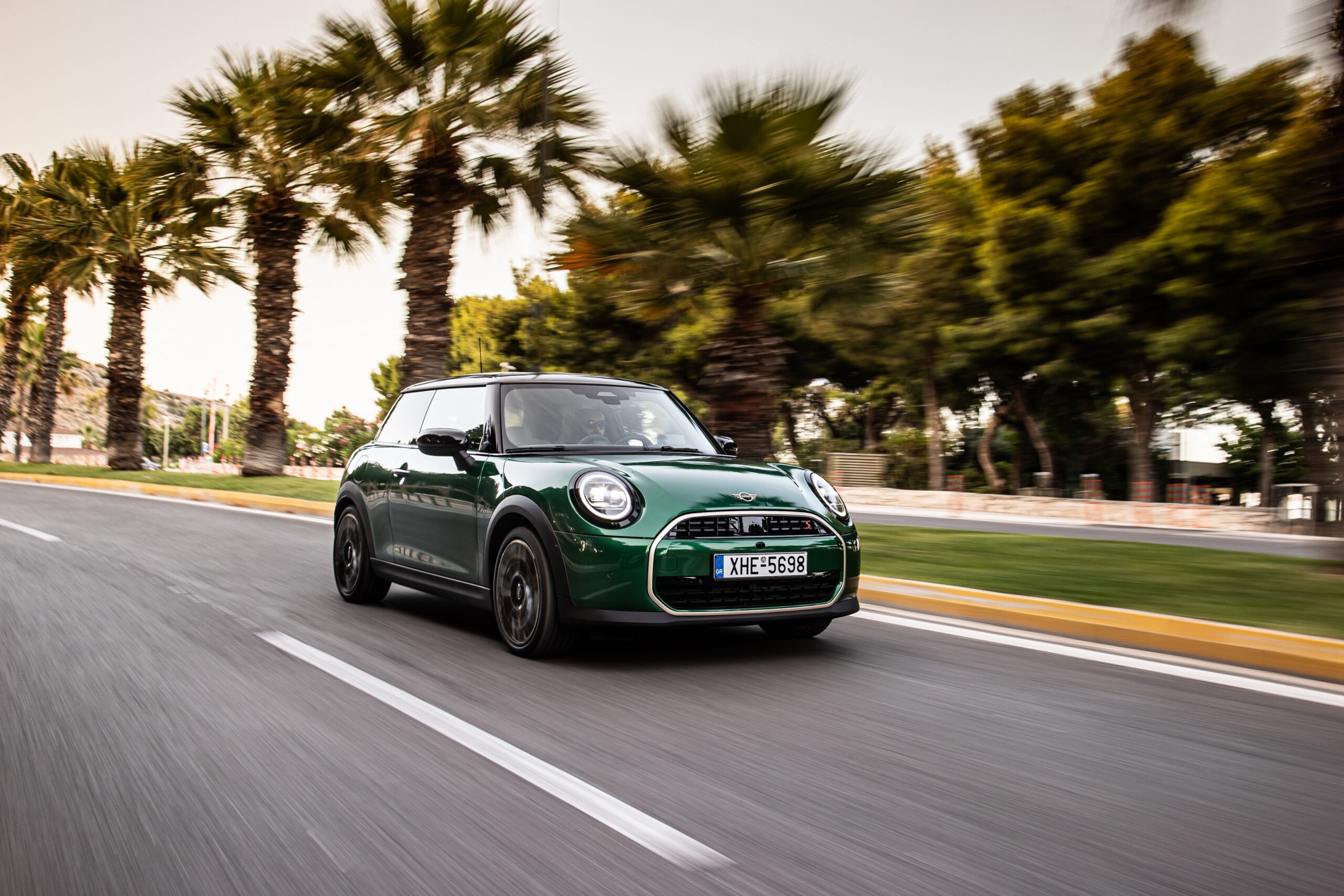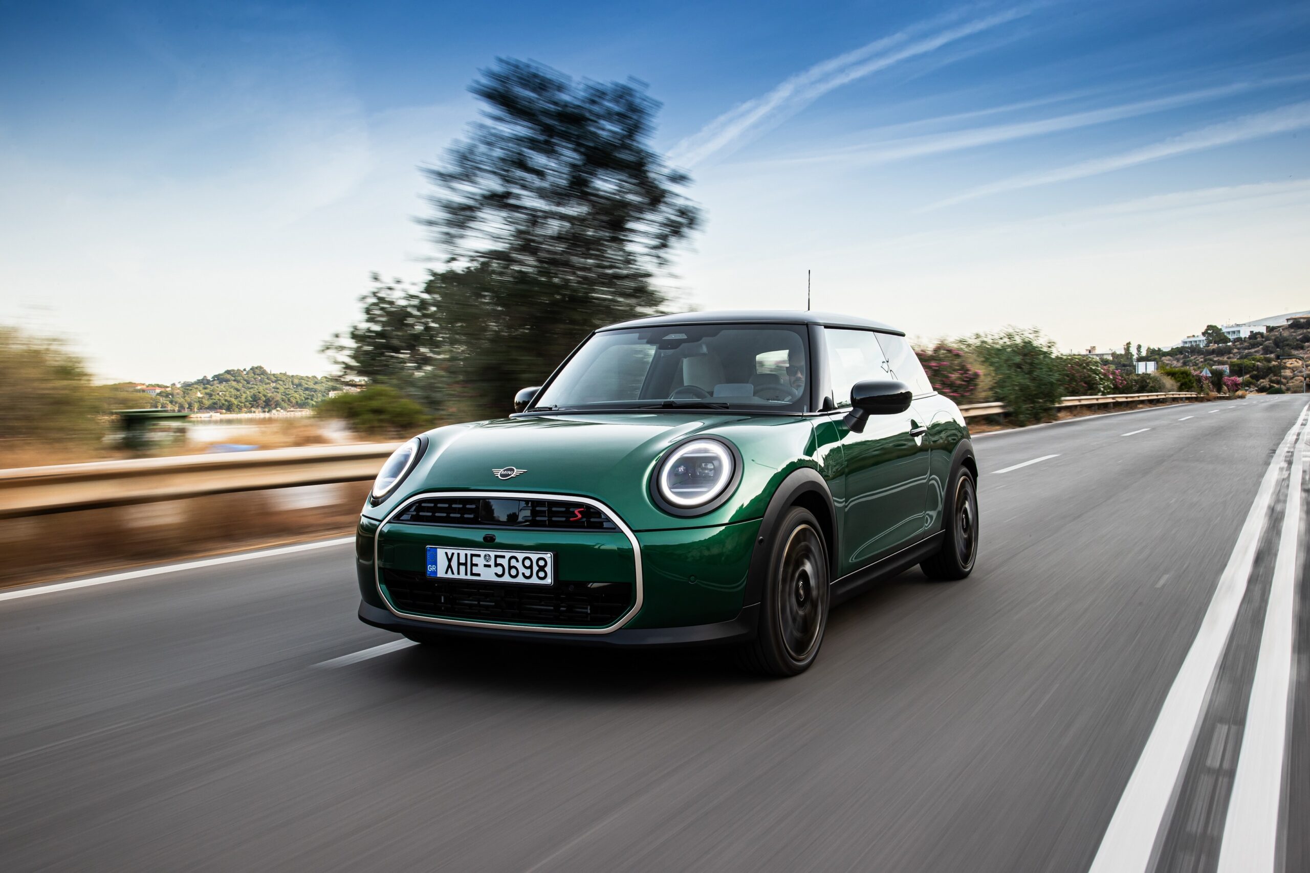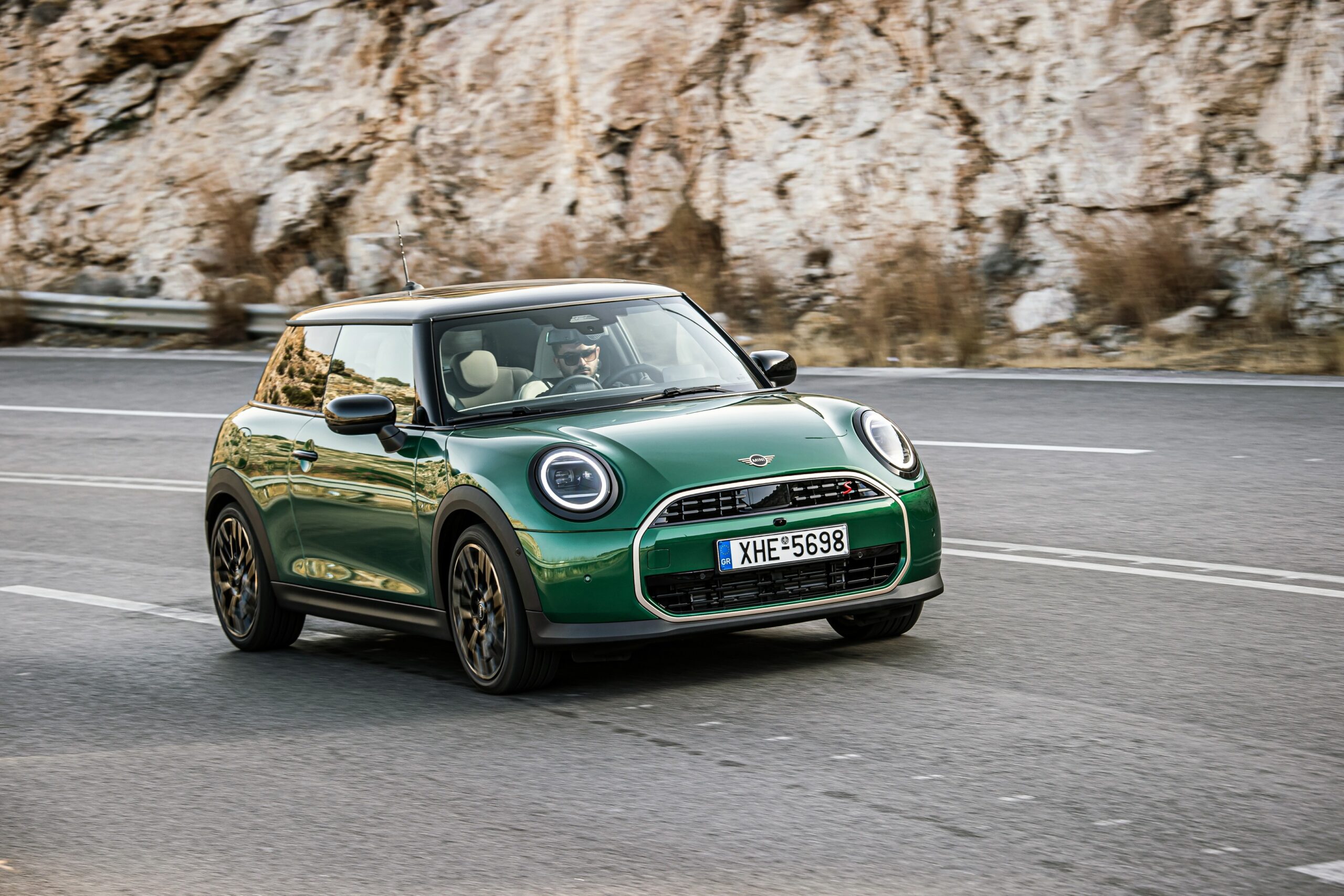 MINI has refreshed nearly its entire lineup for 2024, and that includes the 3-Door Hatch. Codenamed F66, the stylish city car touched down in Greece where it was photographed in Athens. Seen here is the hooter Cooper S painted in British Racing Green with a contrasting black roof. The diminutive hatchback rides on the optional 18-inch, two-tone wheels dubbed “Night Flash.”