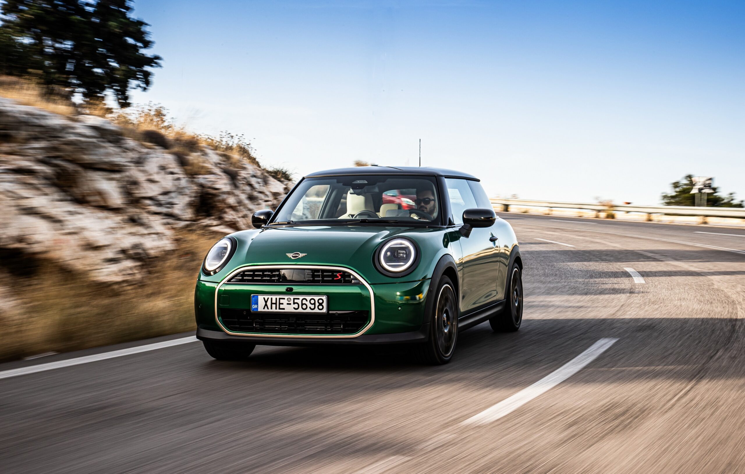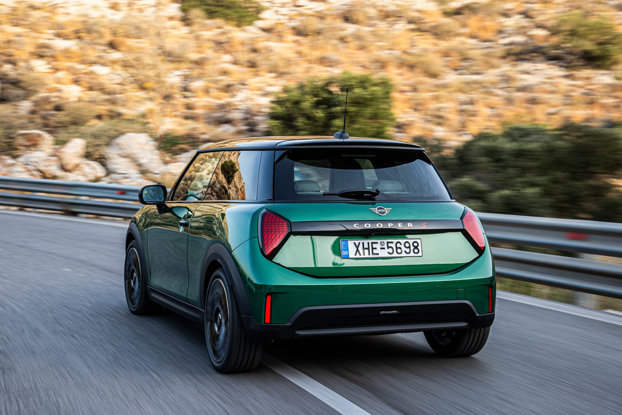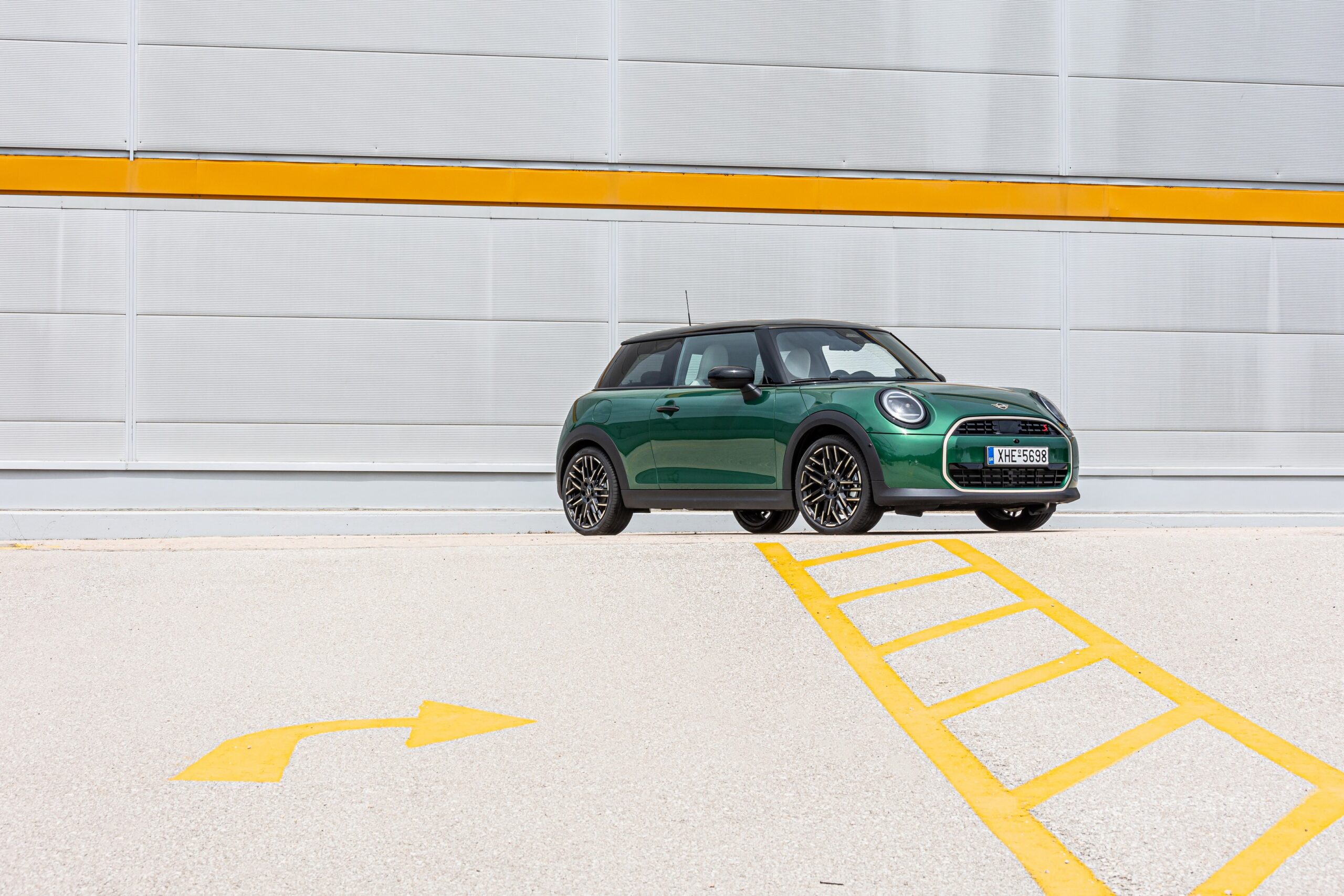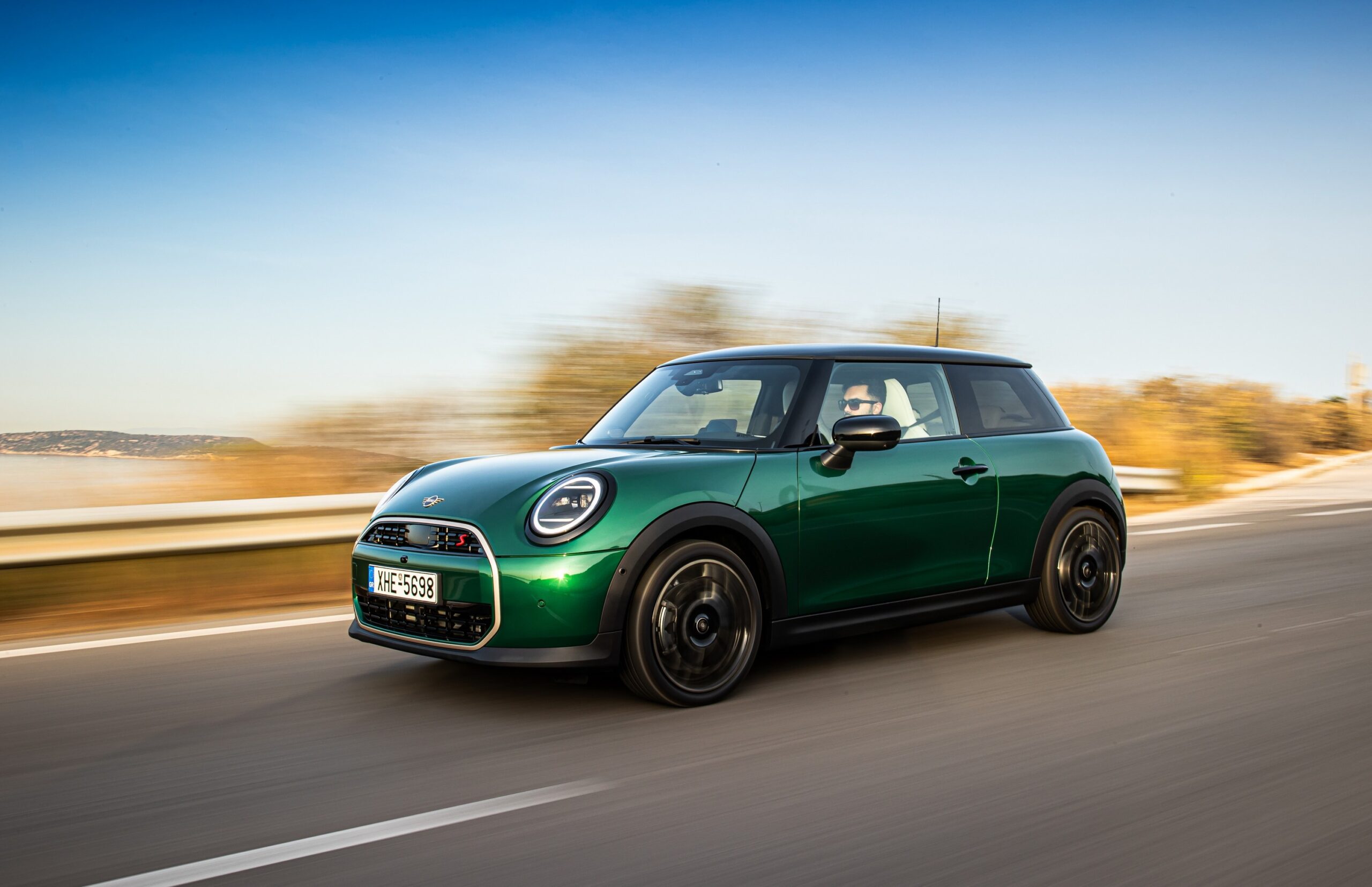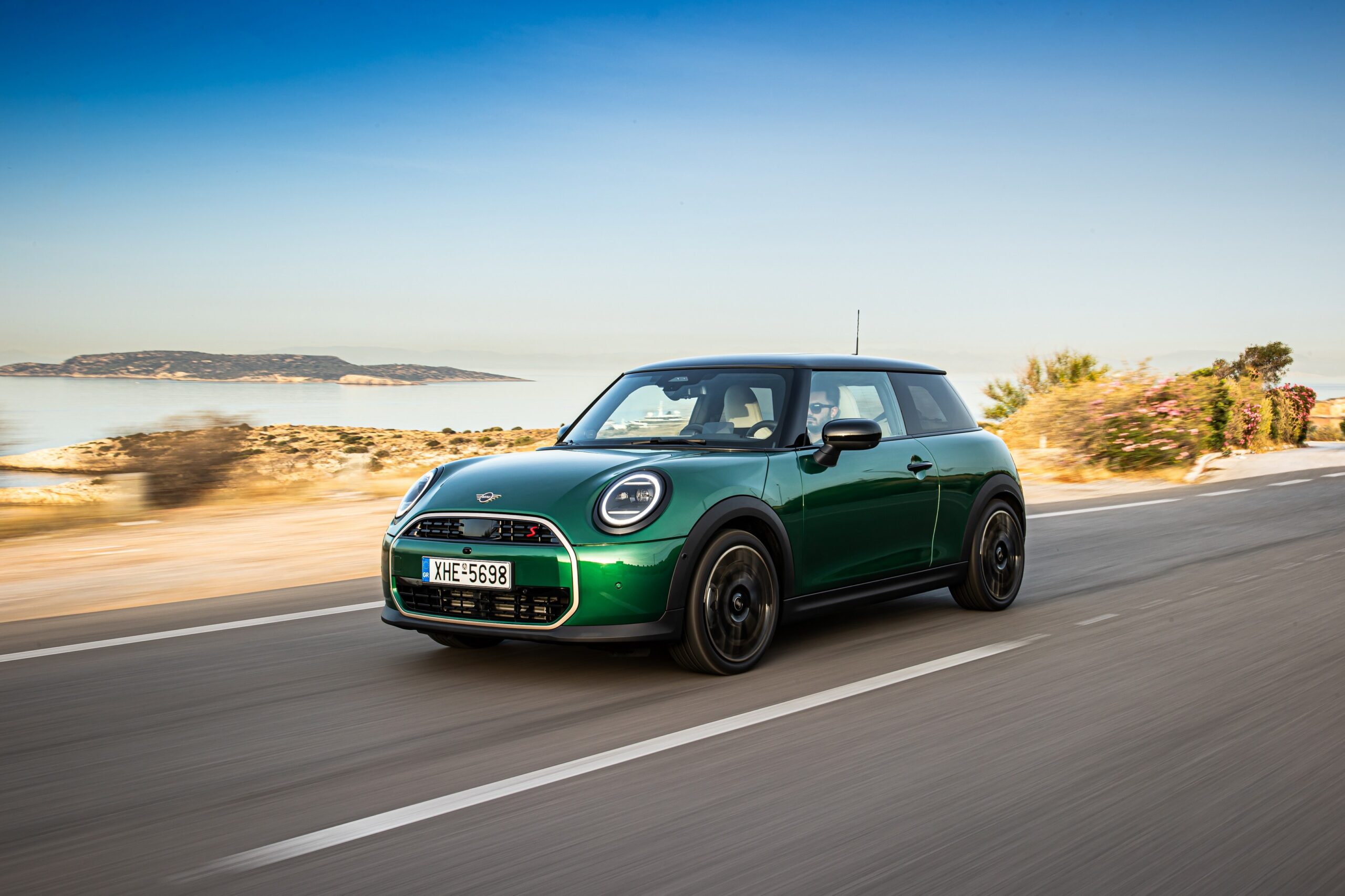 MINI has refreshed nearly its entire lineup for 2024, and that includes the 3-Door Hatch. Codenamed F66, the stylish city car touched down in Greece where it was photographed in Athens. Seen here is the hooter Cooper S painted in British Racing Green with a contrasting black roof. The diminutive hatchback rides on the optional 18-inch, two-tone wheels dubbed “Night Flash.”