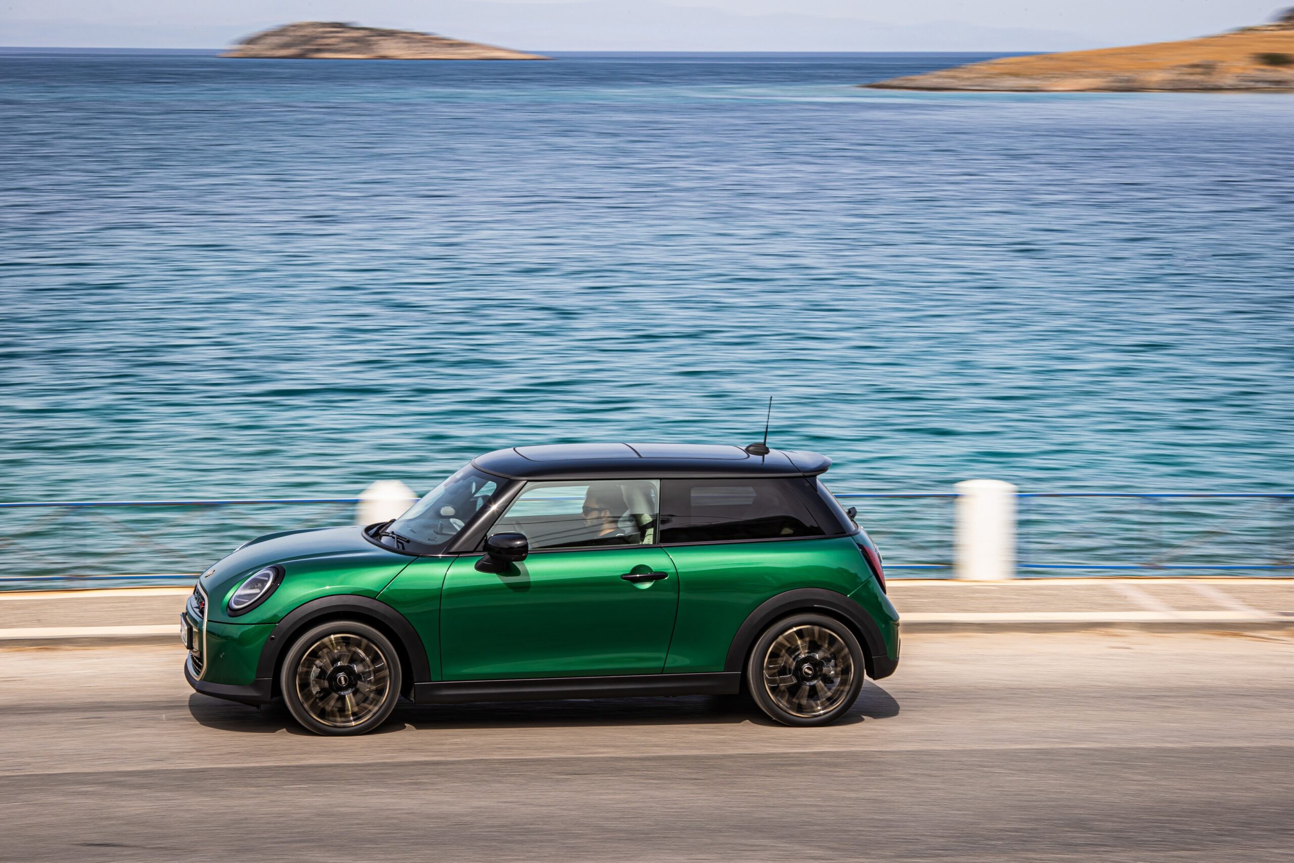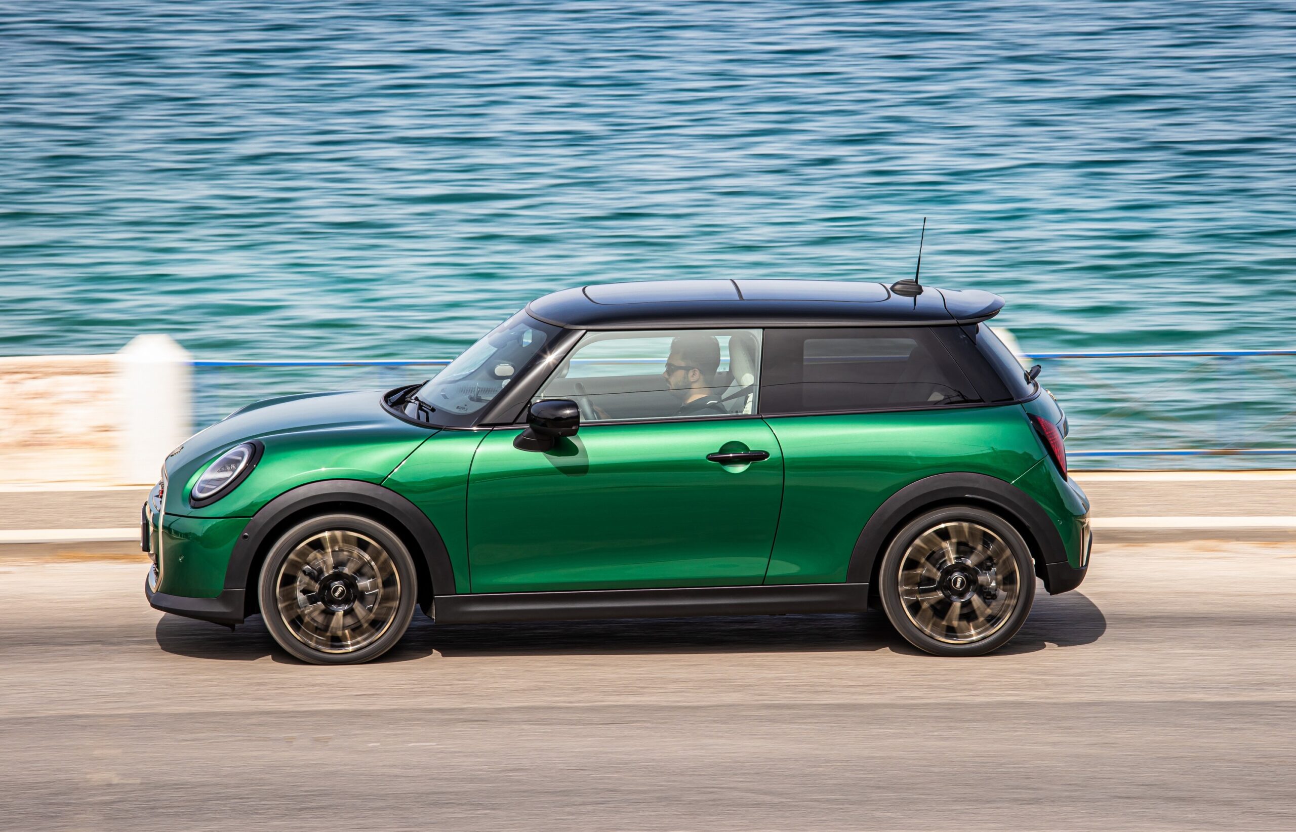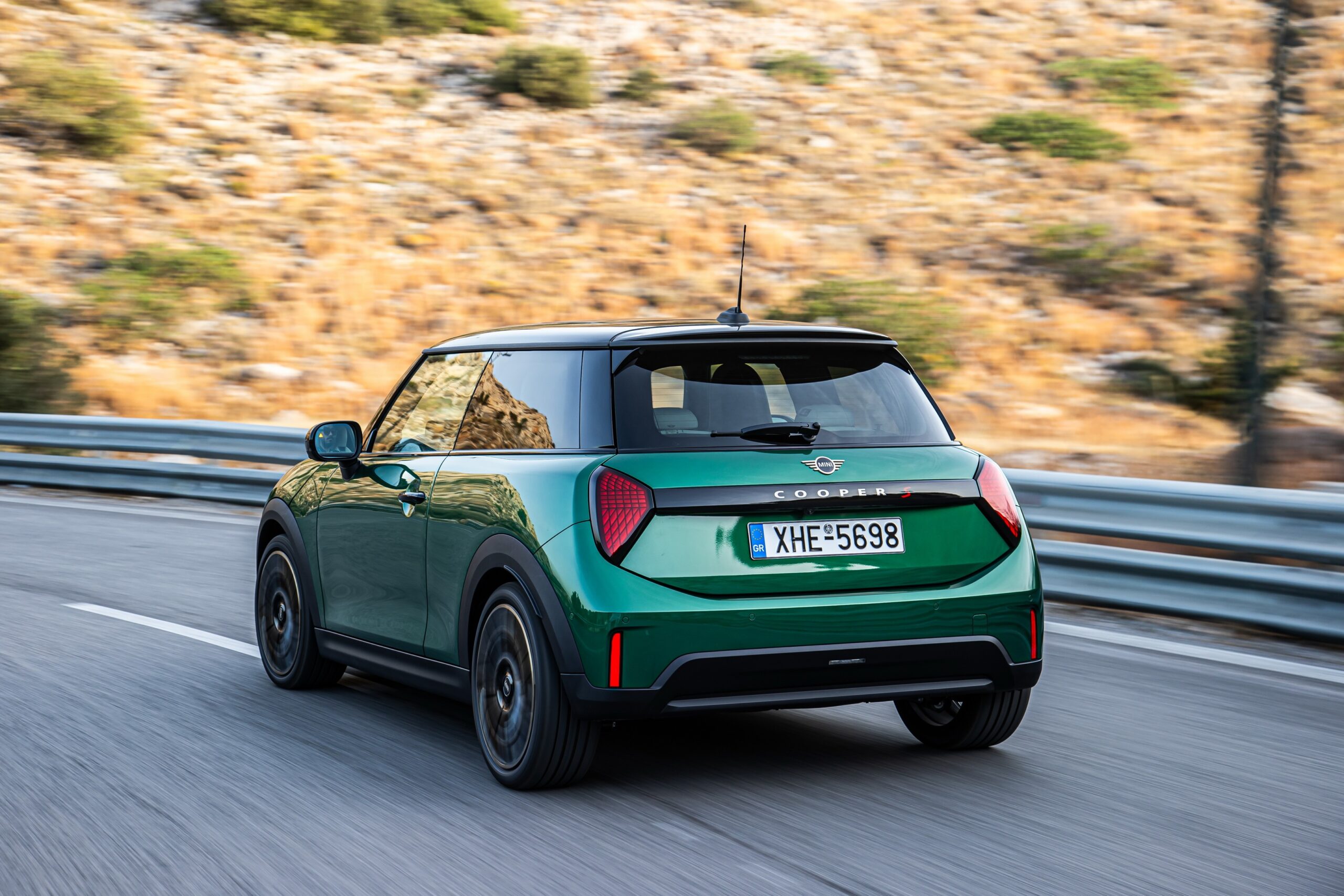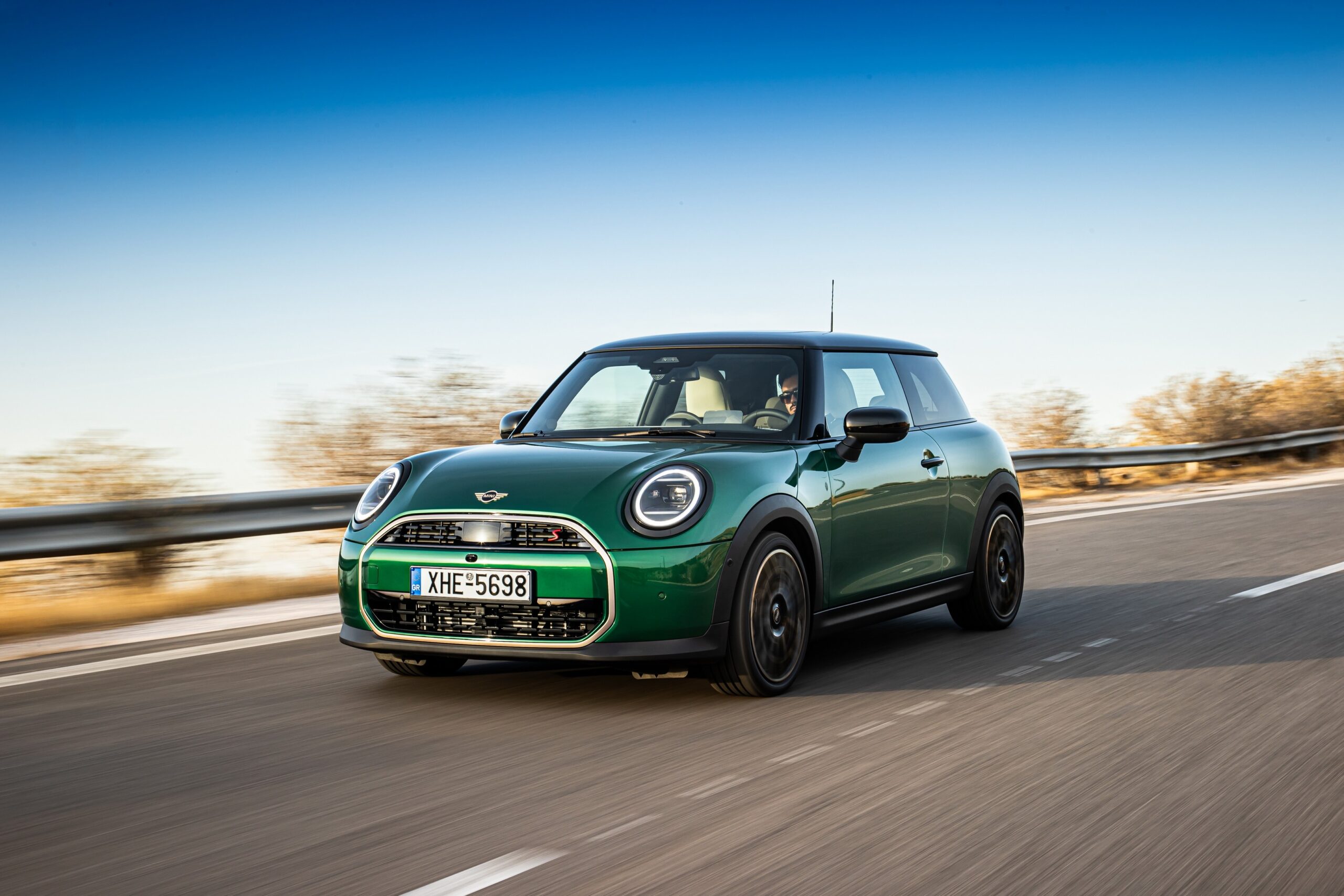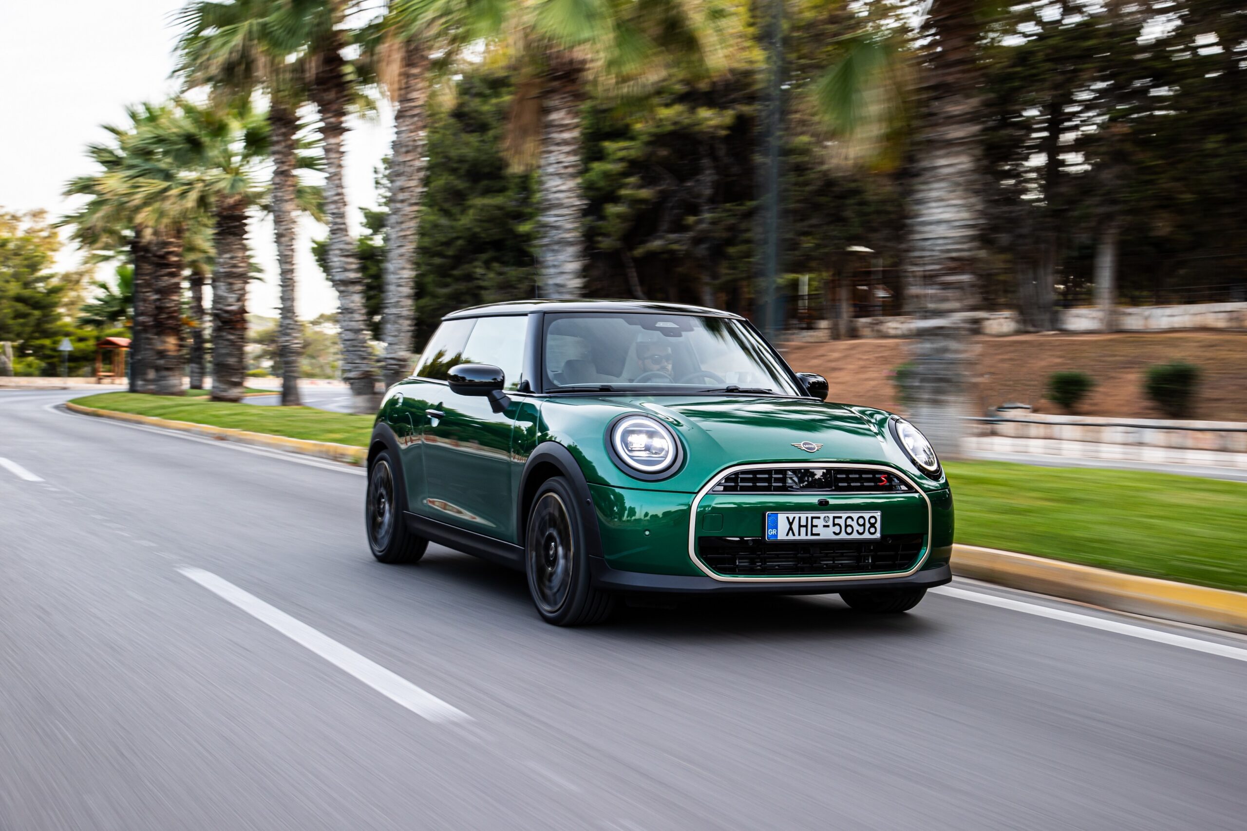MINI has refreshed nearly its entire lineup for 2024, and that includes the 3-Door Hatch. Codenamed F66, the stylish city car touched down in Greece where it was photographed in Athens. Seen here is the hooter Cooper S painted in British Racing Green with a contrasting black roof. The diminutive hatchback rides on the optional 18-inch, two-tone wheels dubbed “Night Flash.”