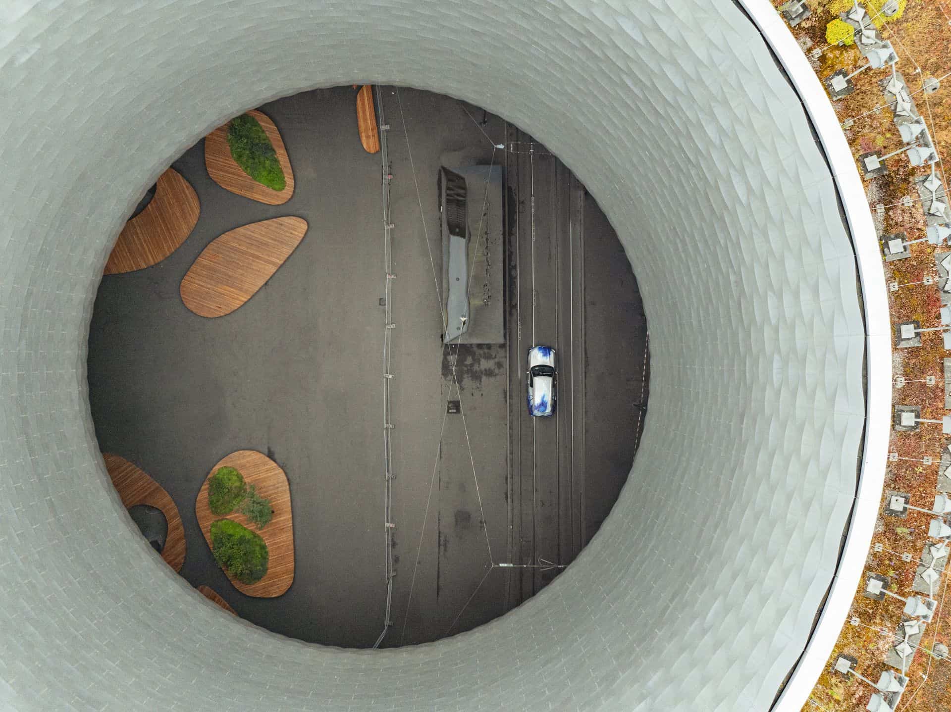 The artist says she’s been fascinated by the hydrogen fuel cell technology that powers the car, enabling it to intake oxygen while in motion and combine it with hydrogen to generate energy. This method not only produces energy but also emits water as a byproduct. Devlin finds a compelling parallel between her stage design work and this project. She frequently uses models and miniatures, captivated by the interplay between humans and automobiles.