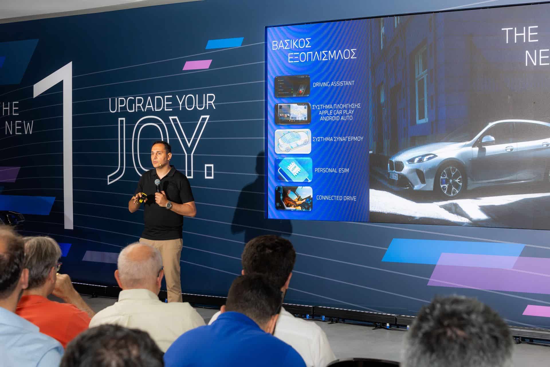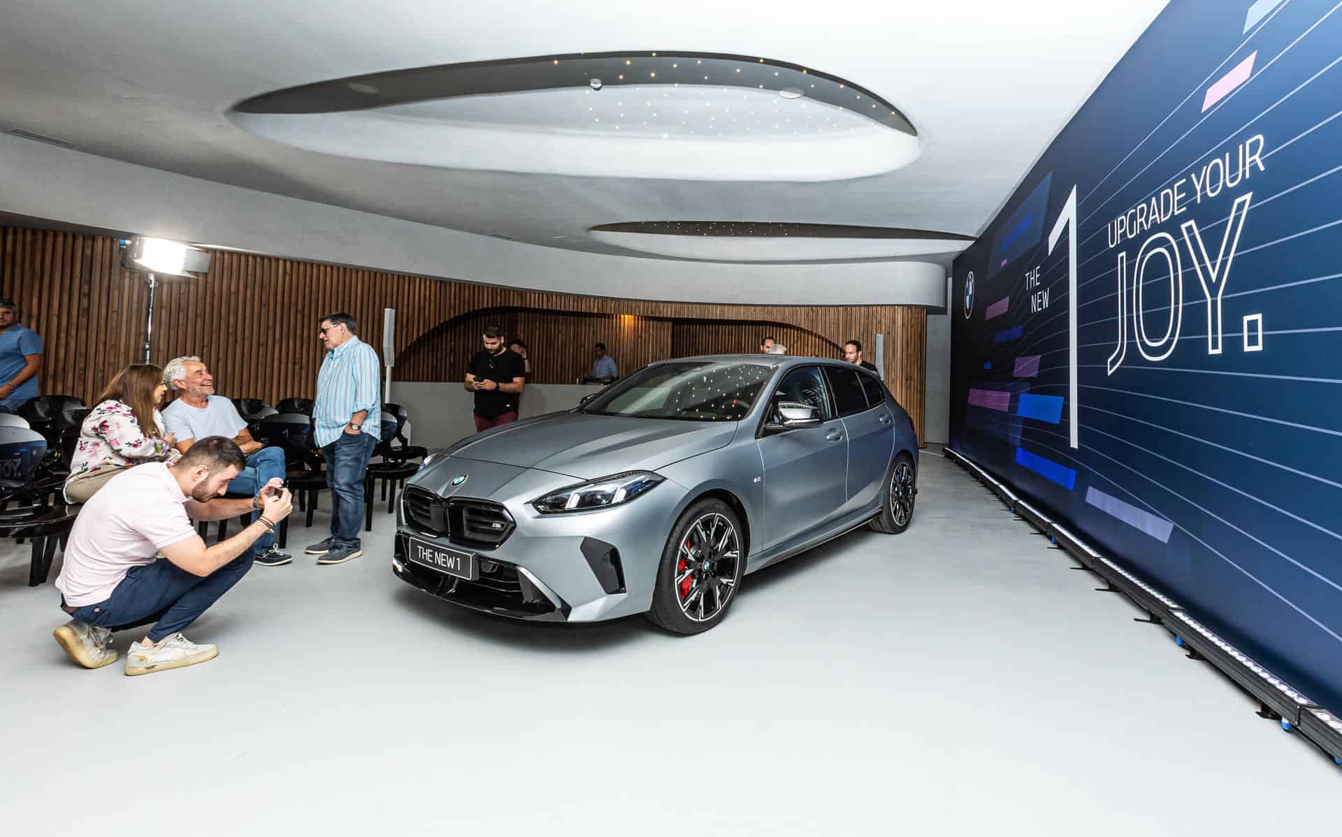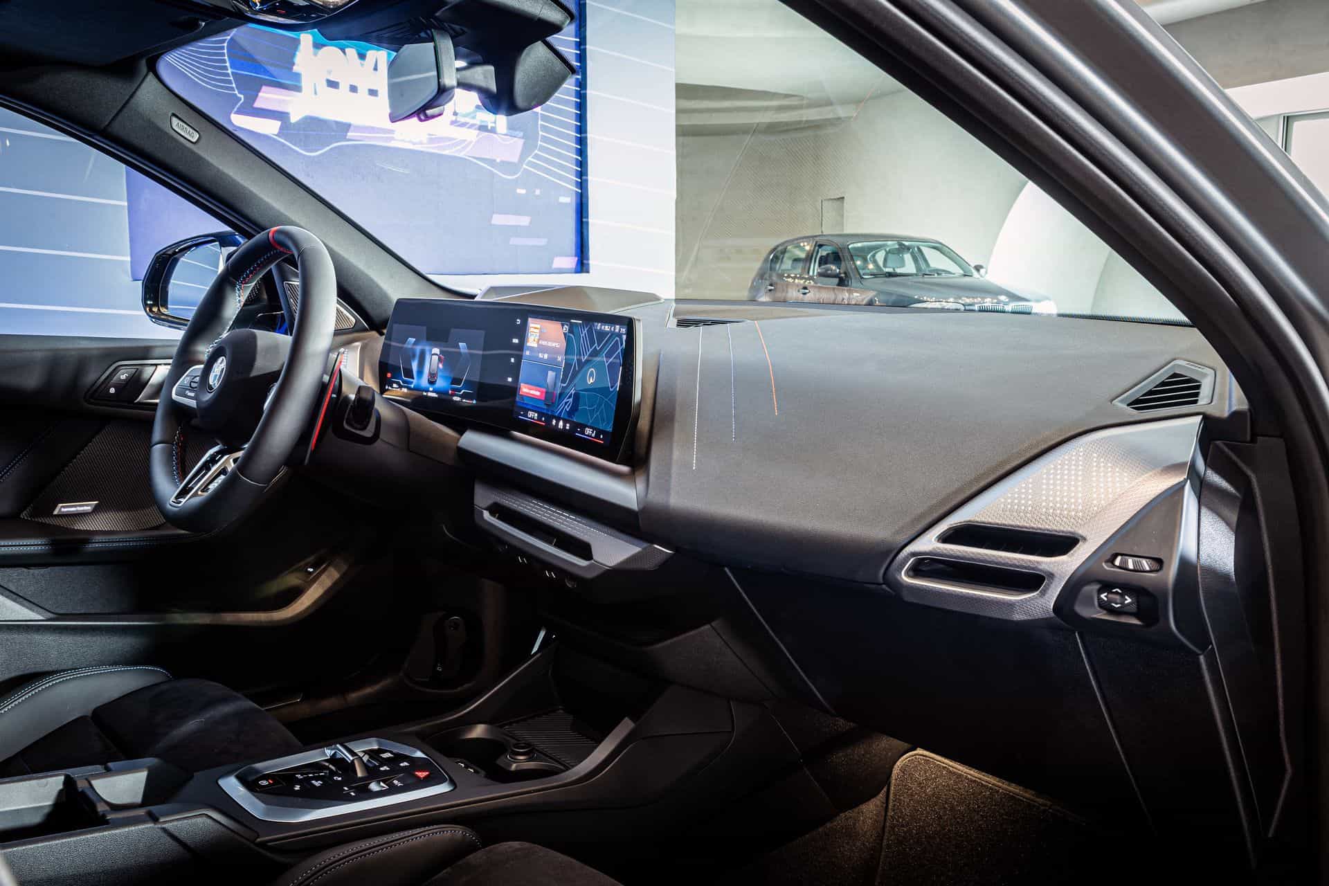 Finished in Frozen Pure Grey and equipped with 19-inch wheels (Style 976 M), the flagship 1 Series is an eye-catching hot hatch. BMW Greece chose to show the firm’s smallest model with additional optional goodies. The extra items vary from adaptive LED matrix headlights with blue inner accents to blacked-out Shadowlien details like the kidney grille and mirror caps.