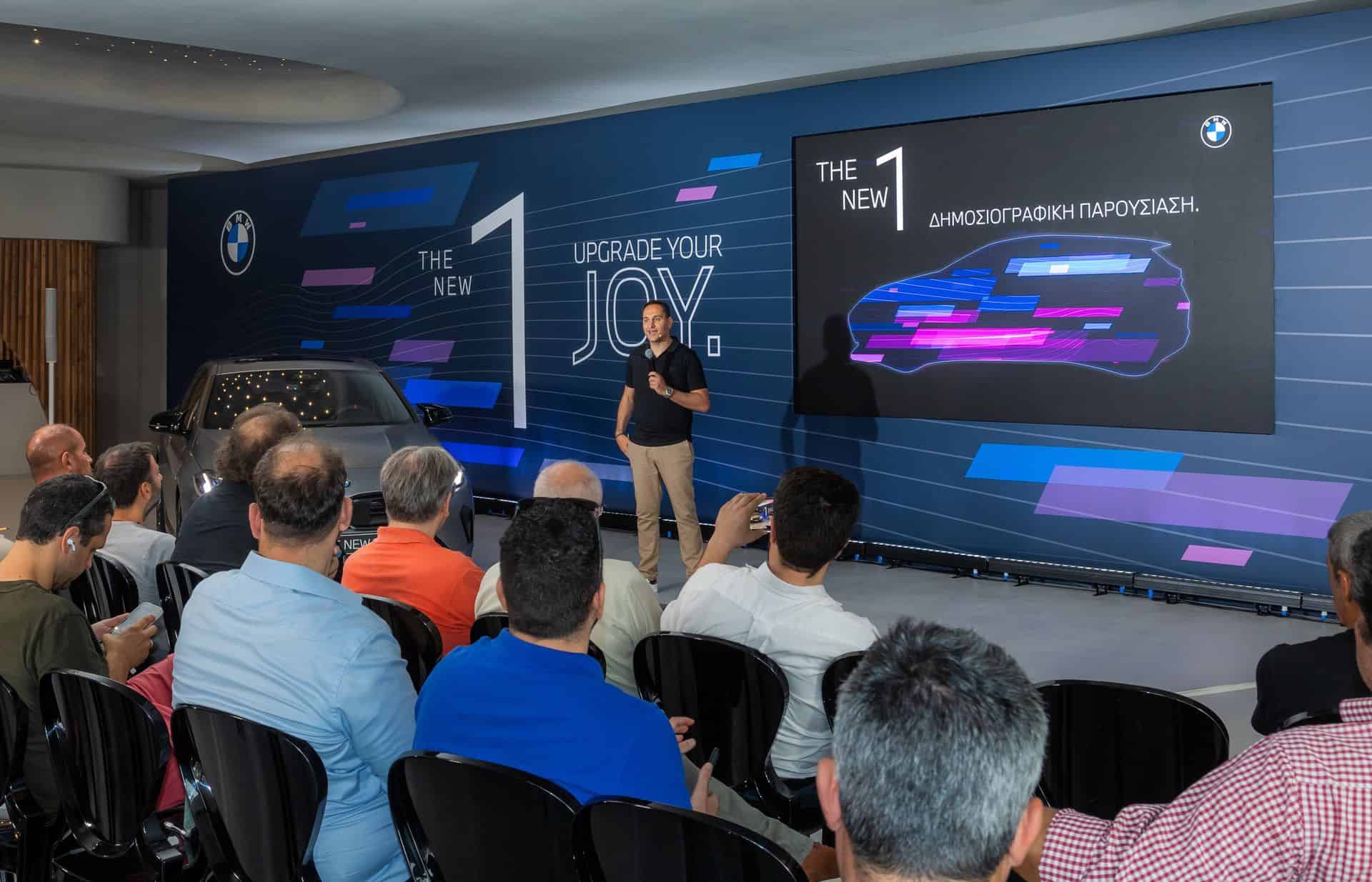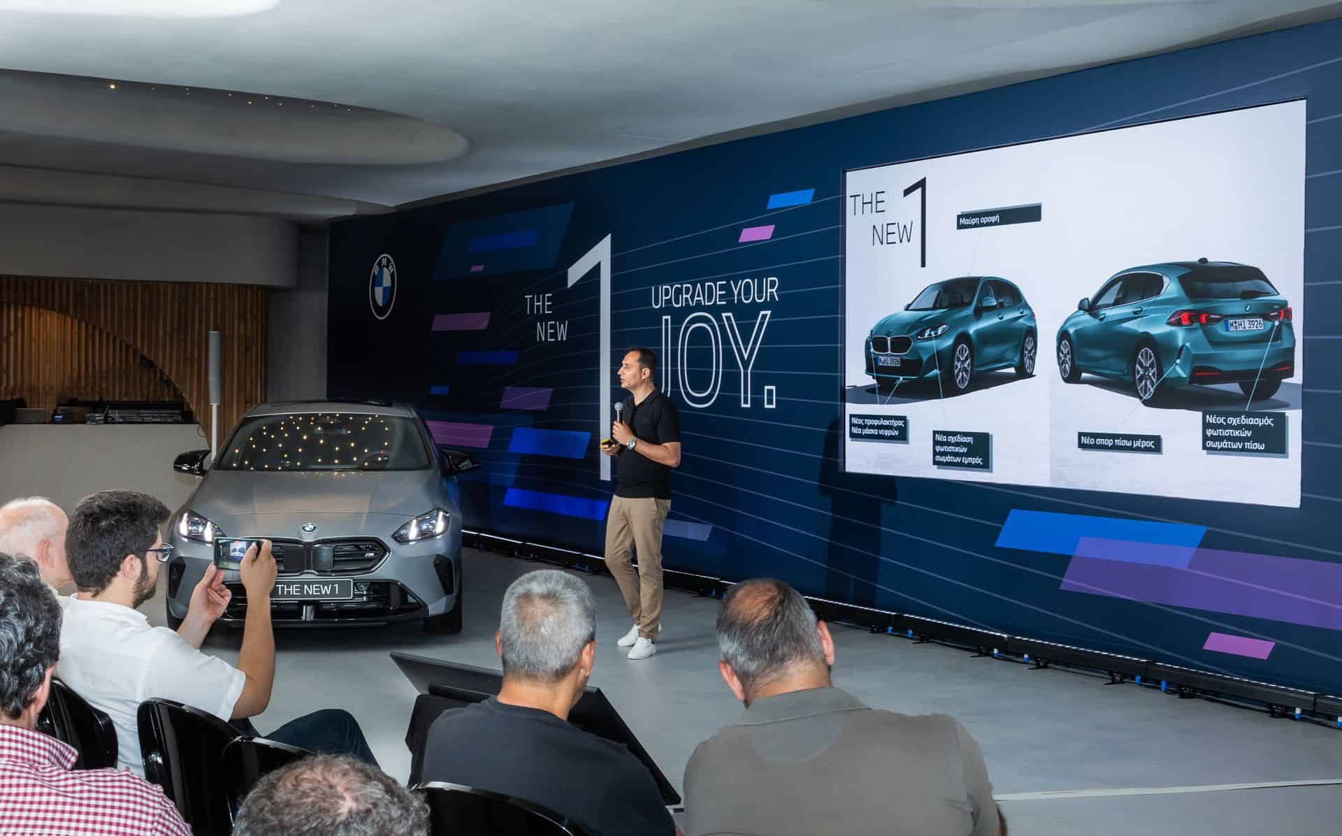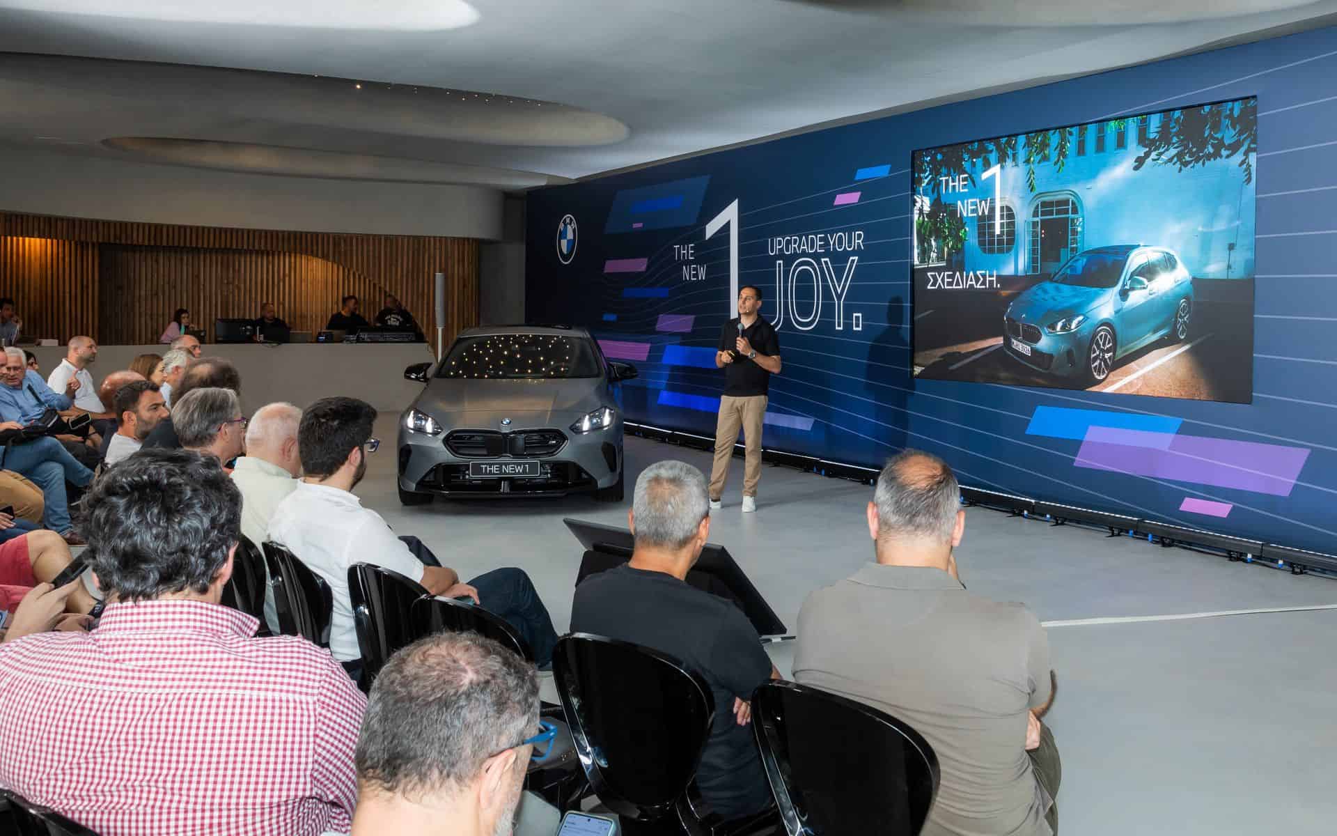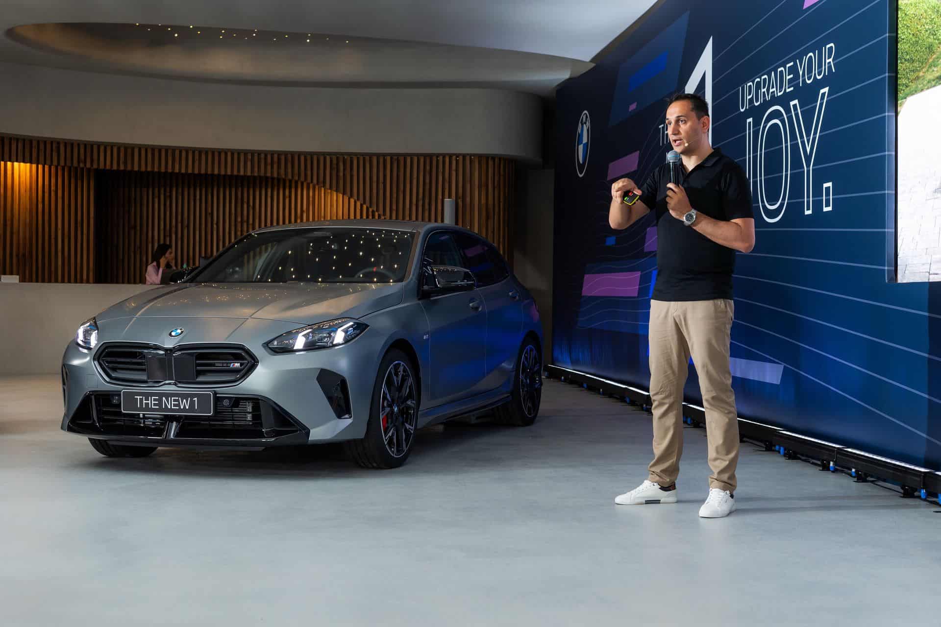 Finished in Frozen Pure Grey and equipped with 19-inch wheels (Style 976 M), the flagship 1 Series is an eye-catching hot hatch. BMW Greece chose to show the firm’s smallest model with additional optional goodies. The extra items vary from adaptive LED matrix headlights with blue inner accents to blacked-out Shadowlien details like the kidney grille and mirror caps.