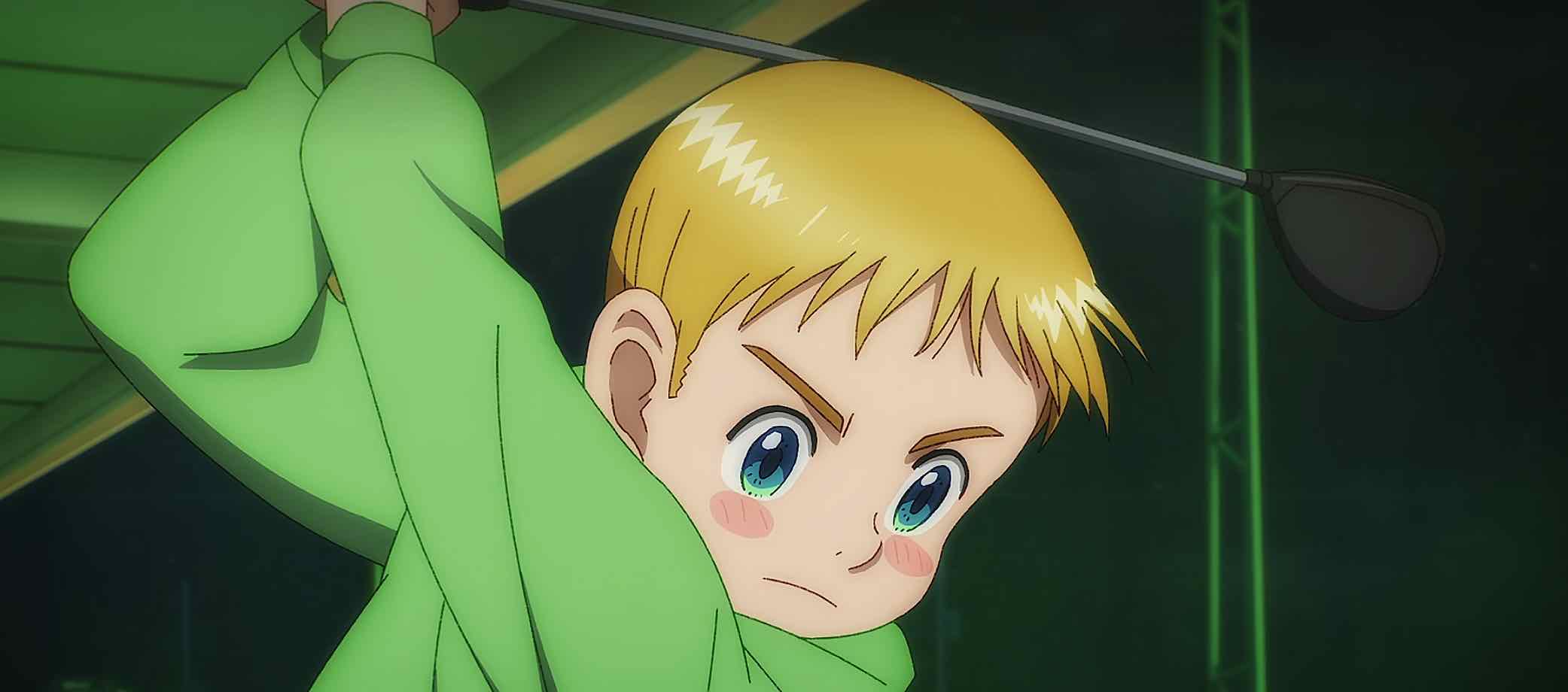 Kiria is presumably rich, though whether that’s from her pro golf winnings (she’s only 21) or a family fortune I don’t know. She lives with her little sister Kurumi, who’s about Gawain’s age or a bit older, and immediately assumes Gawain to be her sister’s (first) boyfriend, which is a bit of an odd joke. Gawain has brought with him a bank book from his gramps which apparently has a lot of money attached to it, and Kiria decides she’ll take him in (which I suspect she would have done anyway). She takes him back to the range to hit a few (hundred) balls, and can see quite clearly that this little man is a freak of nature with a golf club in his hand.