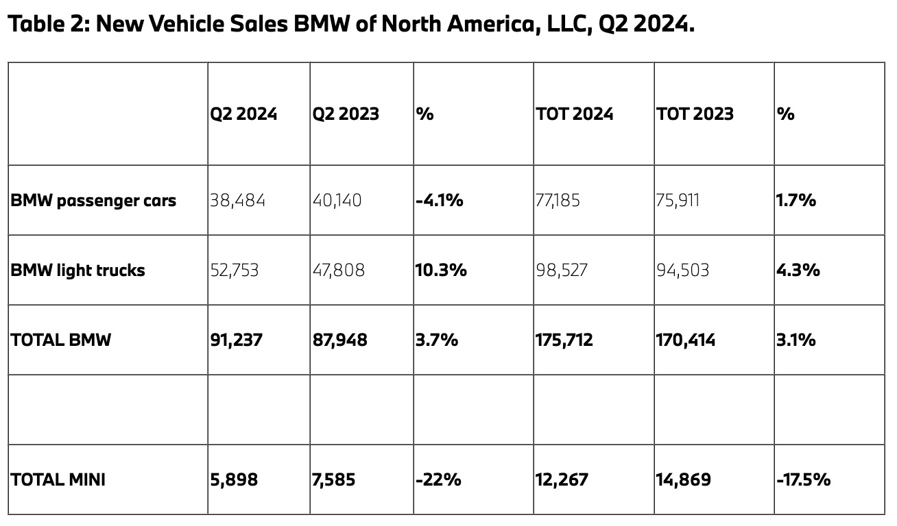 Q2 2024 BMW Sales Increase 3.7% vs Q2 2023.