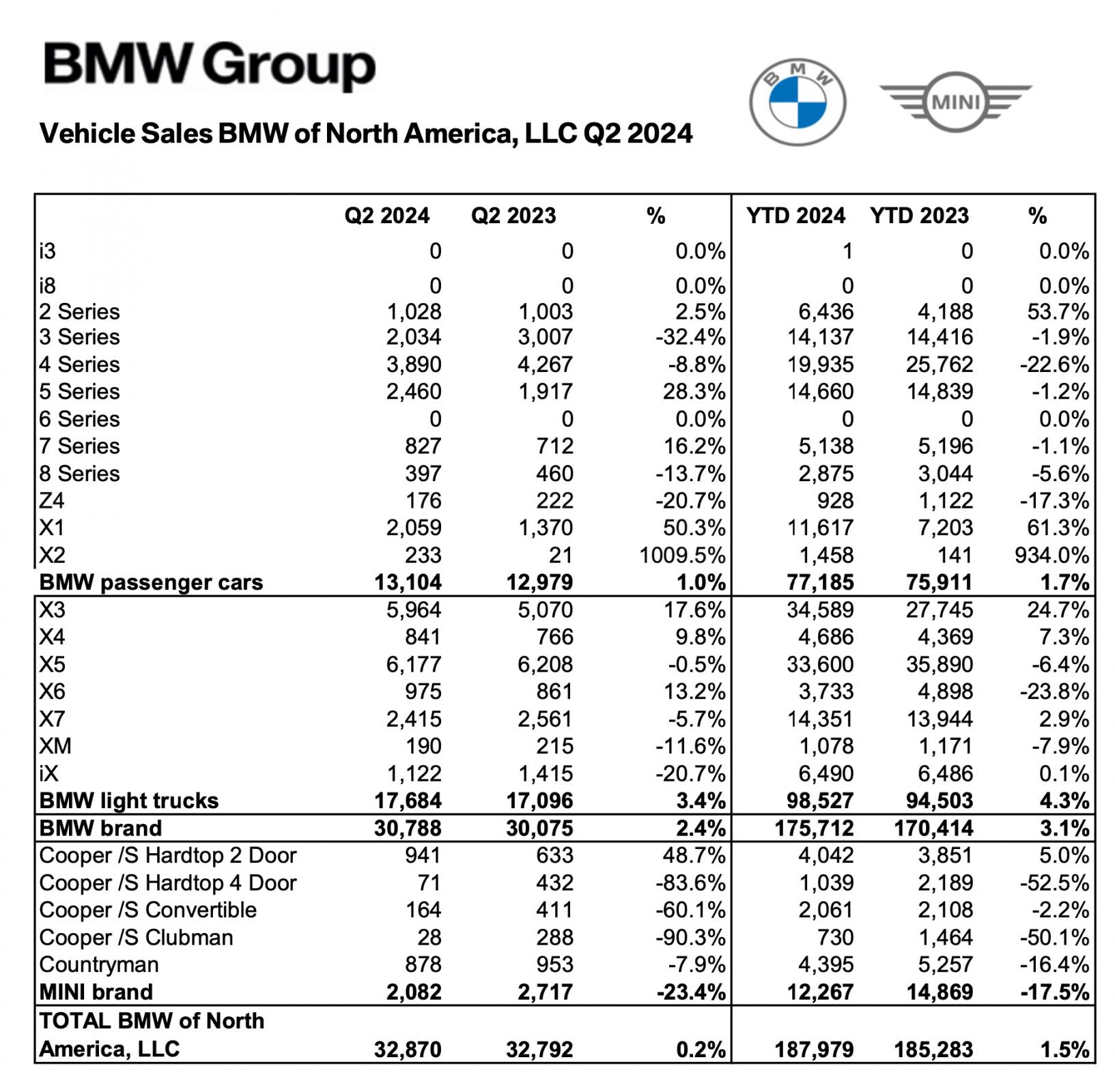 Woodcliff Lake, NJ – July 2, 2024… BMW of North America today reported Q2 2024 sales results for the BMW and MINI brands in the U.S.