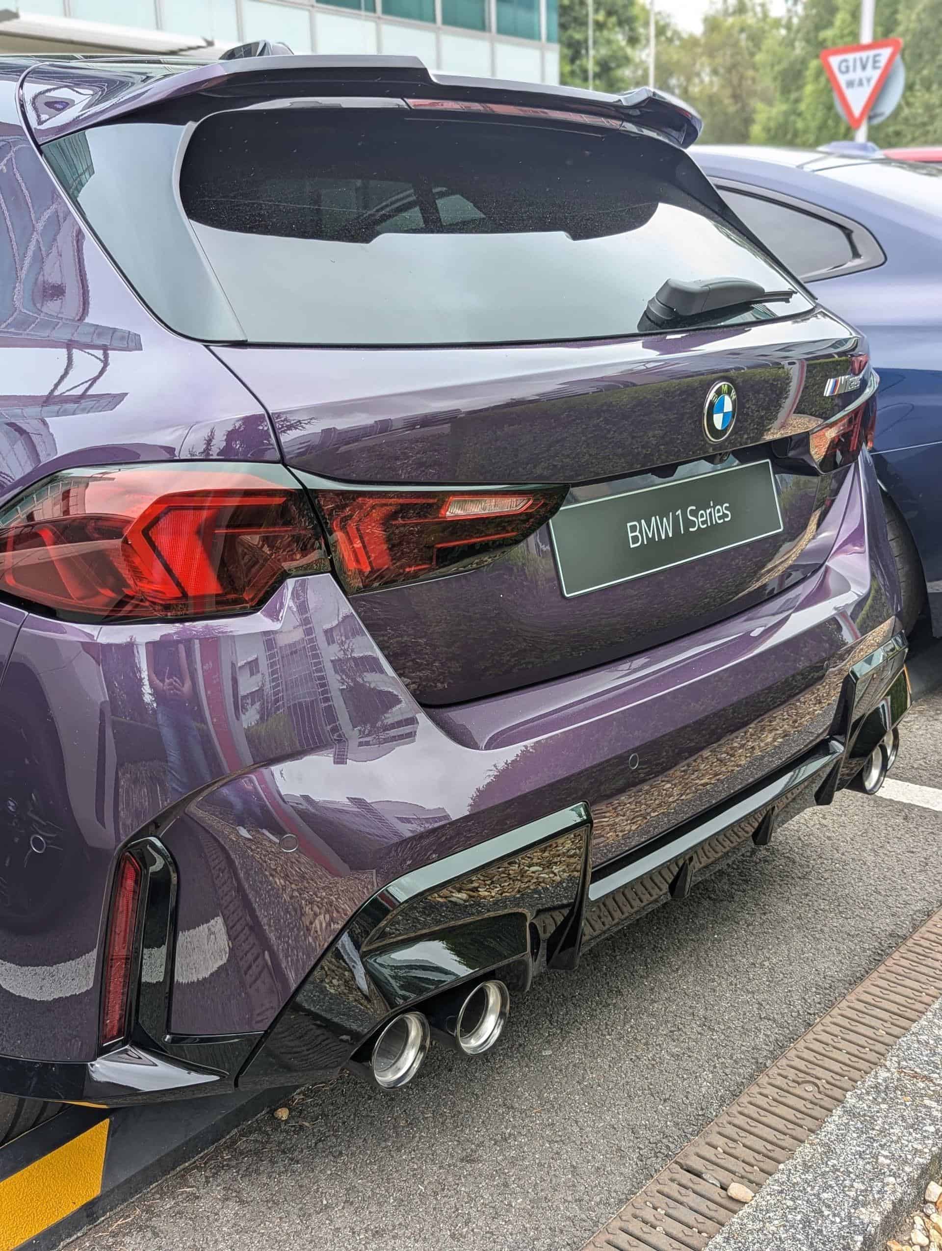 The quad exhaust tips come as standard on this car, despite not being a full-fat M model. The “world’s most powerful letter” also adorns the kidney grille. Also found on the hot compact crossovers, these elements were not installed on the previous-generation M135i (F70). The old performance hatchback also didn’t have that rear badge where the “M” and “1” are bigger than the “3” and “5.” To the untrained eye, it gives the first impression of an M1, which this car clearly isn’t.