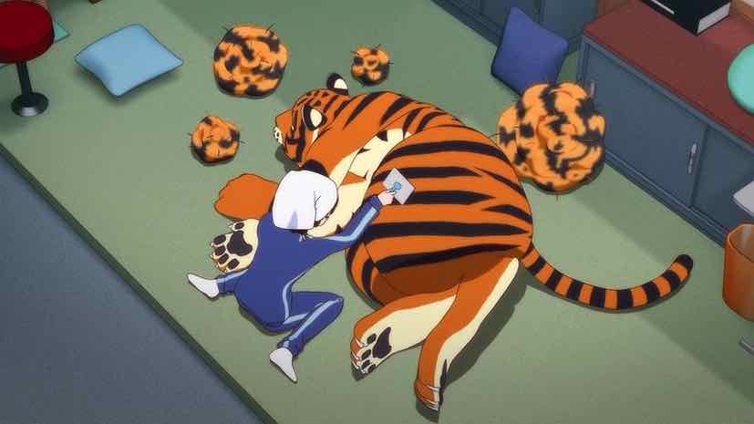 I never really thought about tigers being grumpy during shedding season (or it being later than it is for domestic cats). But the issue for Krishna, I think, is that unless someone is around to brush her vigorously she can’t do anything about it. And as the noodler, that’s a big problem. Hana isn’t really up to the task, and the person who did it before her had her own issues (which we’ll learn about soon enough). The amount of fur coming off Krishna is truly prodigious – there’s a great callback to this in the omakes, where Bunzou can’t resist giving a giant ball of it a whack.