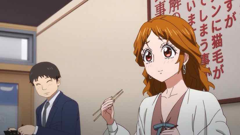 Tamako learns a few secrets (“Cats Get Talkative During Brushing” is the name of the chapter). Sabu was a stray, Hana is actually a longhair, Bunzou inherited the shop from a guy who used to run it as a cart but fell into ill health from eating too much ramen (as you would). That’s when we meet Goshogawara-san (Anzai Chika), a crucial figure in the shop’s recent history. She’s a lawyer and Miki’s assistant, but more importantly a hardcore cat lover who can’t control her impulses. It was her excesses that caused Bunzou to decide never to hire another cat lover, in fact.
