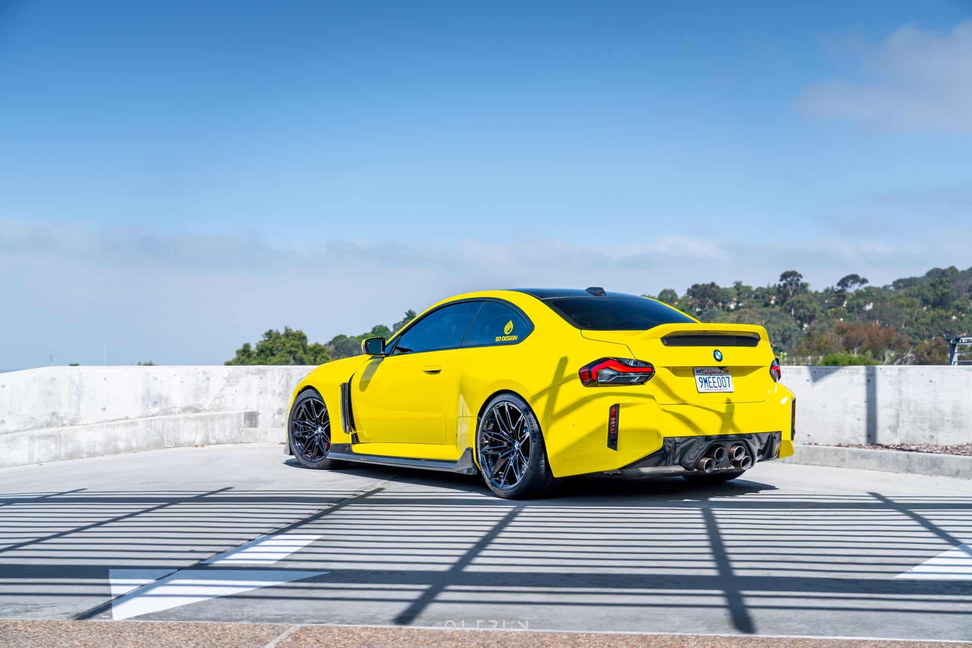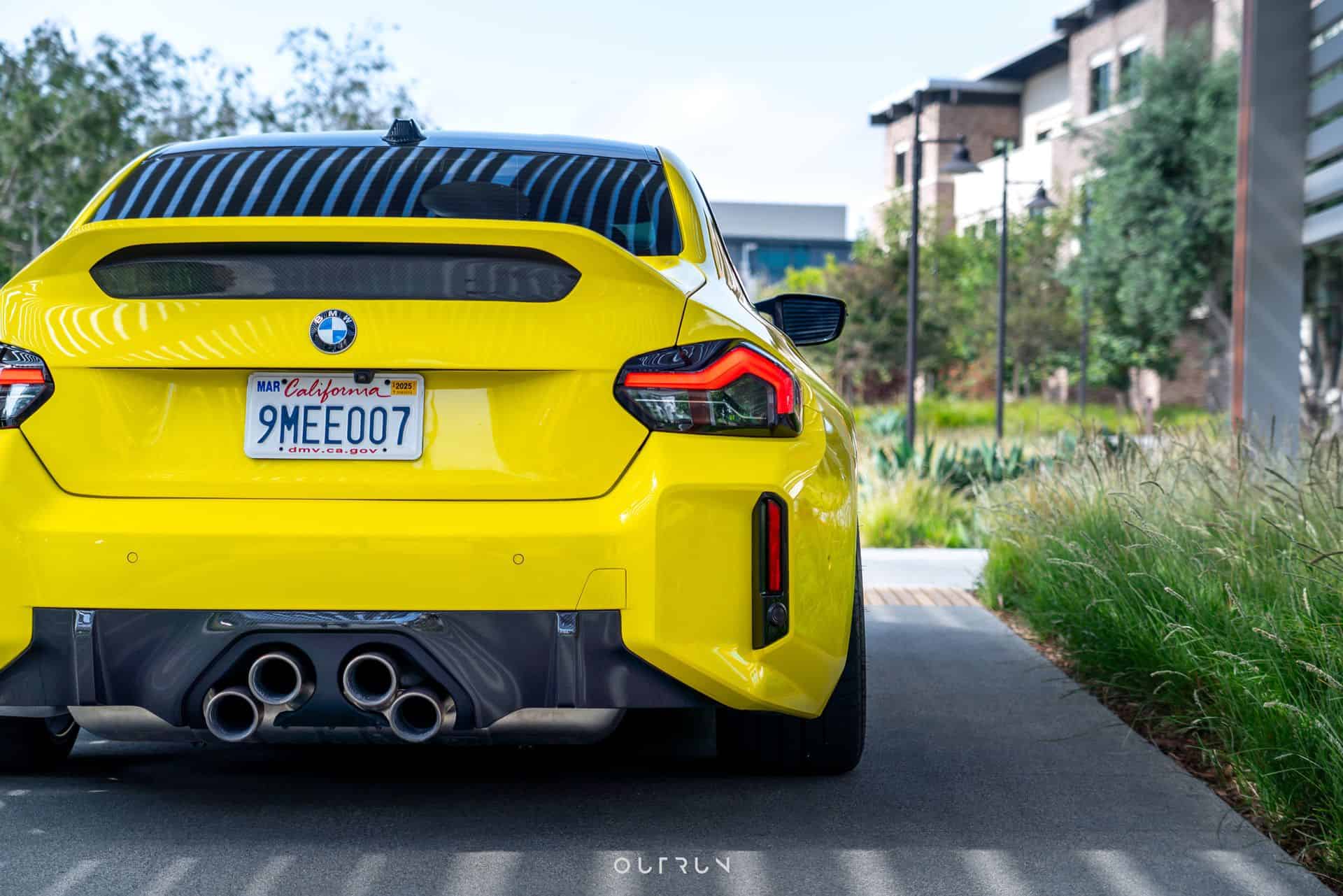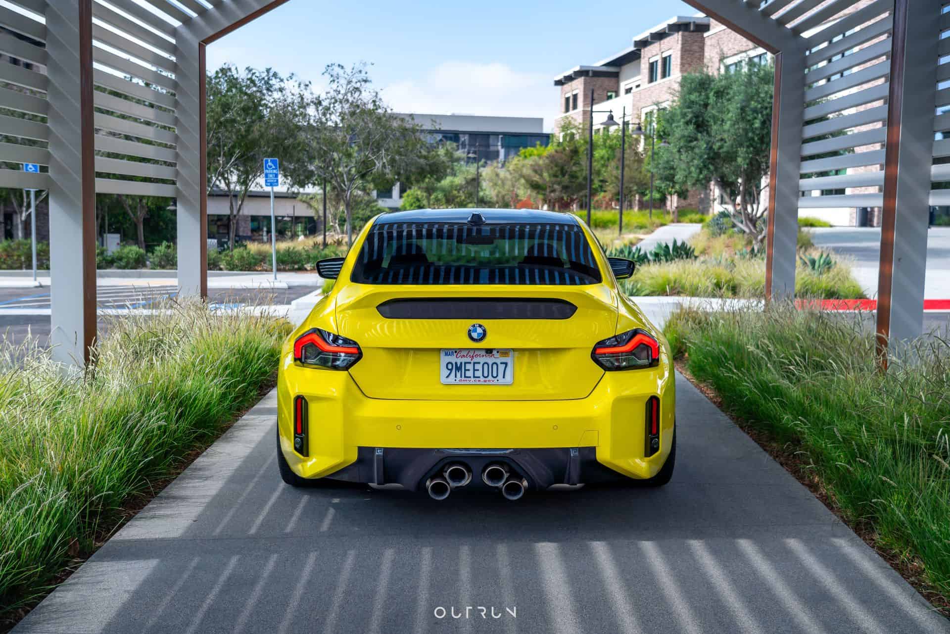 Speaking of the car’s rear, the look-at-me coupe rocks the controversial stacked exhaust tips. It’s an upgrade offered by BMW through its vast M Performance Parts catalog. Its titanium silencer is about 8 kg (17 lbs) than the standard setup. It uses electrically controlled flaps and a titanium tailpipe trim module with ceramic coating. The exhaust sounds particularly mean when the car is in either Sport or Sport+ mode. Lastly, the wrap is Inozetek Citrus Yellow. The owner says that the car also has Ohlin coilovers as well installed by SD Design in San Diego.