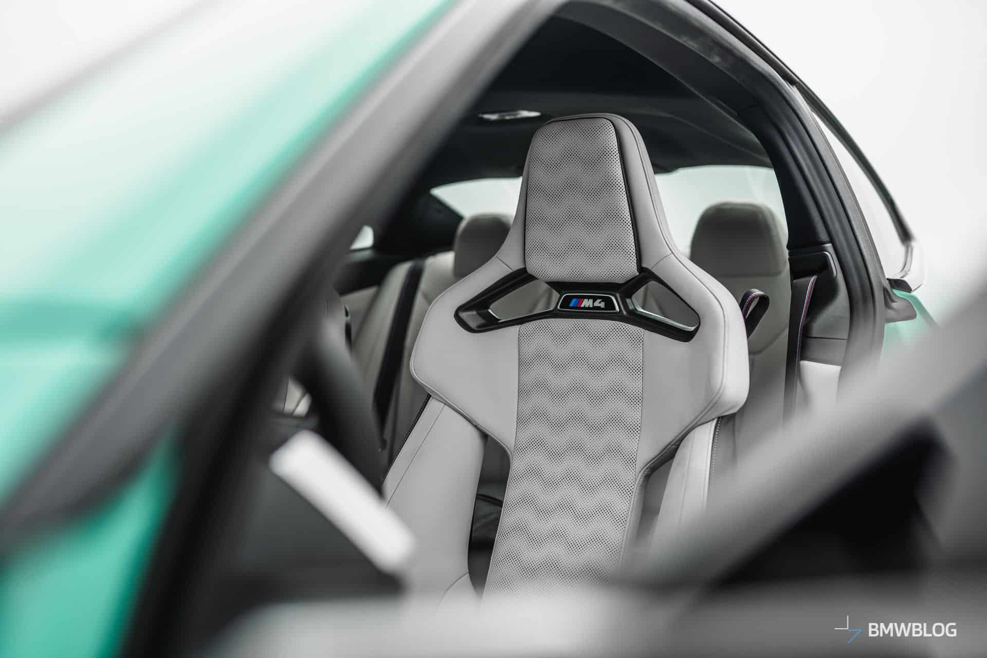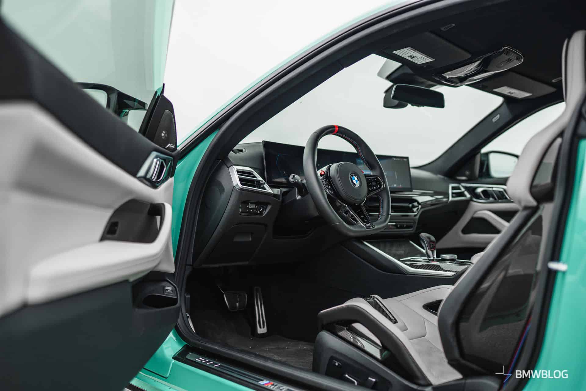 Codenamed W97, Mint Green is a striking Individual color that makes any BMW grab all the attention. As if that wasn’t enough, this M4 also happens to have black stripes with an M logo. This option alone costs an additional $1,800. It’s been available in Europe since mid-2022 but it took a while for the decals to become available in the US. If you don’t like black, a red version is also available.