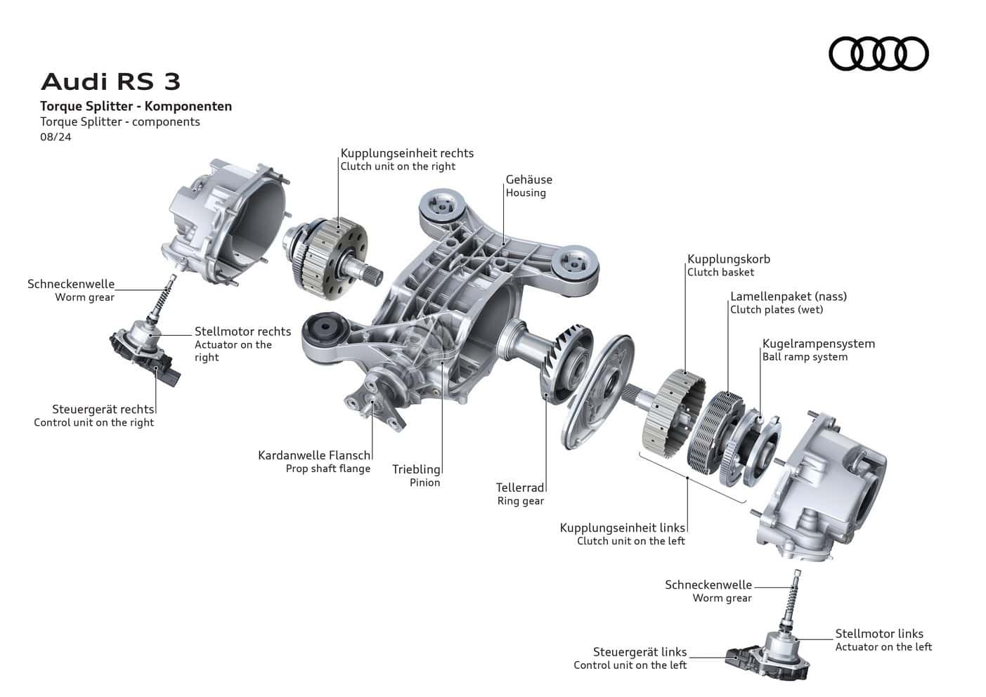 For 2025, the RS3 also gets grippier standard tires but enthusiasts can still opt for the Pirelli P Zero Trofeo R semi-slicks. Additional tweaks to the brake torque vectoring system diminish understeer, or so we’re being told. The adaptive dampers react even better now following a recalibration, while the torque splitter has been improved as well.