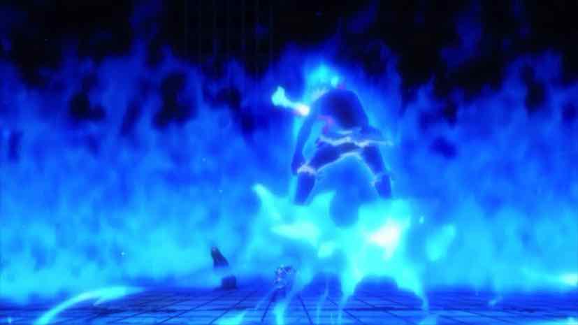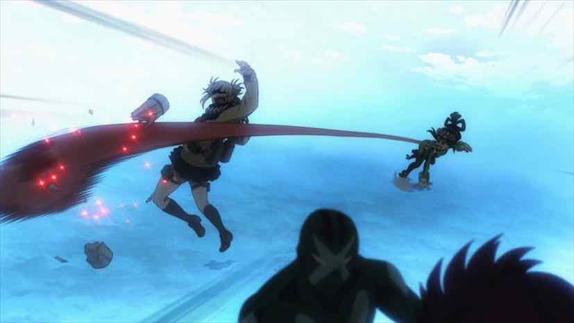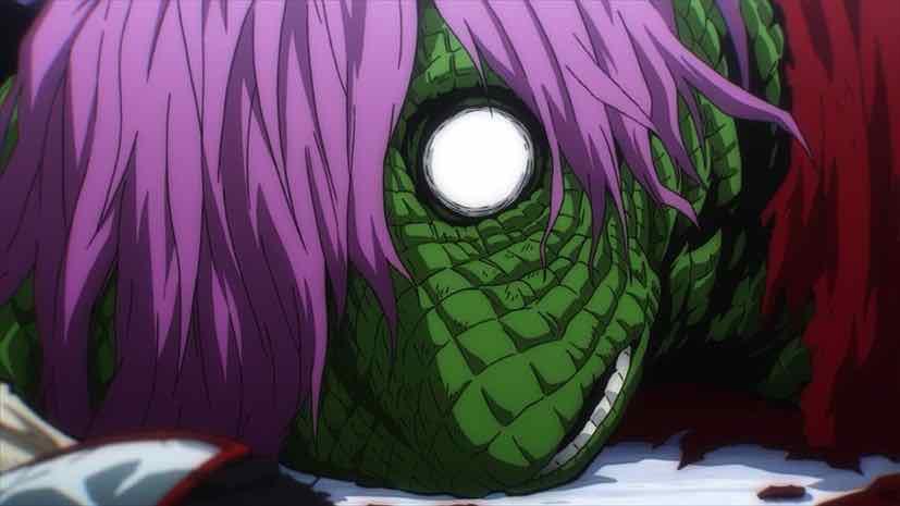 “Warp” makes that decision easy for her. Once Kurogiri intervenes, Toga knows her choice is clear. She suckers Froppy with a fake vial containing a nomu-attracting chemical, then uses the distraction it provides to ingest the real thing. “Sad Man’s Death Parade” is truly a staggeringly powerful weapon – all those clones imbued with killing intent on anything that poses an obstacle. And with “Warp” in play she doesn’t even have to limit its use to her own fight – she sends some clones to Gunga Villa too, where the man she hates more than anyone else – the one who killed her beloved Twice – is locked in battle with All For One.