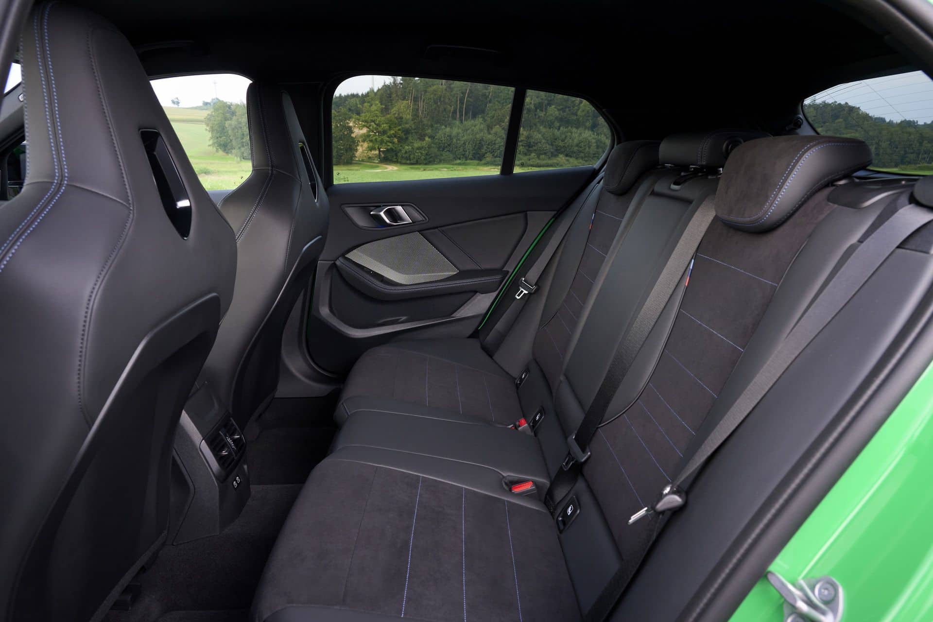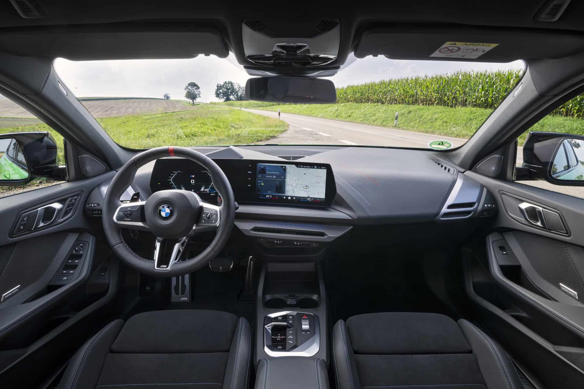 The M Sport seats, finished in Alcantara, offer excellent support and comfort even after hours of driving. For those looking for an eco-friendly option, BMW offers a leather-free seat option called “Veganza.” The spaciousness of the interior remains typical for a 1 Series, meaning it’s not a large car, but it offers enough room for a couple of suitcases and some backseat passengers—though taller occupants may find rear legroom a bit tight.