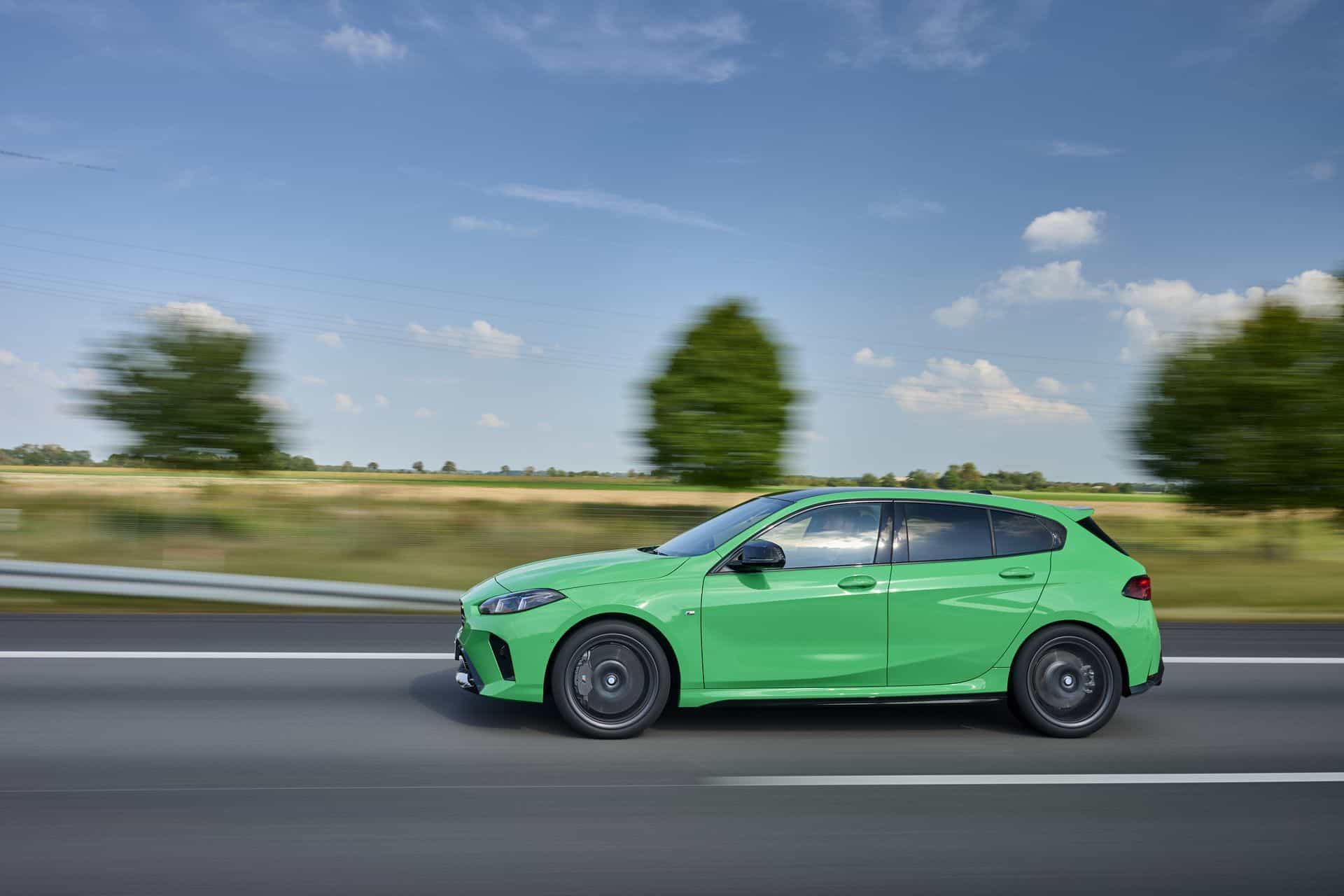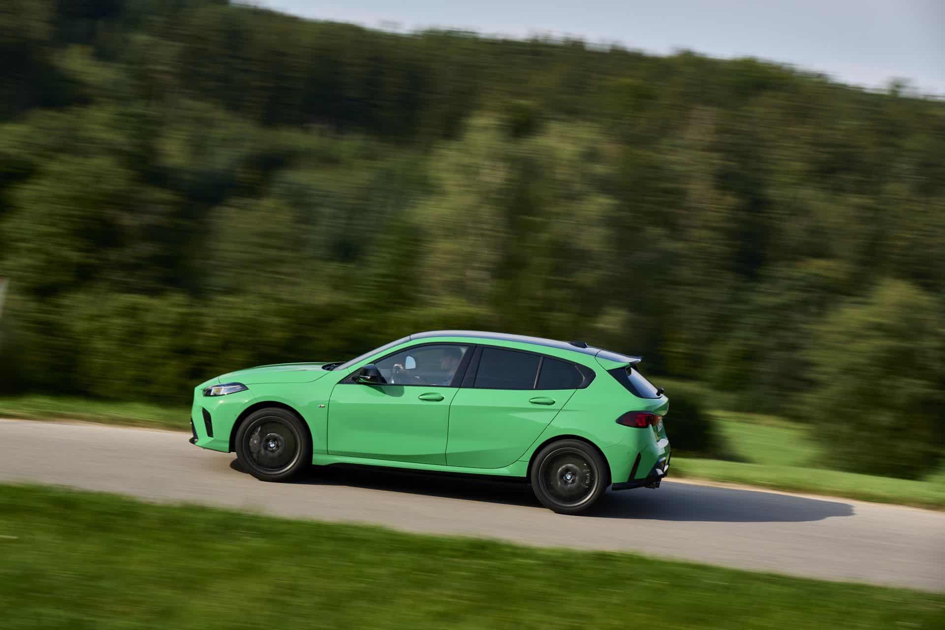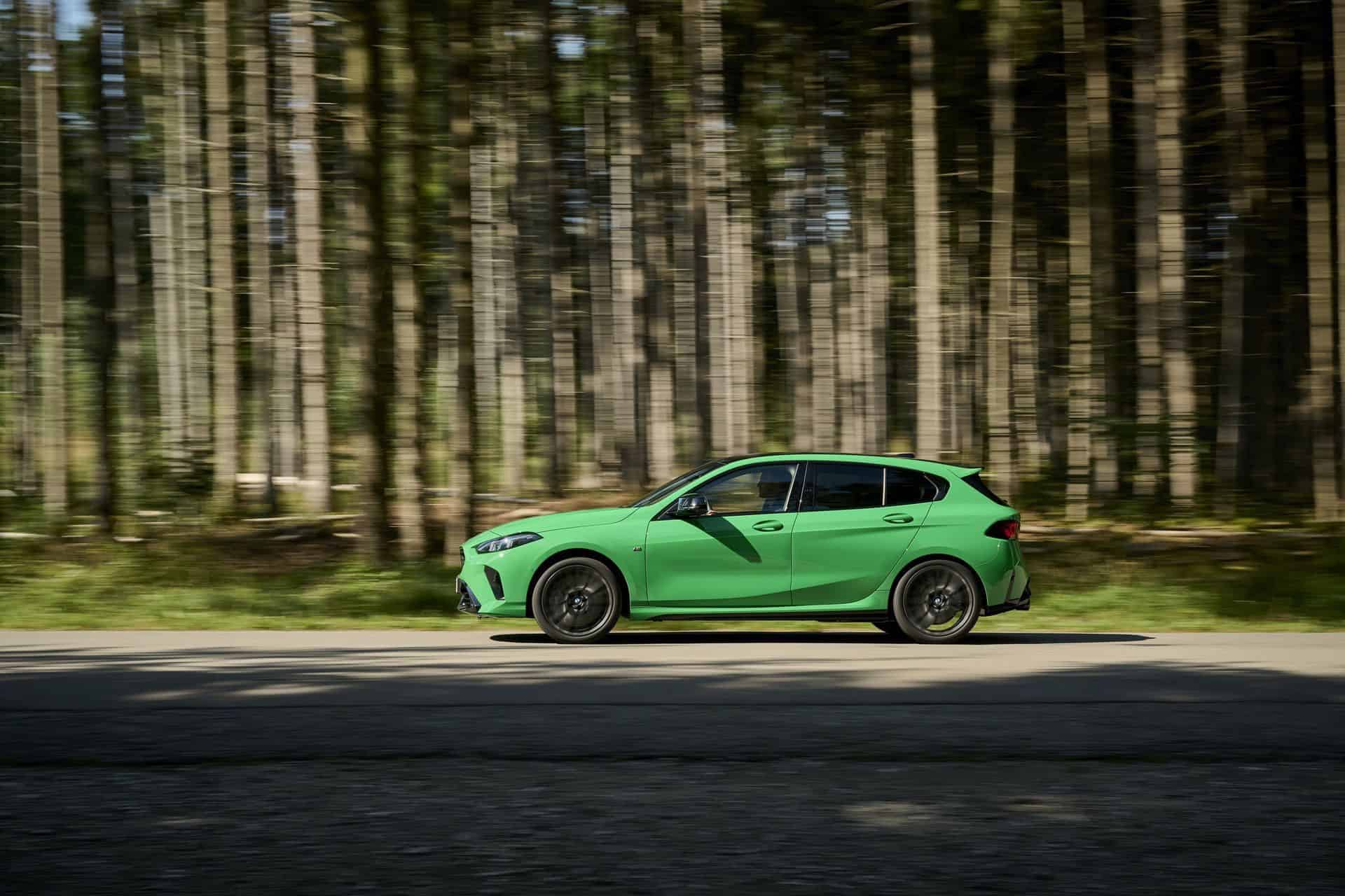 The side view has not changed much, if at all. It has a similar shape as the F40 generation, but it gains things like rocker panels and a number 1 imprinted in the kink. The 19-inch forged wheels, part of the optional M Technology Package, complete the hot hatch stance, along with M sport brakes, which can be specced in gray, red, black, or blue calipers.