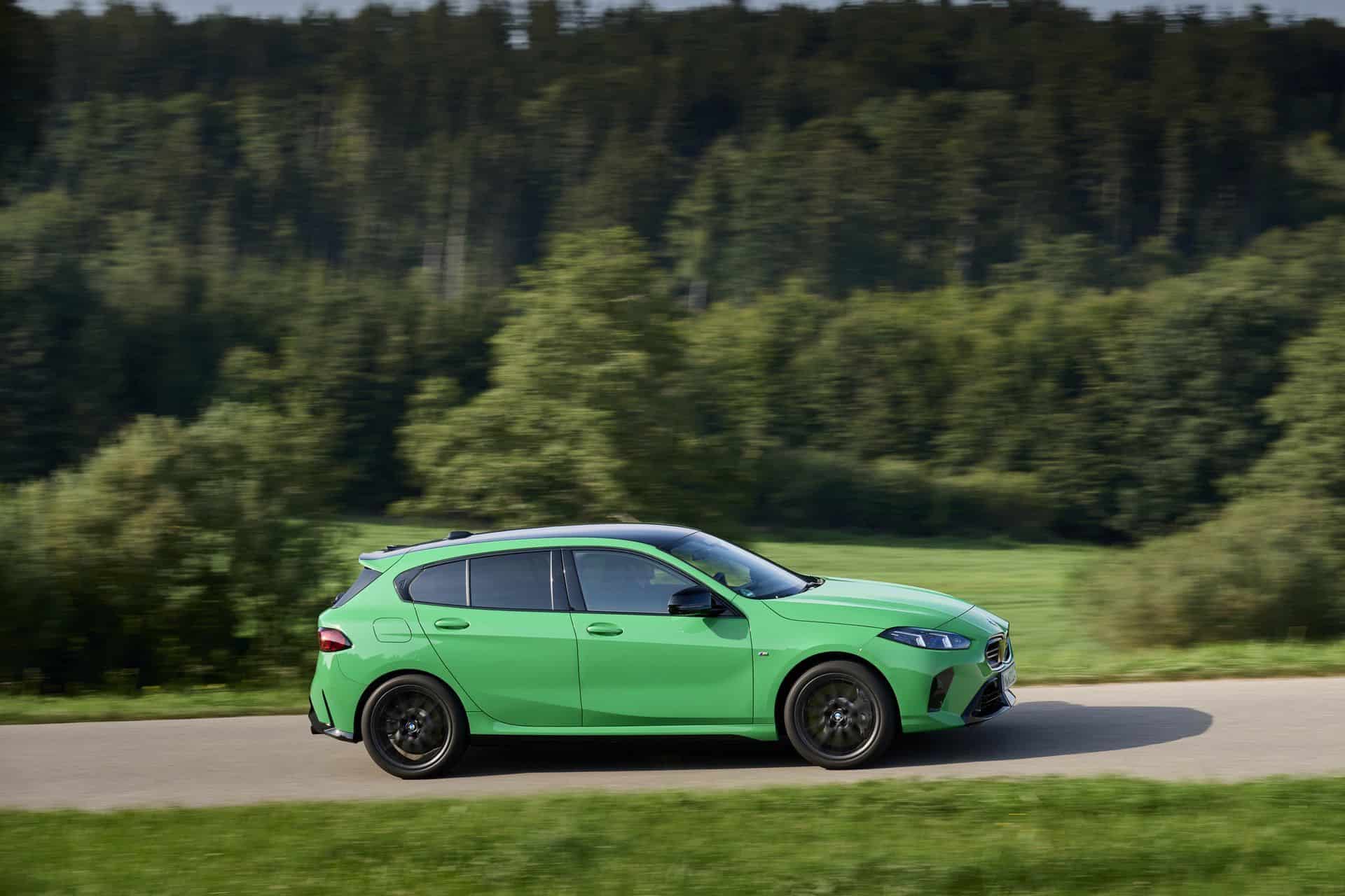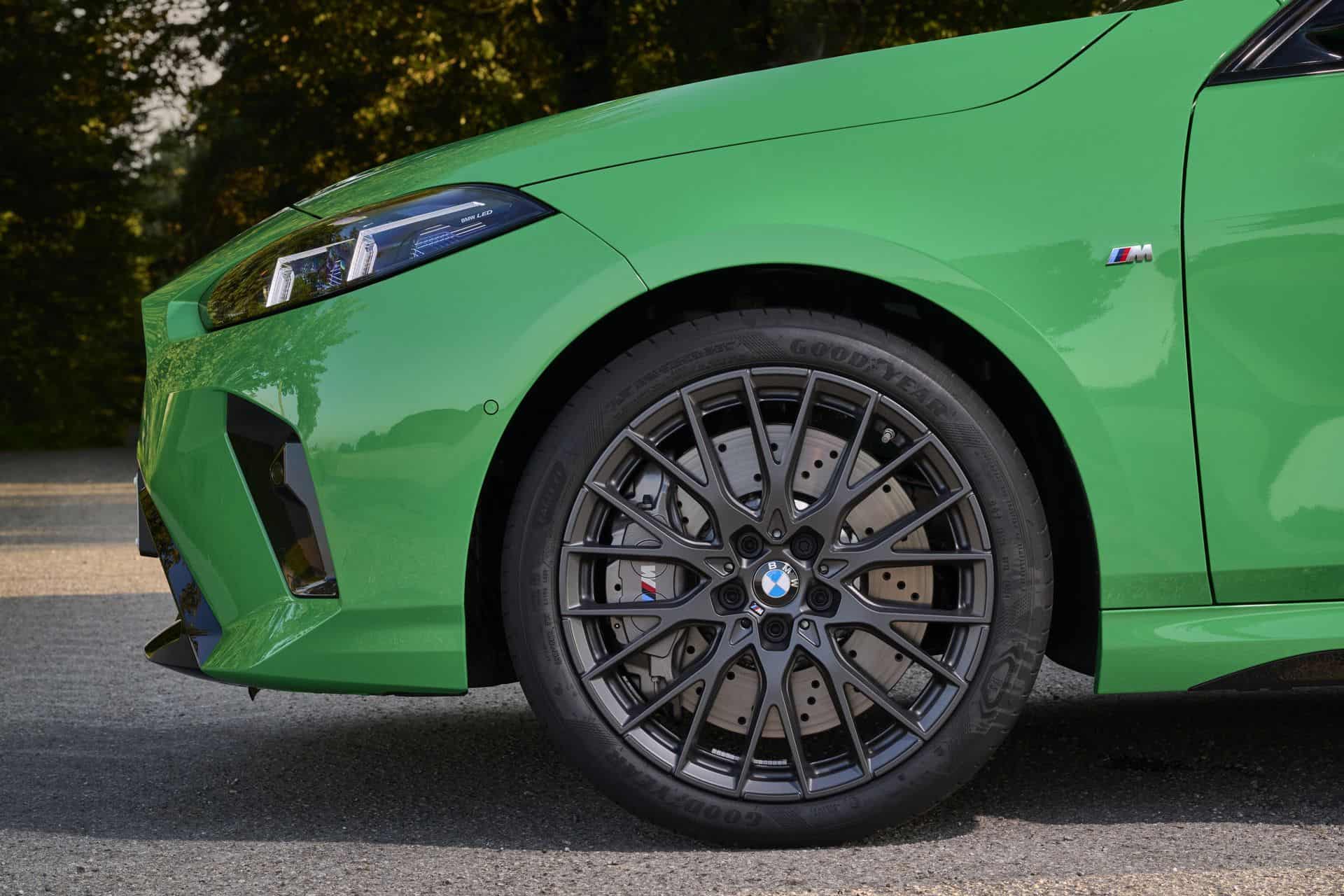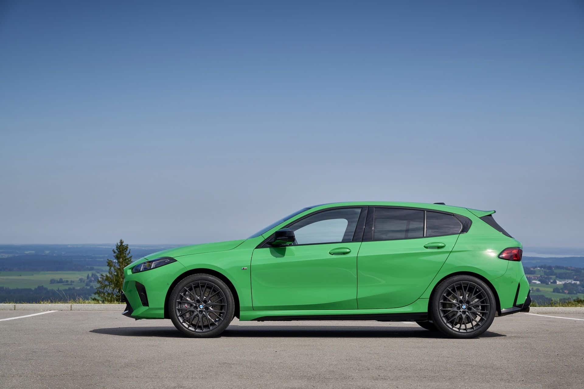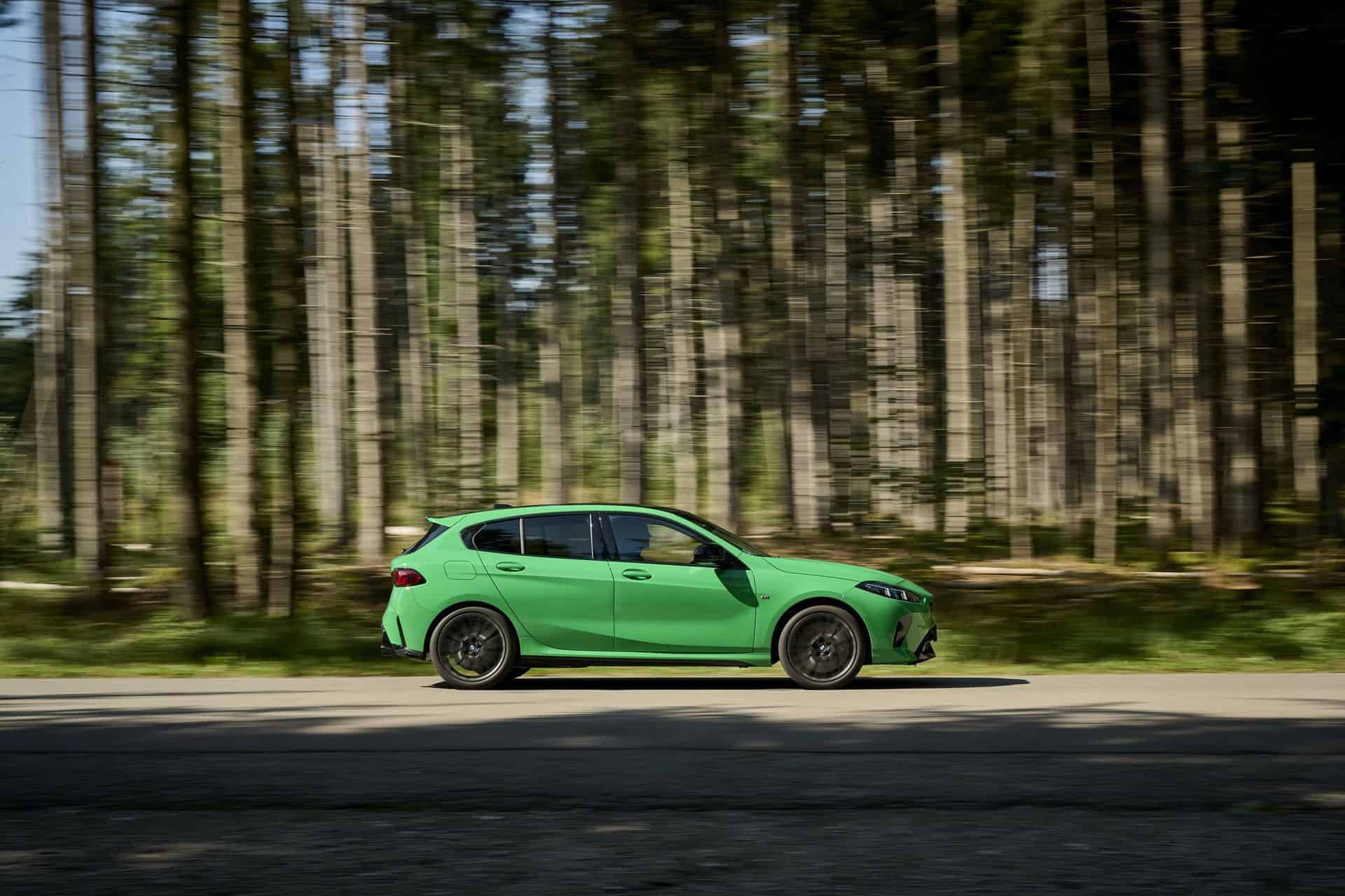 The side view has not changed much, if at all. It has a similar shape as the F40 generation, but it gains things like rocker panels and a number 1 imprinted in the kink. The 19-inch forged wheels, part of the optional M Technology Package, complete the hot hatch stance, along with M sport brakes, which can be specced in gray, red, black, or blue calipers.