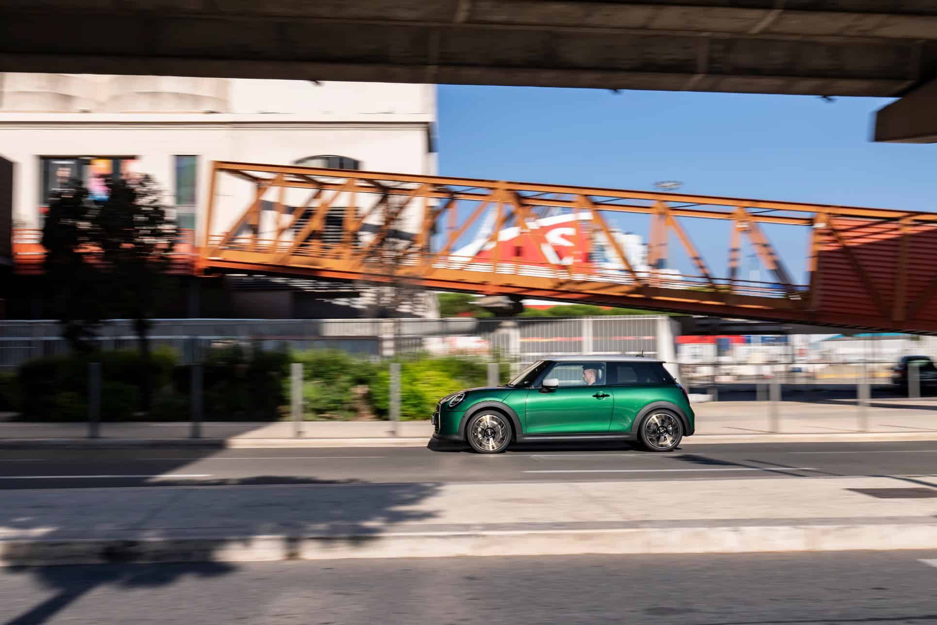 Made in the Favoured trim level, this Cooper C has received the optional adaptive LED headlights. You can tell it’s the upgraded setup by the two horizontal daytime running lights lines whereas the standard lights have just one line in the middle. Being an upper-spec variant, the grille gets a silver contour to make the front visually pop against the green paint job.