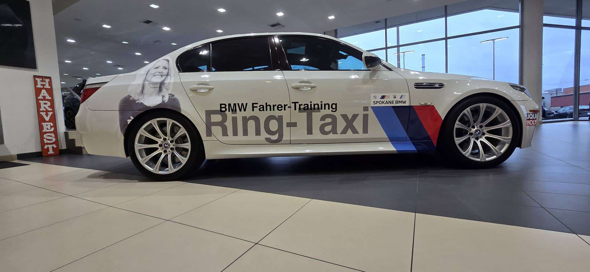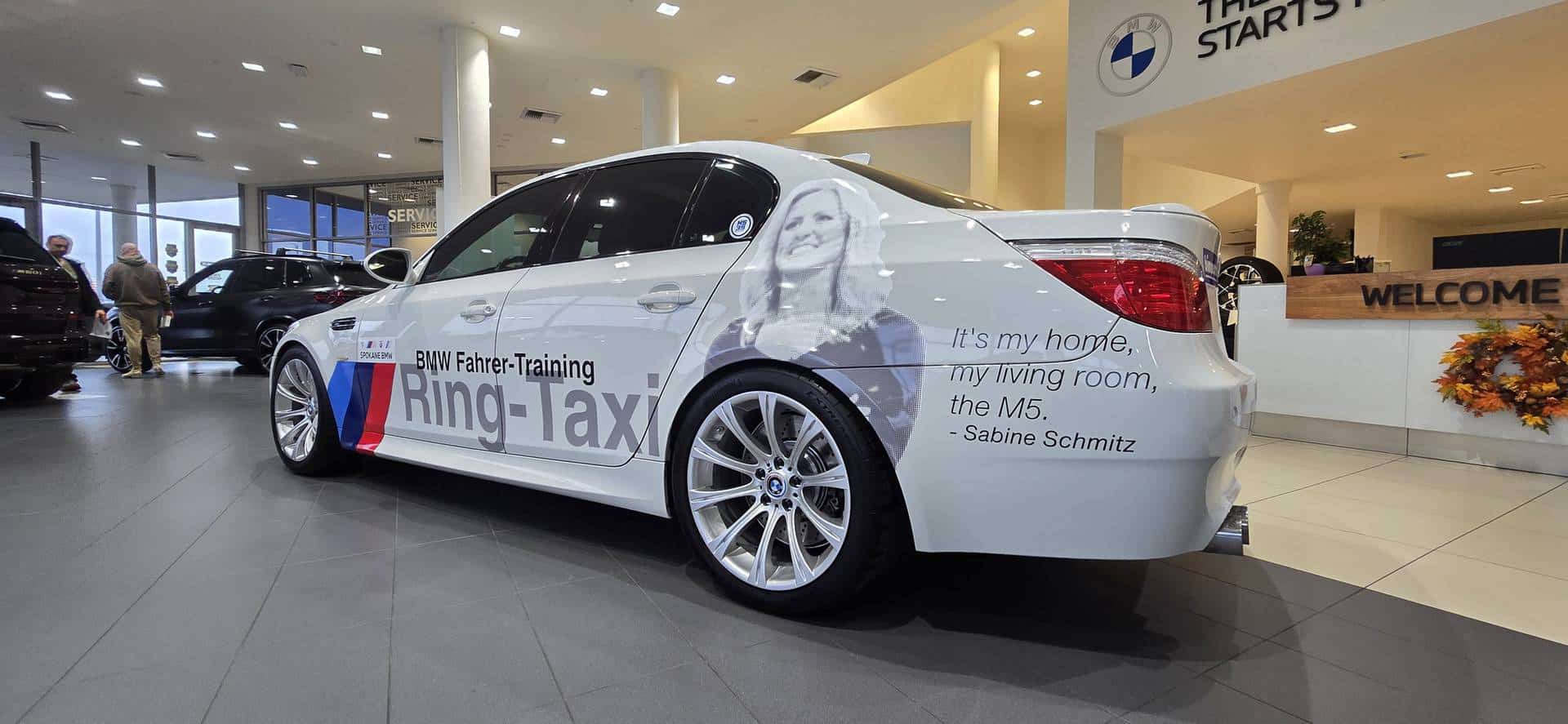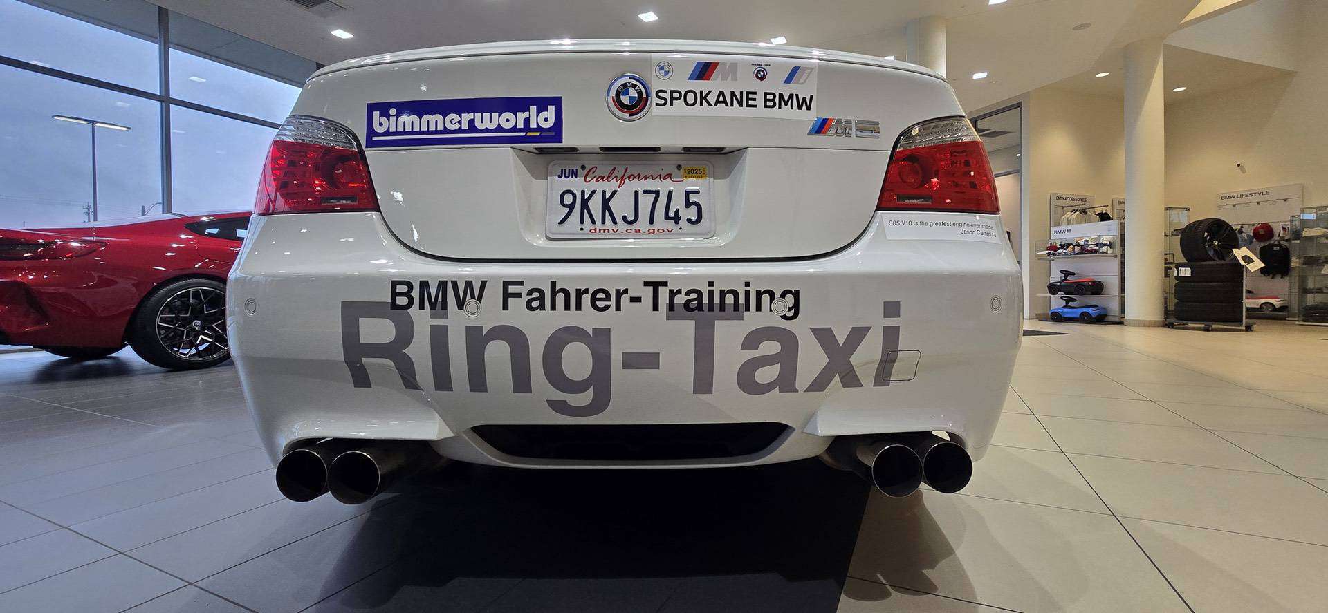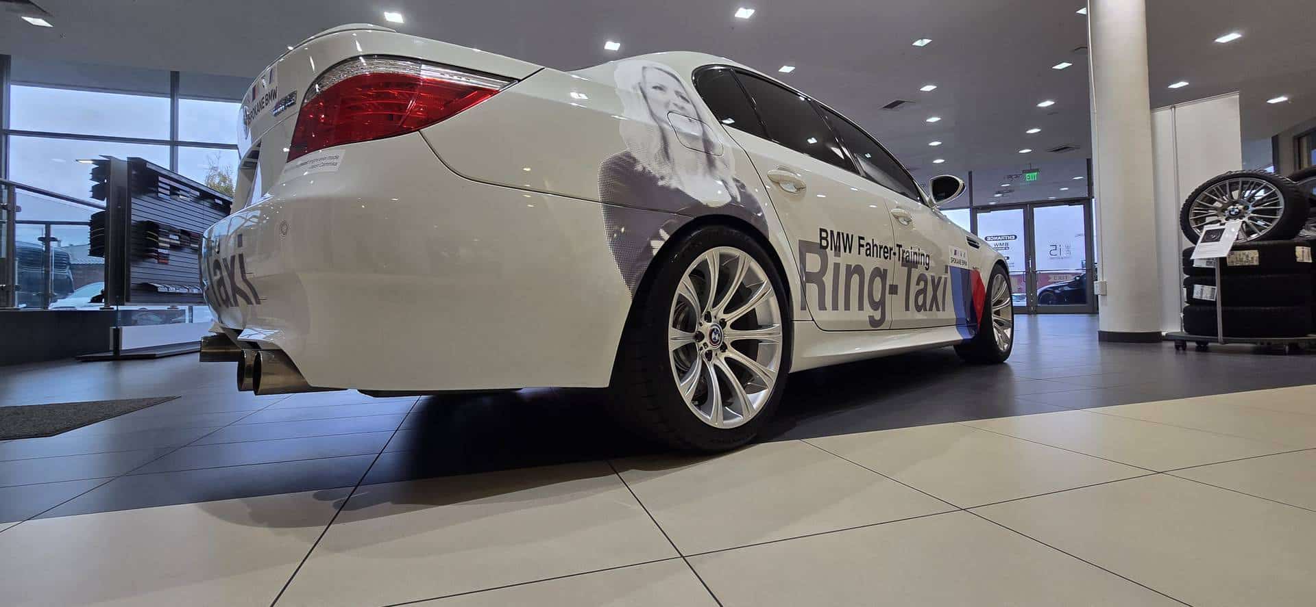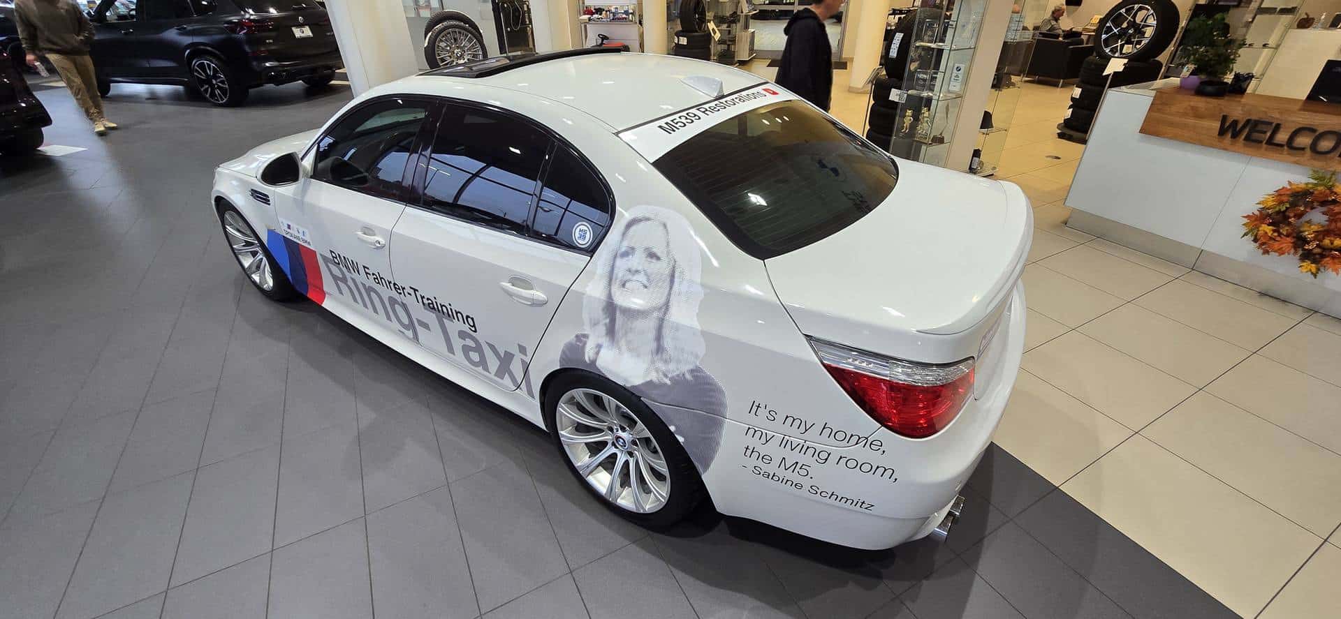 Milisavljevic paid attention to the market and when one surfaced at a salvage auction, he pounced on the opportunity to make a project out of it. Chronicled by a three episode-arc on his YouTube channel and culminated by a showing at Monterrey Car Week, Milisavljevic triumphantly put this M5 back on the road—but not so subtly as you might notice from the pictures. In addition to mechanically refurbishing this M5, Milisavljevic decided to convert its Alpine White exterior into the perfect show-car by replicating its appearance to match the BMW Ring Taxi of the E60 era. Milisavljevic did this replete with vinyl’s depicting the late (legendary) BMW taxi-driver, Sabine Schmitz, who passed away at the age of 51 in 2021.