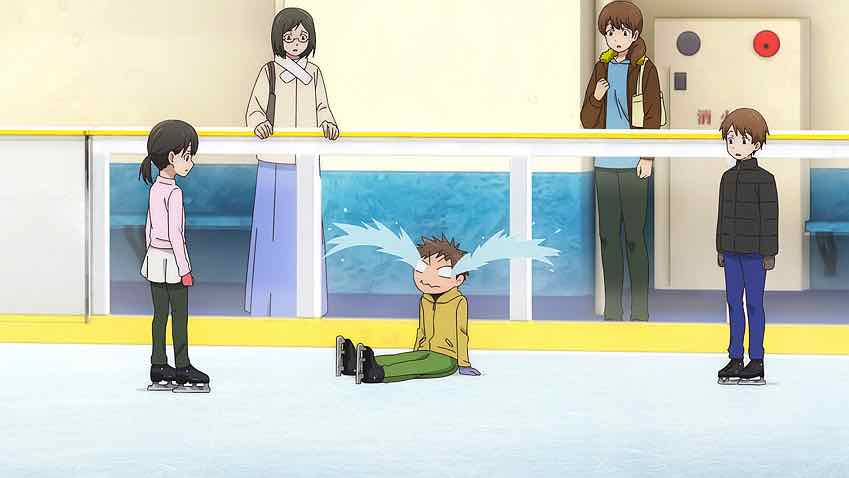 In essence Medalist is the story of two people. One is Akeruaji Tsukasa (Ohtsuka Takeo), a 26 year-old former competitive ice dancer now scraping by on ice show gigs. He started late – 14, which is incredibly late for a skater, even a boy. And while he made it to nationals, he’s convinced it was due to his partner Takamine Hitomi (Katou Emiri) and that he screwed himself by waiting too long. While visiting Nagoya for an interview for a rink job, he has a run-in with a 5th-grader named Yuitsuka Inori (Haruse Natsumi) who he thinks is sneaking into the rink. Turns out she’s trading worms she digs up to the oji-san at the ticket booth in exchange for letting her skate.