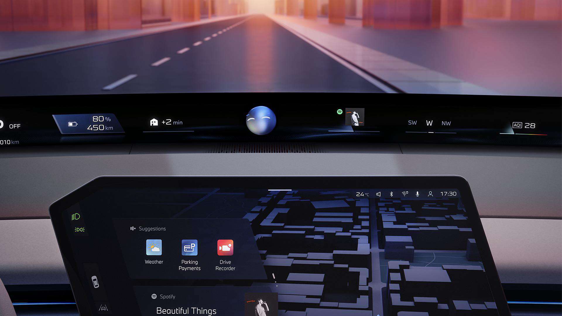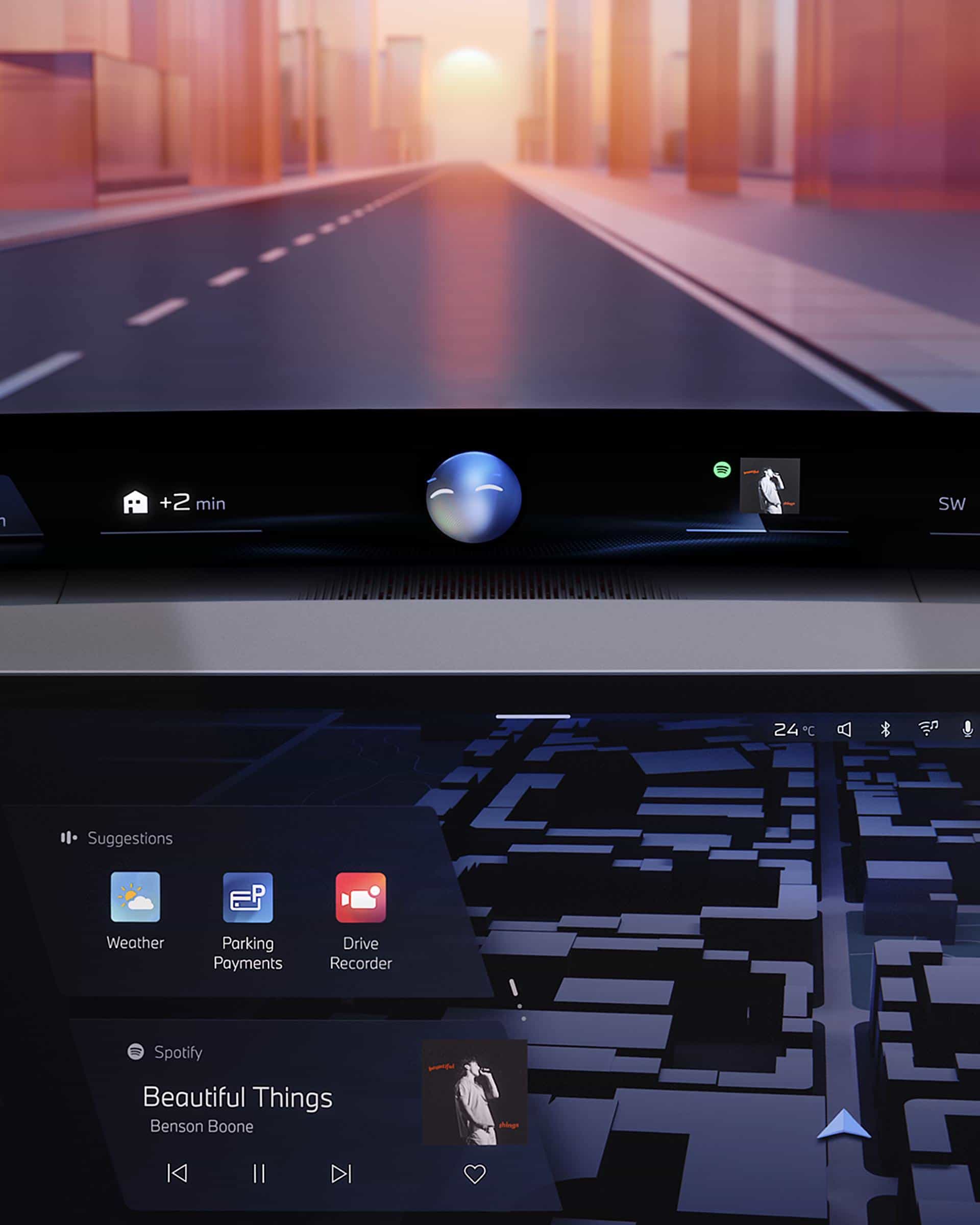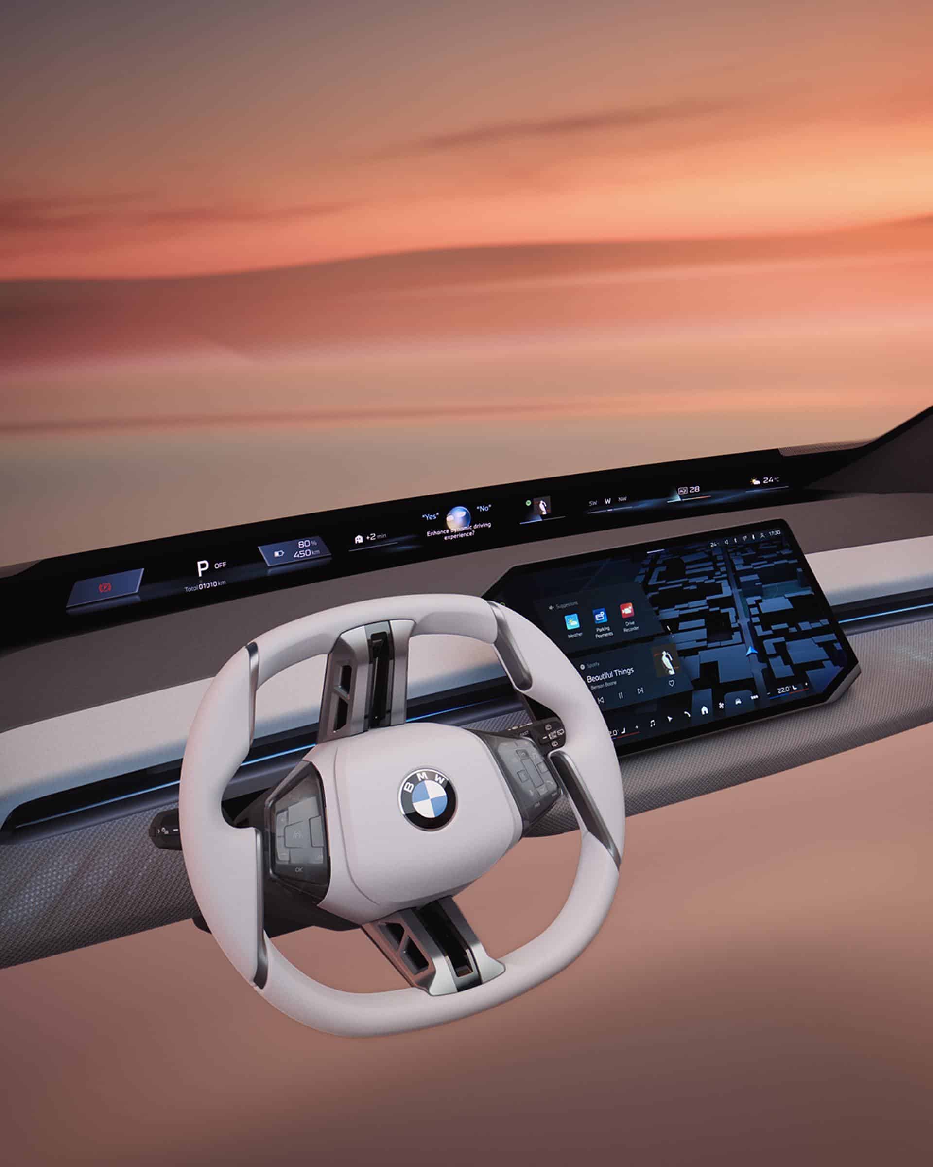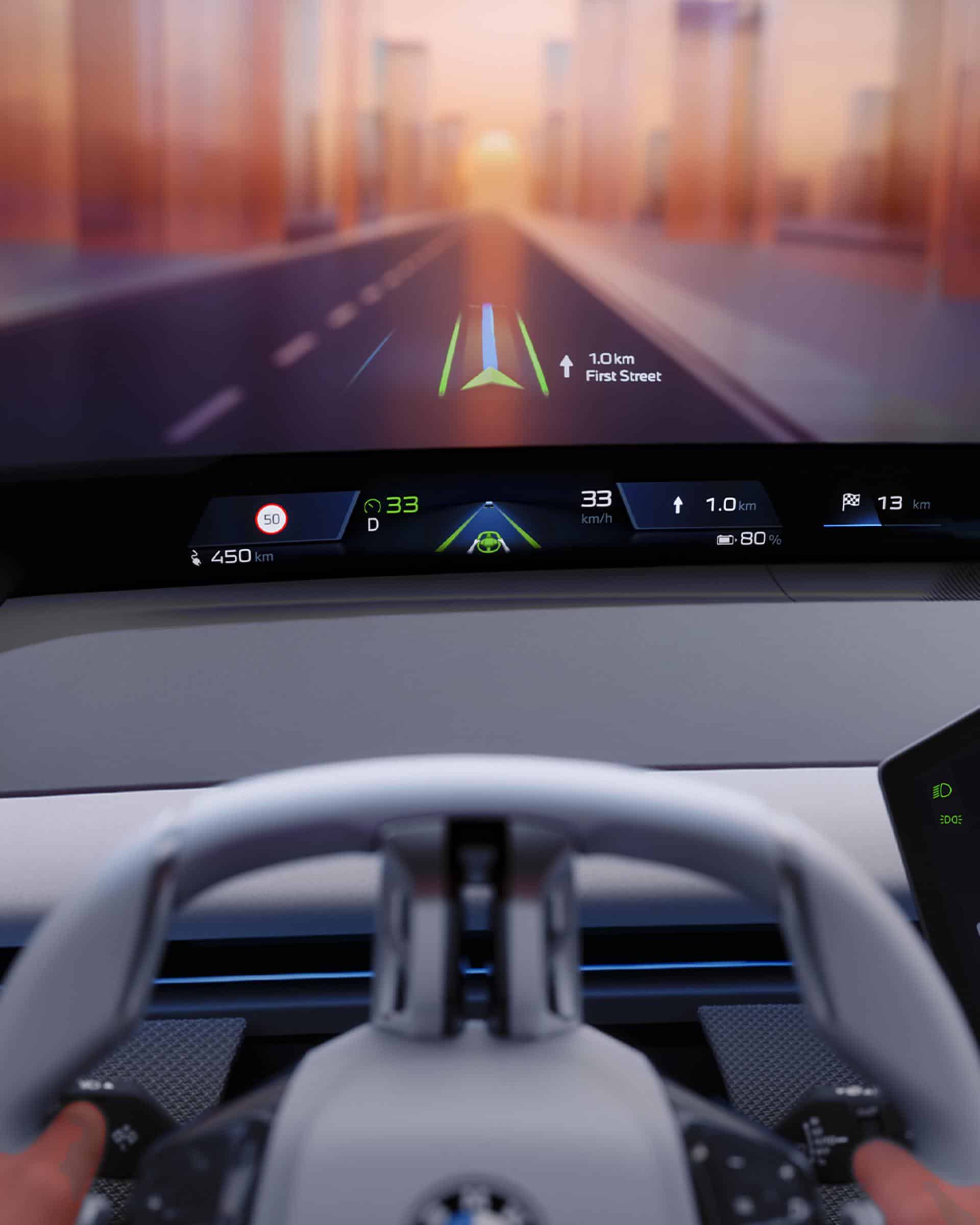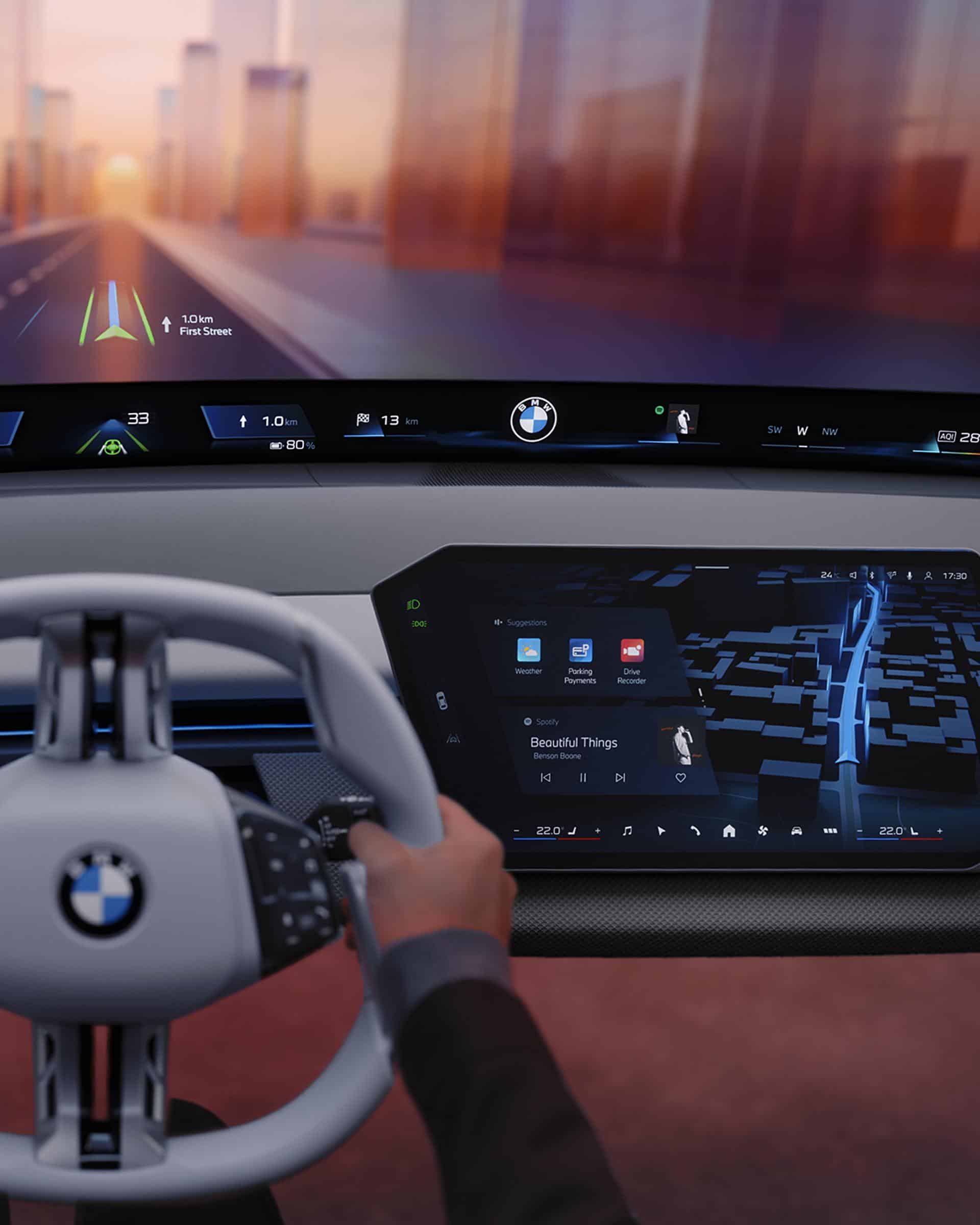 As the adjacent images show, cars with iDrive X will not be limited to the central screen. An upper-mounted projection stretching from pillar to pillar will be standard, and a 3D head-up display will also be offered in the driver’s line of sight. Despite the obvious focus on screens, not all controls will be integrated. Accessing some functions will be done through the usual stalks and haptic buttons/switches.
