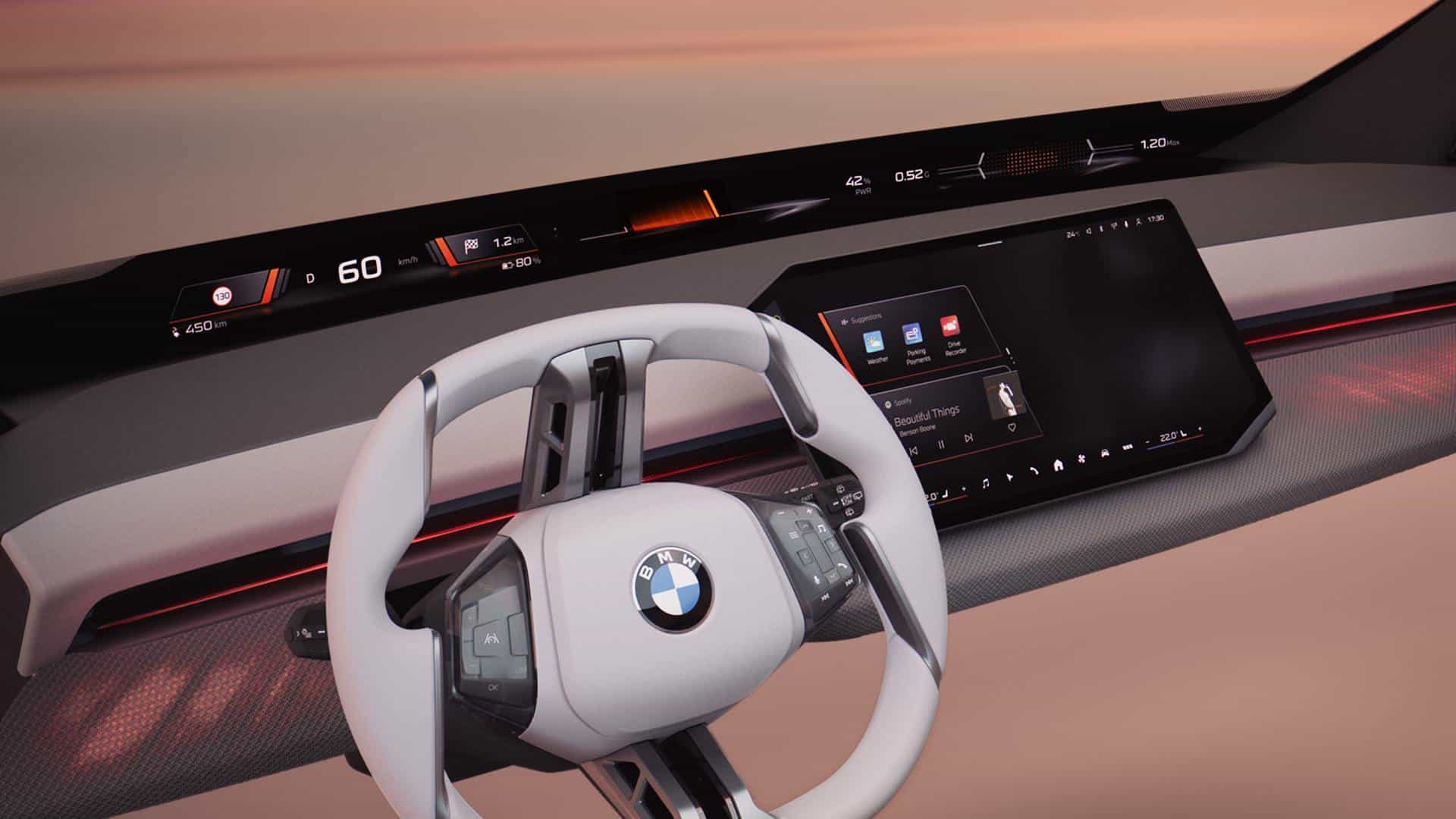 BMW will obviously flip the center screen’s shape for right-hand-drive cars. From our understanding, all models will get this supersized 17.9-inch screen and the panoramic display above it. The next-gen 3D HUD will be optional.