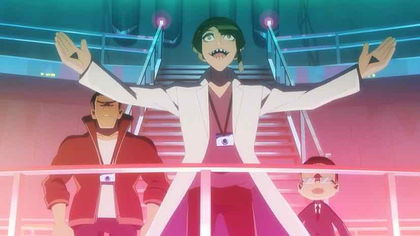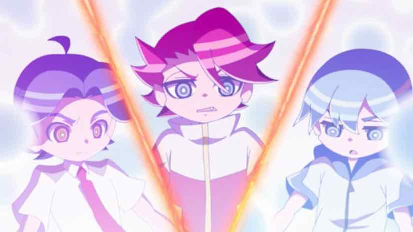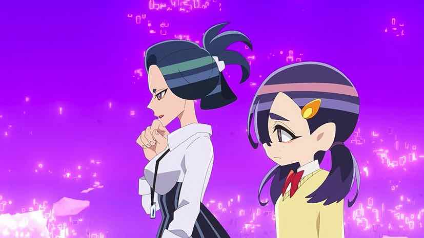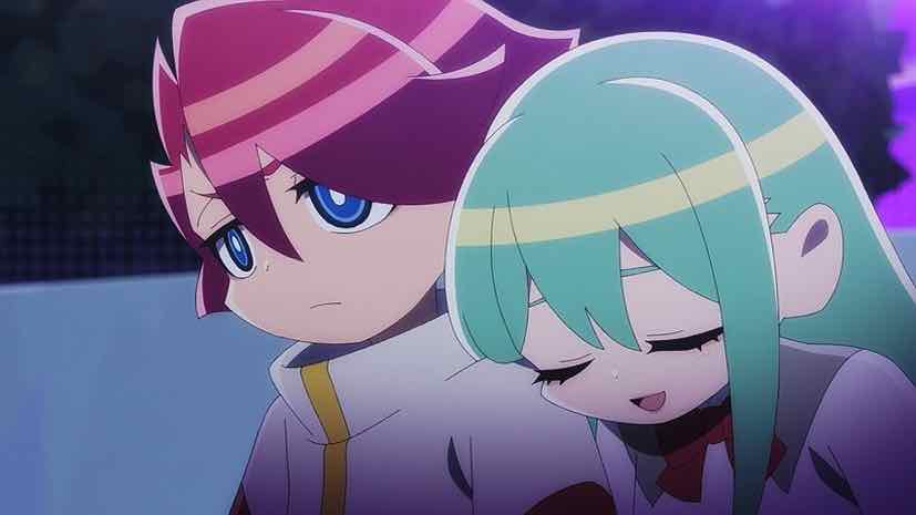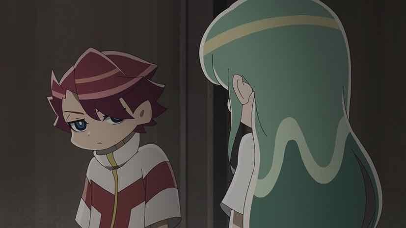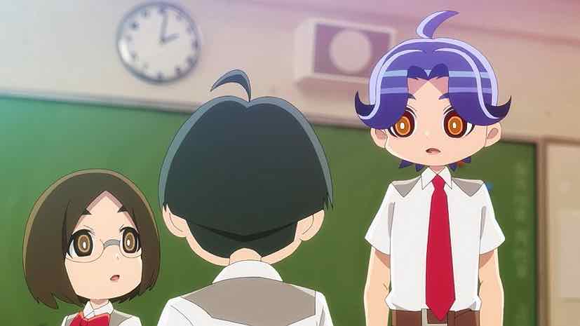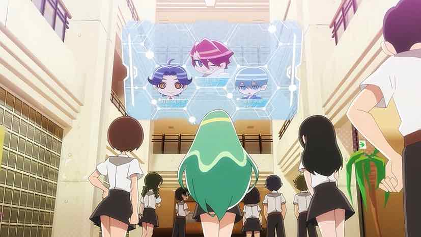 All four actresses do a really nice job here, especially the three playing the boys – they really capture their individual personalities in this weird situation in an unusually authentic way. The school seems to be taking orders from DEAVA, which I initially thought was an entity (like an AI) but seems to be an organization. The “principal” is some kind of Kyuubey-like creature. Sayo implies that all four children were around 12,000 years earlier (even I now know that’s when the original invasion in Aquarion took place). And that parts or all of their hearts are missing, though I’m not sure if that’s meant literally.