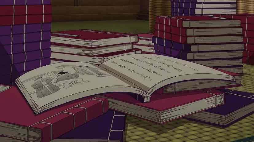 In other news, Maomao has imported some sex-ed textbooks – finely printed and beautifully illustrated. Ostensibly to prepare the concubines for potential evenings with the Emperor, but really to make some money on the side (and for the pleasure house granny too). Jinshi is intrigued by this, as is Gaushun. But not for the reasons one might imagine (and no, one doesn’t believe for a minute that Jinshi at least isn’t fully functional that way). The workmanship of the printing gives Jinshi an idea to further his ambition of making the court ladies more literate. He gets a popular novel printed, to be gifted to the consorts by the emperor, to stoke the ladies’ interest in being able to follow the story.